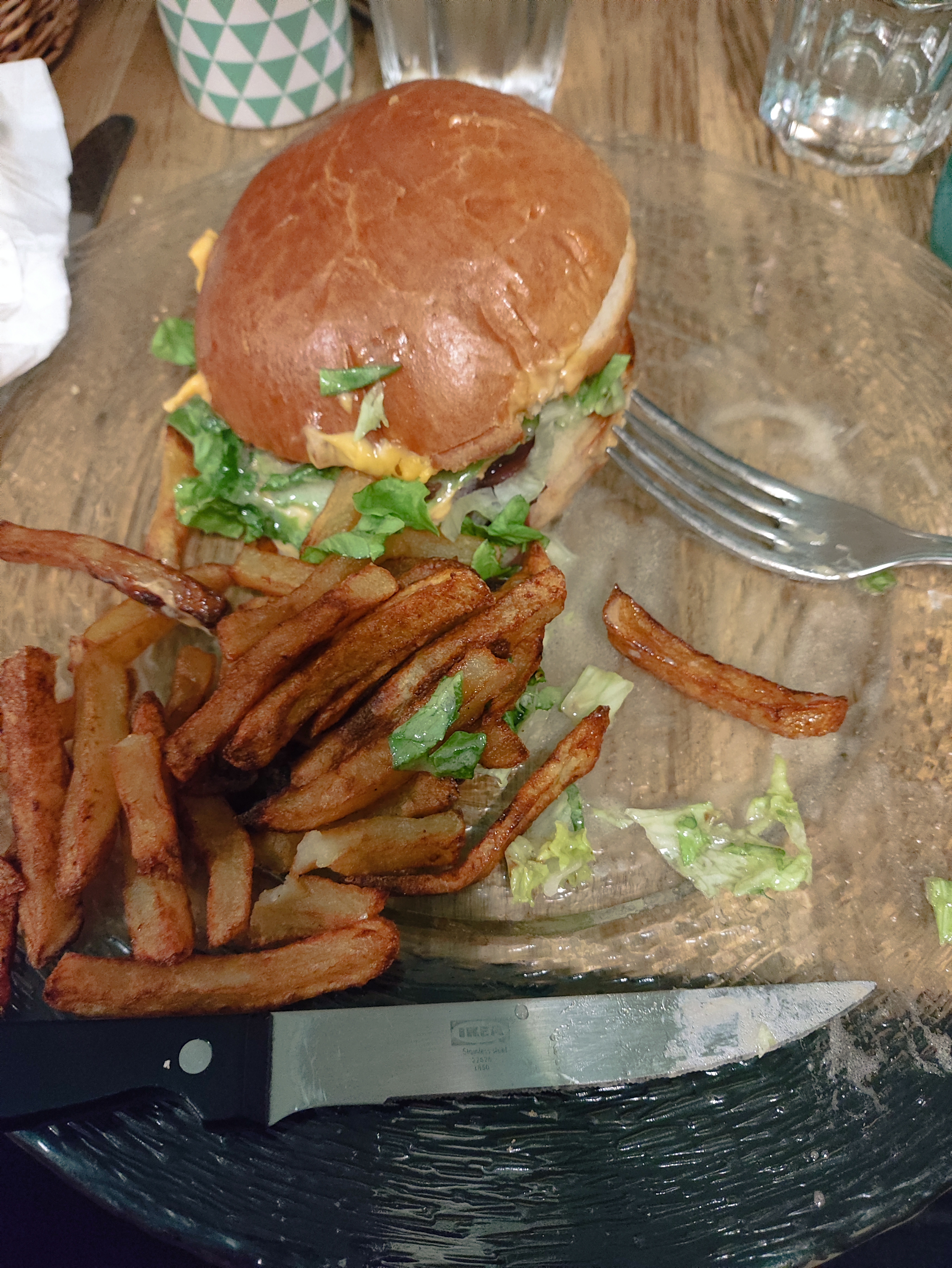 Bon accueil, 5 tables seulement, les burgers chèvre et de caractère étaient délicieux, les oignons confits dans le vin rouge excellents, les frites maison un délice et en plus, c'est tellement rare. La mousse au chocolat, légère. Tout simplement parfait.