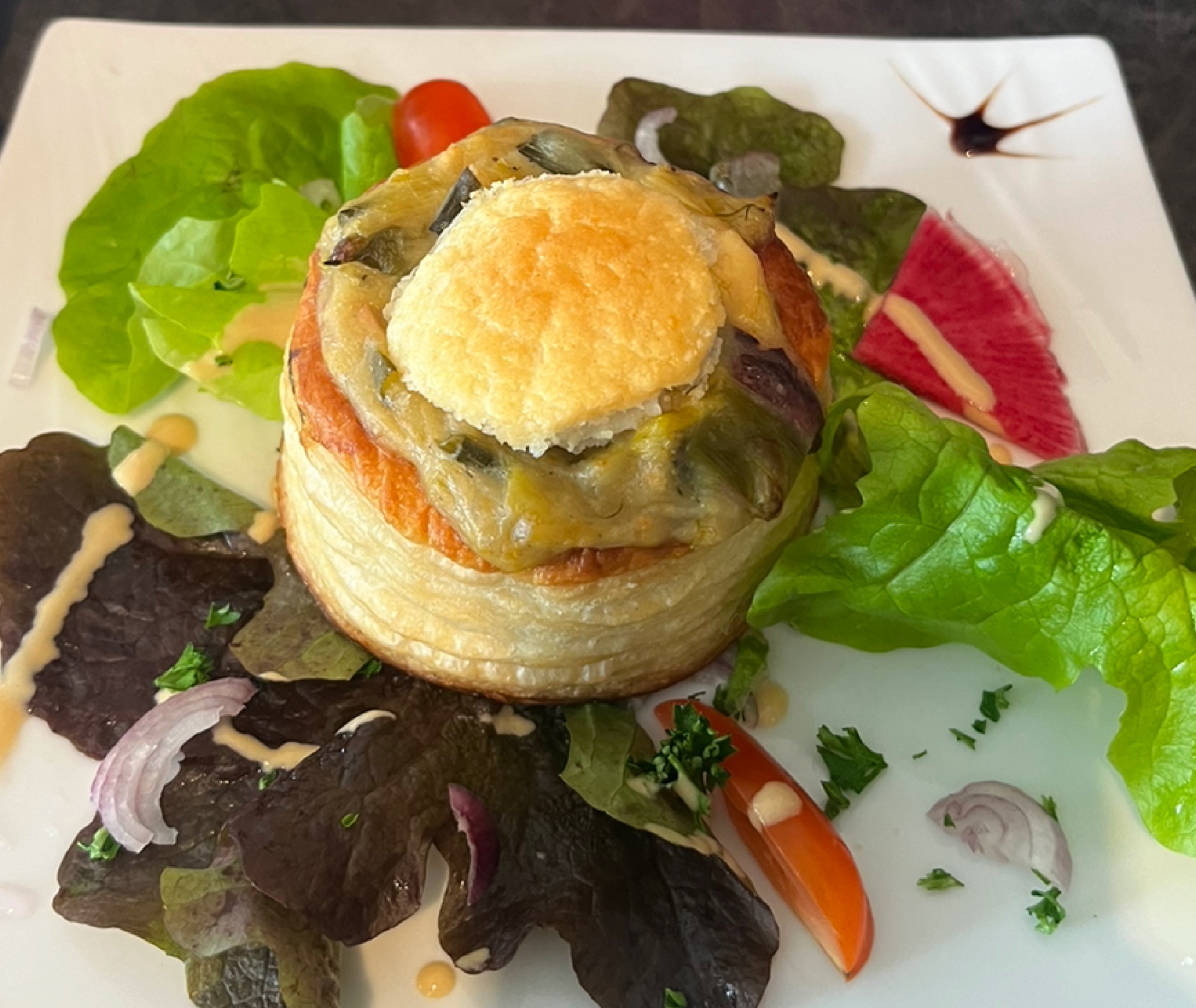 Bien mangé mais entrée un pain de thon un peu sec et fort en estragon.