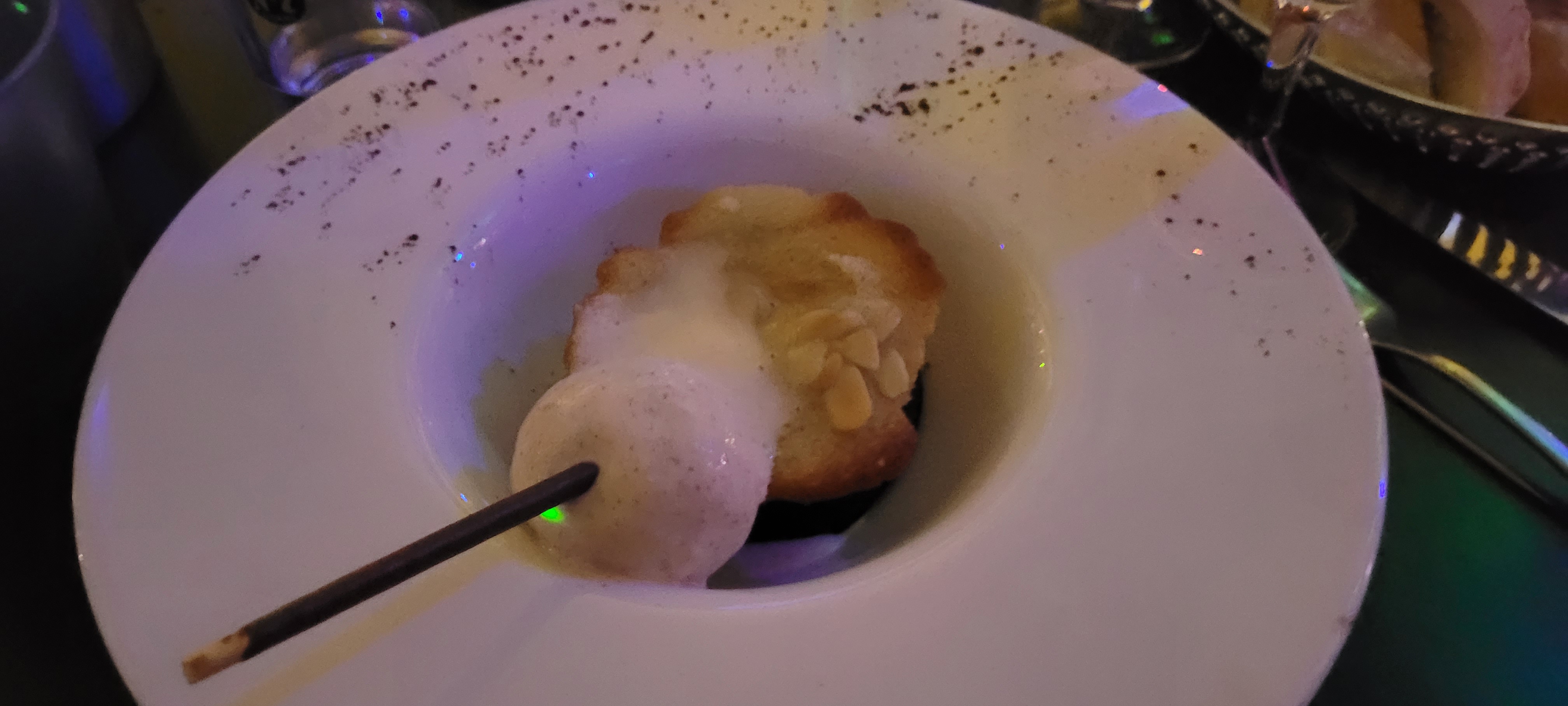 C'est un restaurant très agréable en été grâce à sa terrasse ! Pour l'entrée, j'ai testé la sphère de chèvre frais et tomates. A l'arrivée cela se présente comme une boule de glace sur un coulis de tomates. Mais la boule de chèvre devient vite écœurante et le coulis de tomates trop acide. L'amie qui m'accompagnait a pris la salade de fraises et tomates qui était bonne mais manquait de fraîcheur. En revanche le plat était vraiment bon le bar très bien cuit et la polenta poêlée restait crémeuse. Le dessert n'avait rien de dingue puisque c'était de l'ananas frais avec du fruit de la passion.