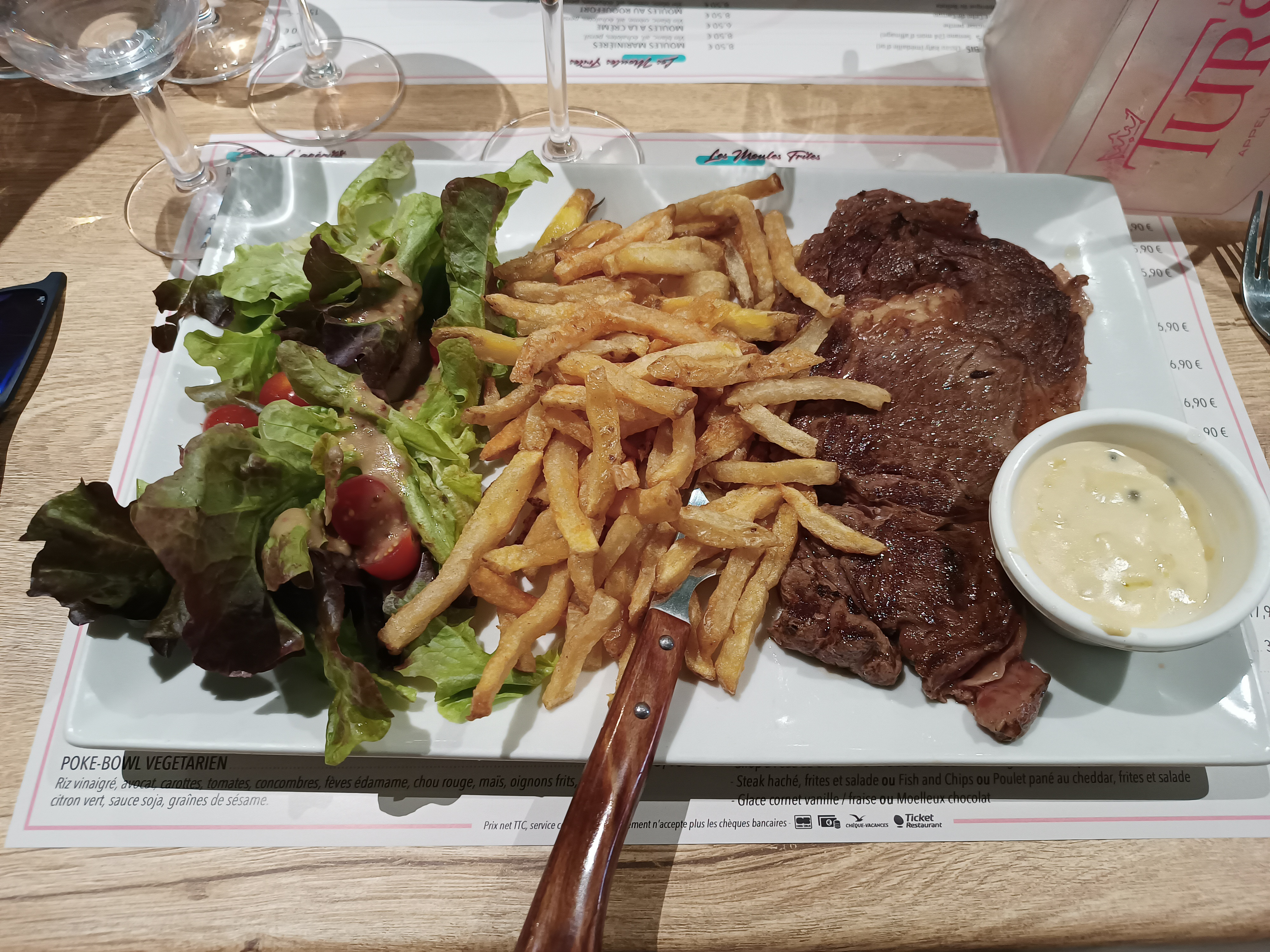 L'accueil est correct, cela se dégrade par la suite, le service est très moyen et les moules frites pour 15€90 sont extrêmement décevantes, les moules ne sont pas fraiches, et les frites sont très sèches, elles sont cuites et recuites difficile de faire pire, donc immangeables. A fuir.