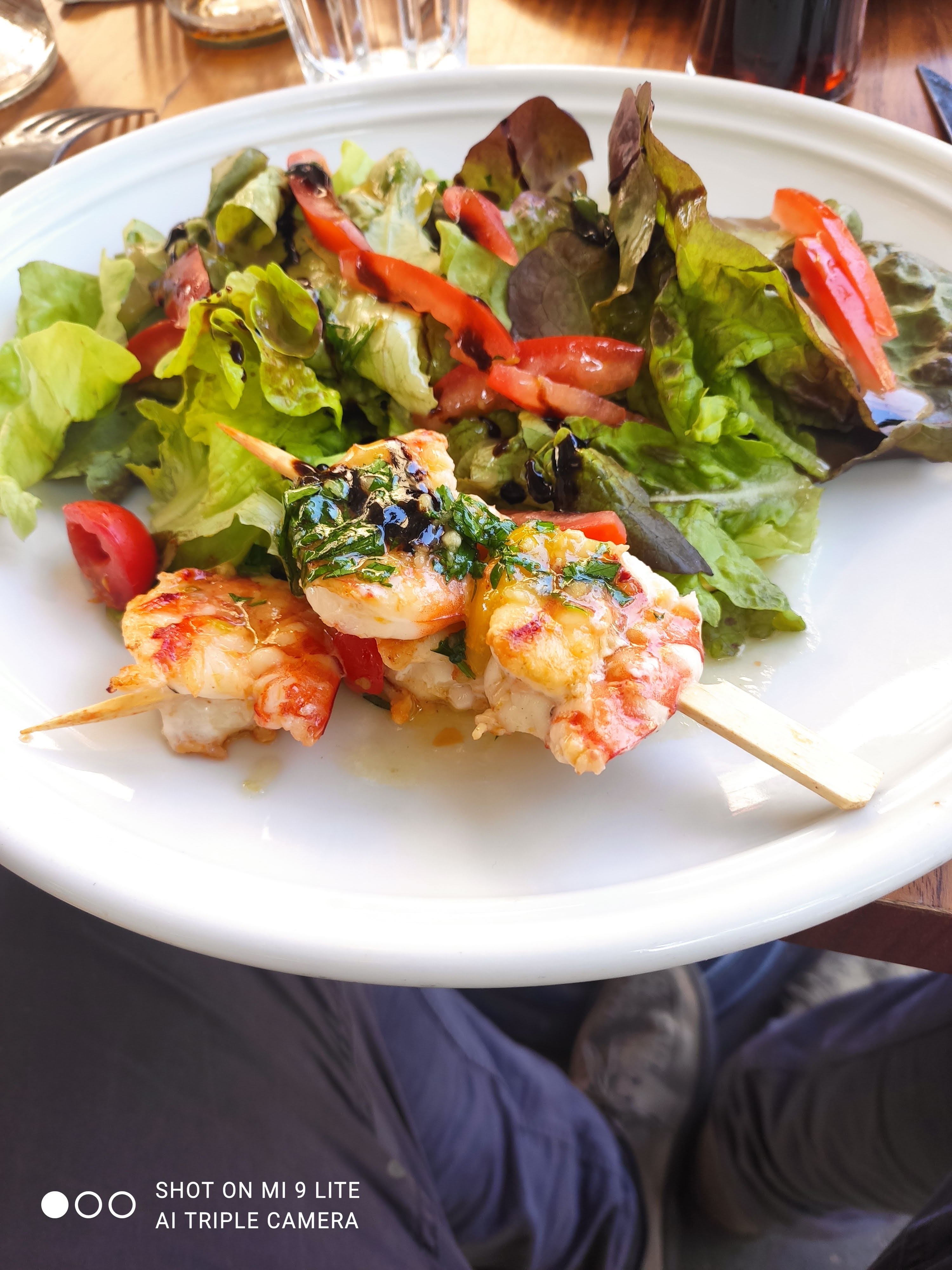 Accueil sympa et nourriture (plat du jour brochette de poulet au curry) correcte. Un midi ensoleillé on passe un moment agréable en terrasse