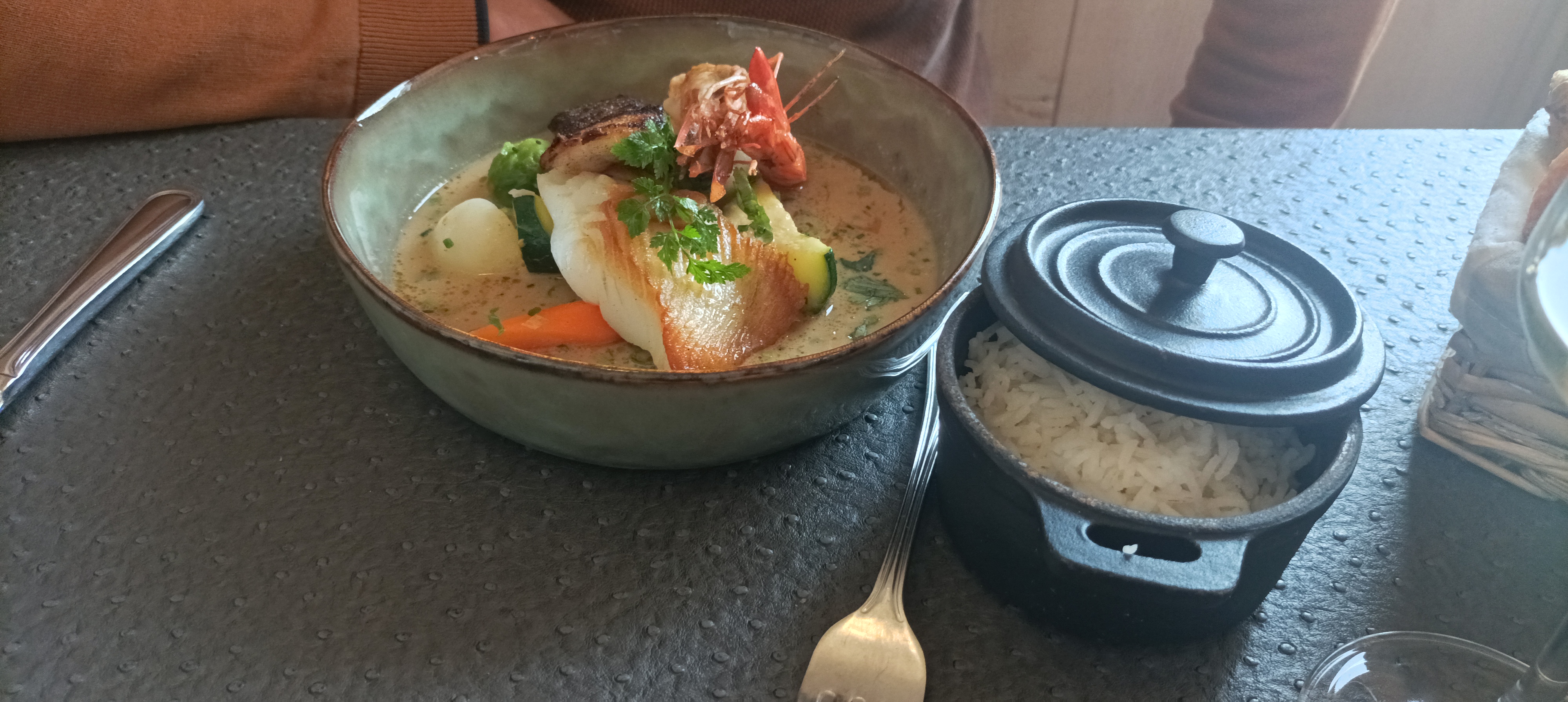 Restaurant avec uniquement des produits frais et vraiment faits maison, la Chantilly, les sauces, les desserts, la mayonnaise, poissons et viandes très bien cuits, sauces savoureuses, tout était parfait de l'entrée au dessert pour un prix raisonnable. Ah la marmite de poisson avec son jus exquis ! Serveuse souriante et charmante, la patronne aussi. Il nous manquerait juste une petite bière locale et un apéritif maison.....