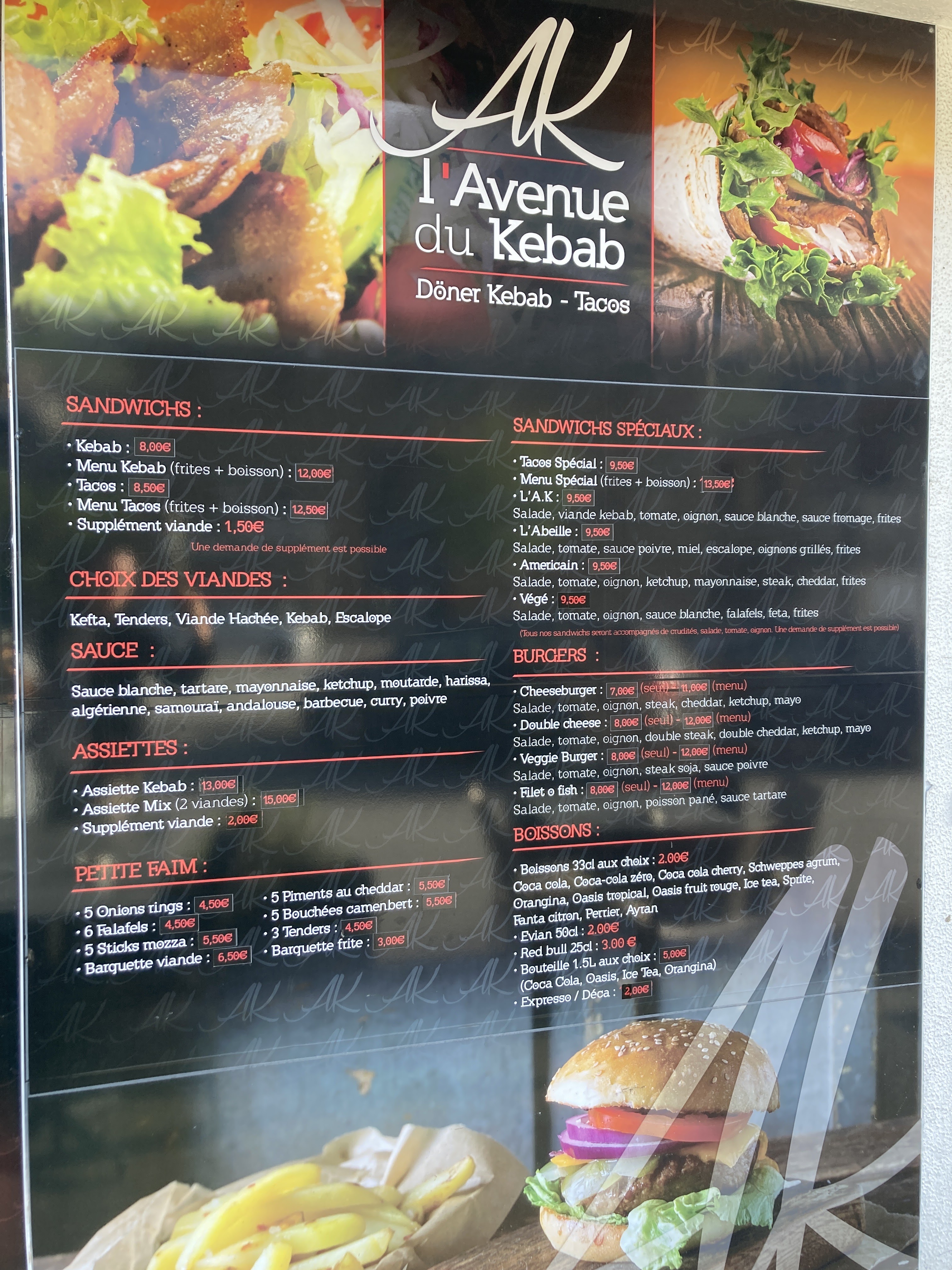 Prix très raisonnable au vu de la taille du Kebab, très bon et très bien servi, je recommande +++