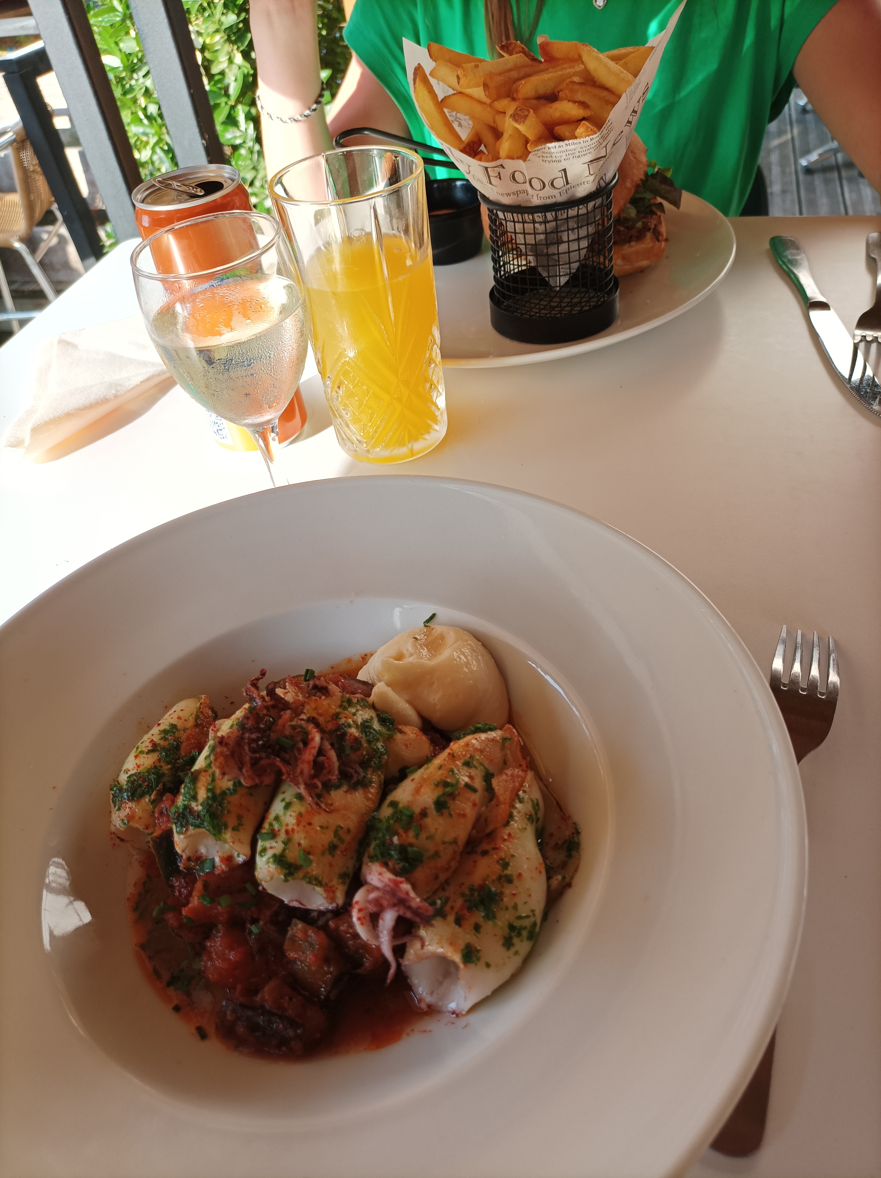 Table sous la véranda en plein soleil impossible d y rester pour manger penser à mettre un store nous sommes repartis la serveuse nous a même pas proposer une autre table je pense que ce restaurant marche sous réservation un peu déçu