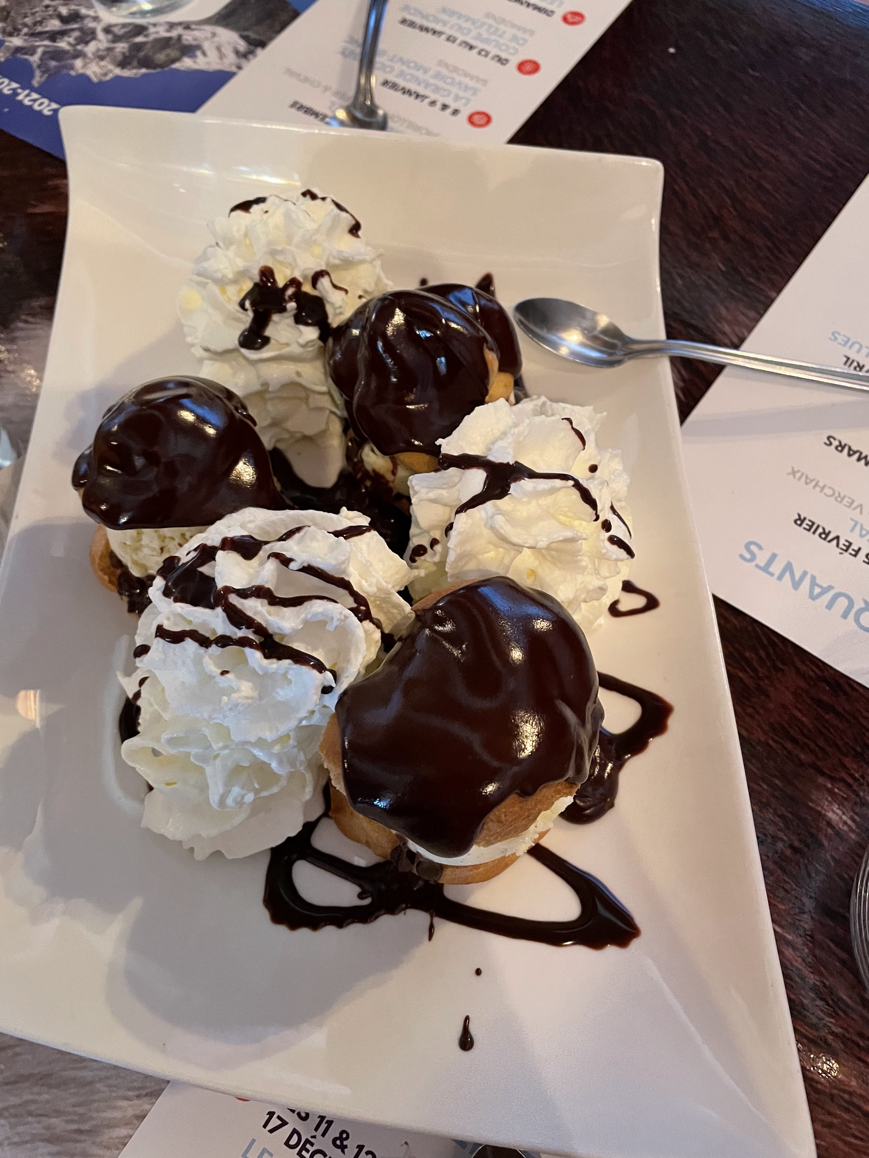 Notation difficile, certains plats sont super bon et sont fait maison comme le burger savoyard, fondue aux cèpes (une turie), crème brûlée au genipi, par contre d autre ne sont pas fait maison et de moindre qualité comme les profiteroles (choux sec, sauce chocolat industrielle pas bonne), repas enfant manquant de plat local (frite, jambon, steak), aurais apprécié de petites portion de tartiflette etc Le serveur super sympa, merci beaucoup pour l accueil. La localisation du resto est sympa en hauteur... Belle vue.
