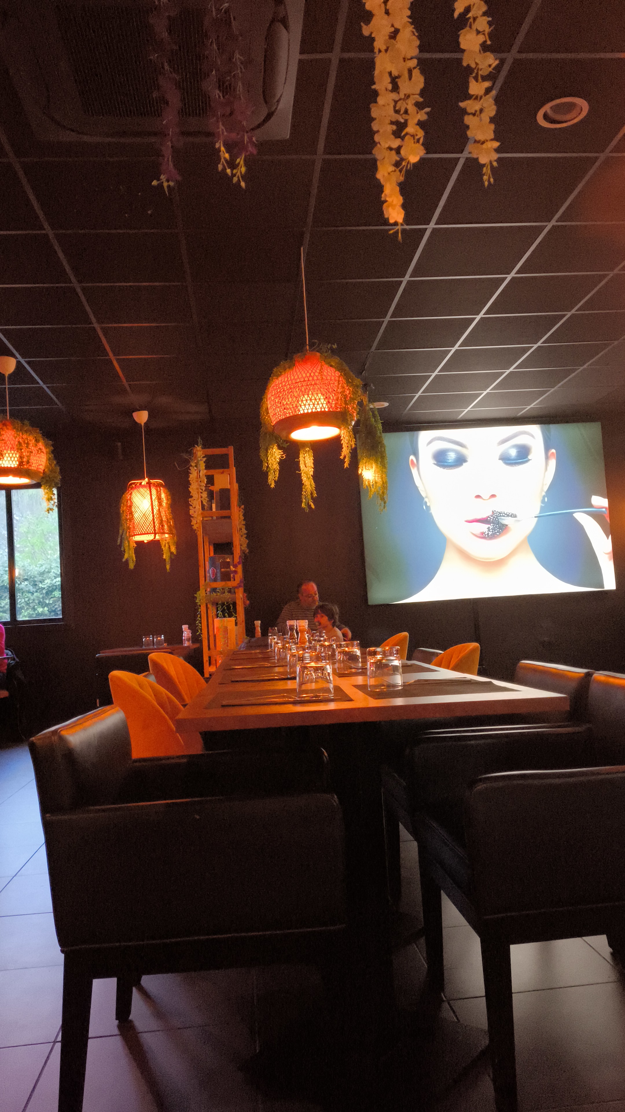 Ambiance sympathique service a table irréprochable Par contre côté buffet des plats étaient froid (nem, gyozas) certains sushi était sec voir dur peut être du au temps rester au frigo ou a l'extérieur. Une amélioration est à revoir la dessus.