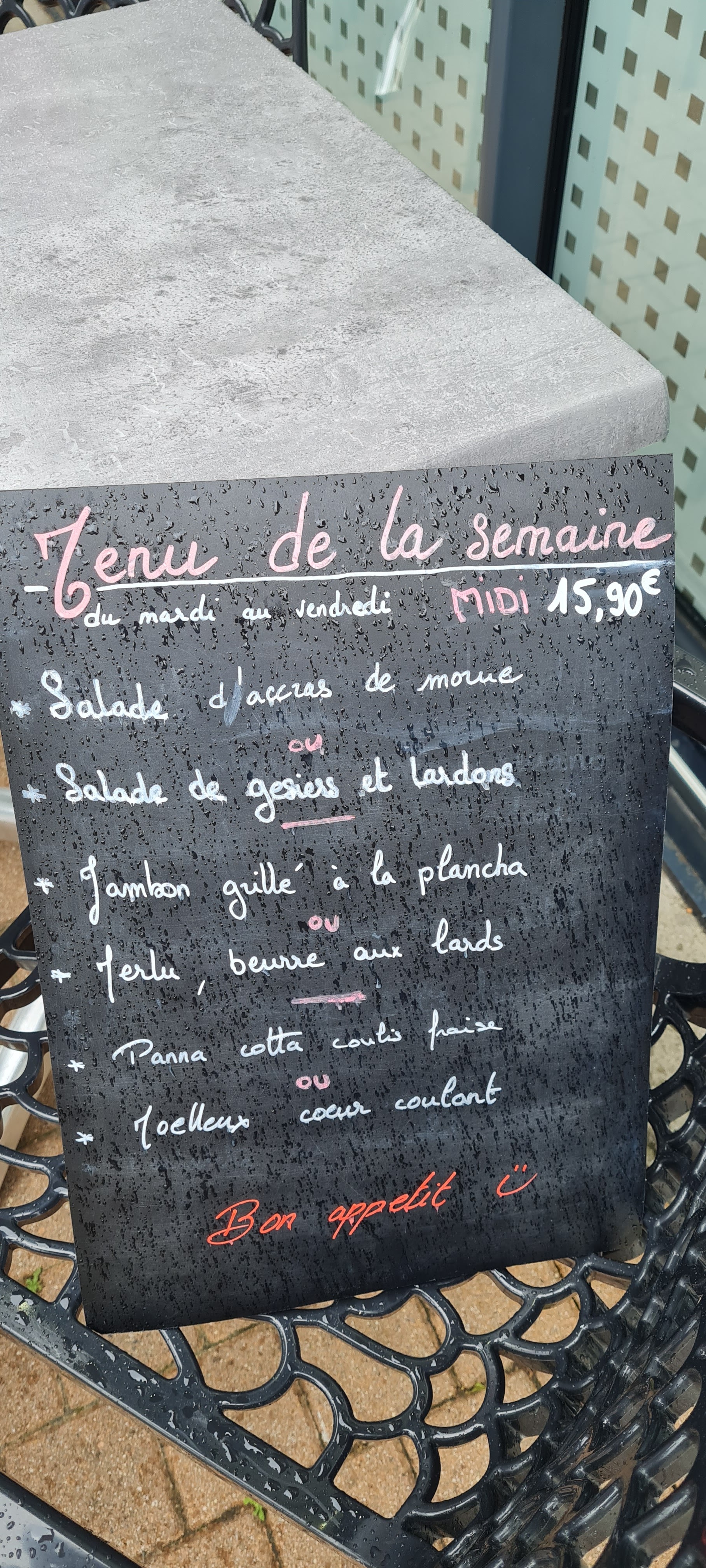 2 menu ! patron très sympathique décor rien n'a dire pratique en plein centre donc des place partout ! MAIS Pour le prix devrai servir un peu plus en quantité 1 seul quartier de tomate pour 3 tranches de fromage de chèvre chaud c'est plus que limite par compte la salade verte excellente pas trop forte en sauce vinaigrette ! c'est bien pour les toute petites faim le plat principal équivalent à 2 cuillère à soupe de purée de carotte et 1 muffin de riz sa fait vraiment léger j'explique pas pour la sauce la petite gamelle de sauce étais pas pleine on la sens pas mélange à la viande ni au poissons ! Excellent dessert fondant au chocolat qui a pu plombé l'estomac mais sa n'a pas empêché que vu l'attente entre chaque plats que l'on a tous eu faim après ! Sinon pour petit mangeur les plats sont servi propre et très jolie et éxelent vraiment dommage l'attente et la quantité !