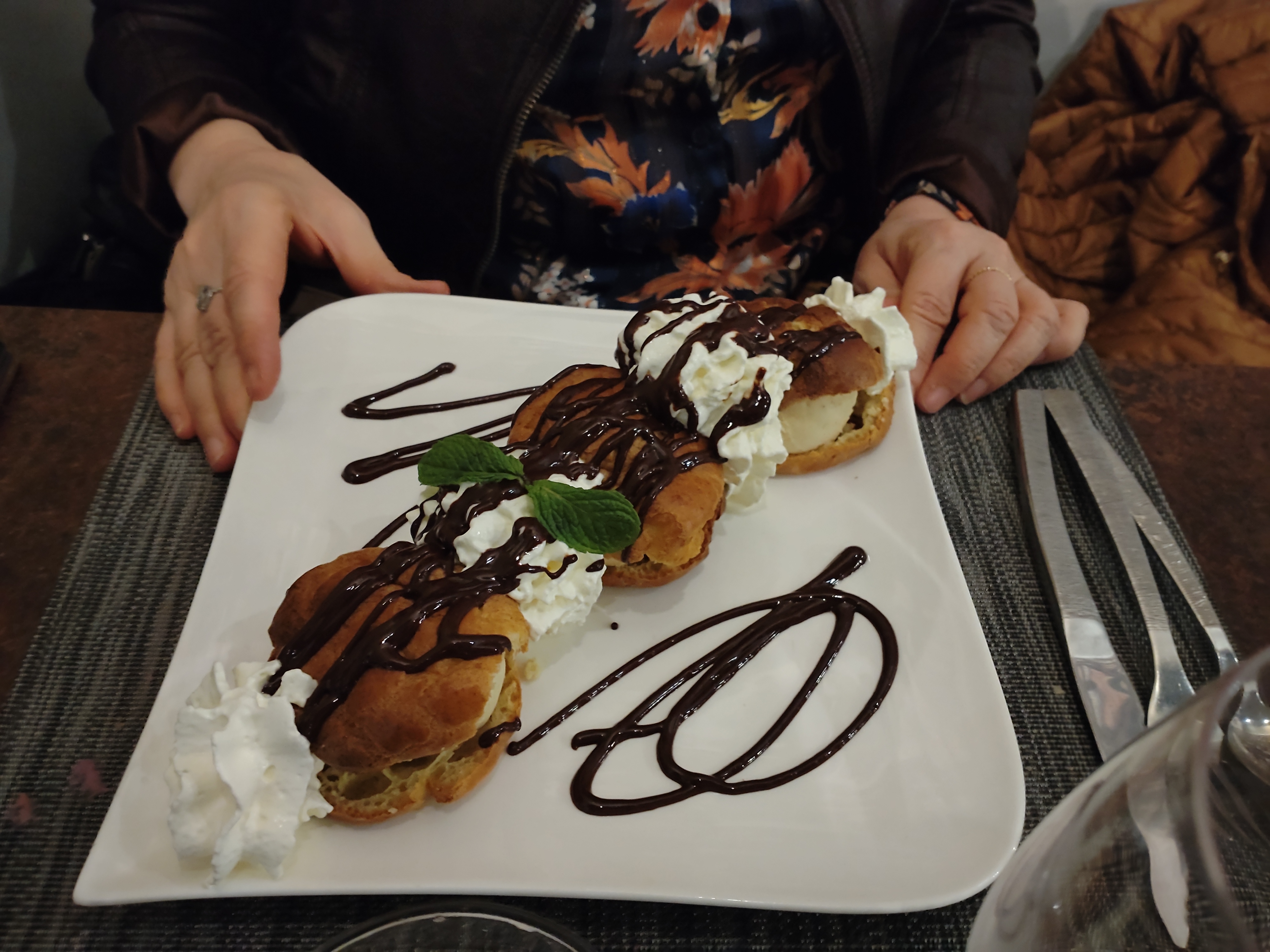 L'épaule d'agneau, la spécialité est excellente, mais les autres plats sont aussi du même acabit. En plus de la déco chocolat sur les profiteroles une dose de chocolat chaud serait la bienvenue.