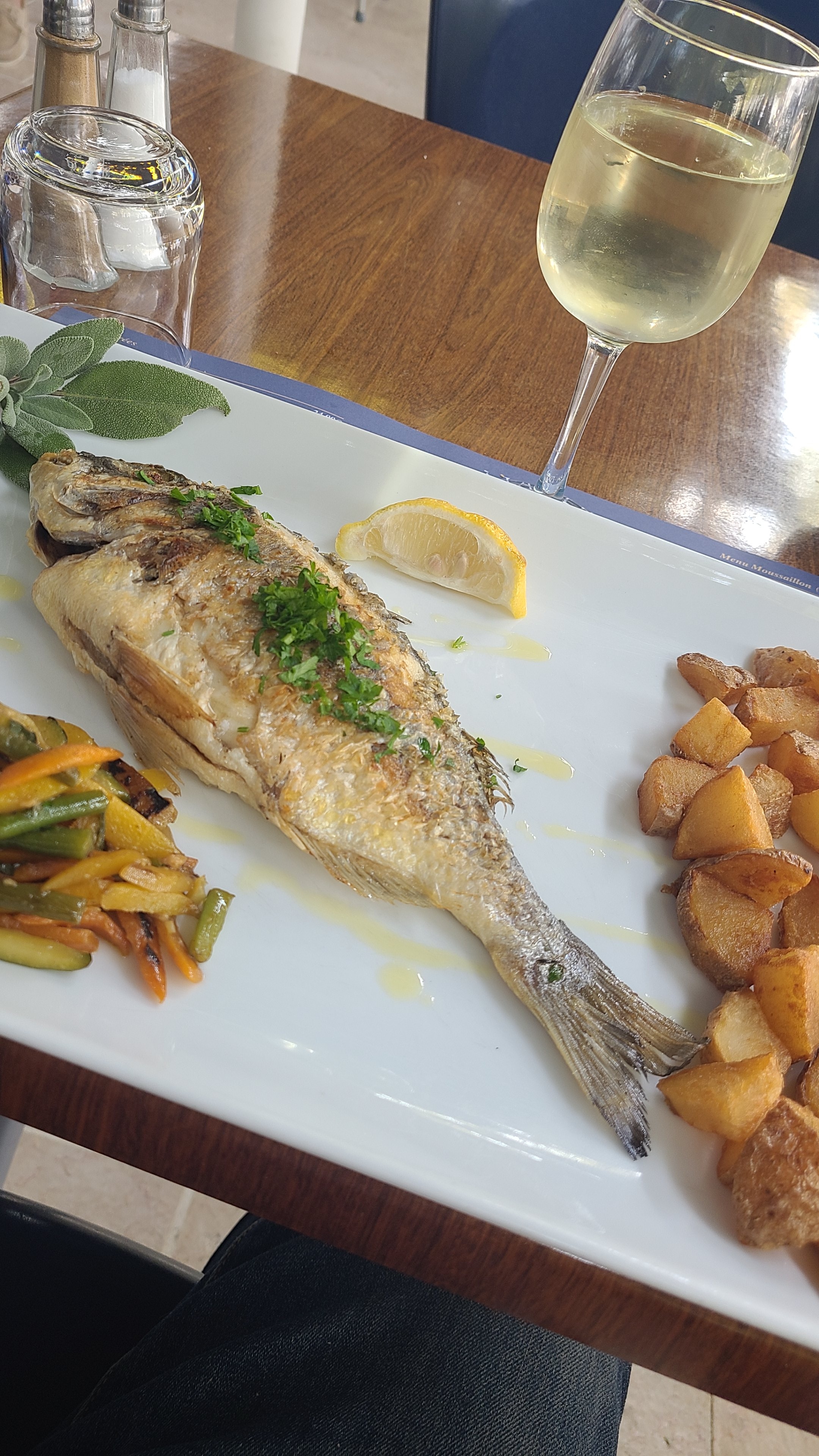 Dommage que le mistral nous est interdit la terrasse mais cela n as rien enlevé au plaisire que nous avons pris a dégusté ces différant plat . Service assez rapide ,personnel agréable et professionel je recommende cette adresse pour les personne qui aime le poisson et les fruits de mer