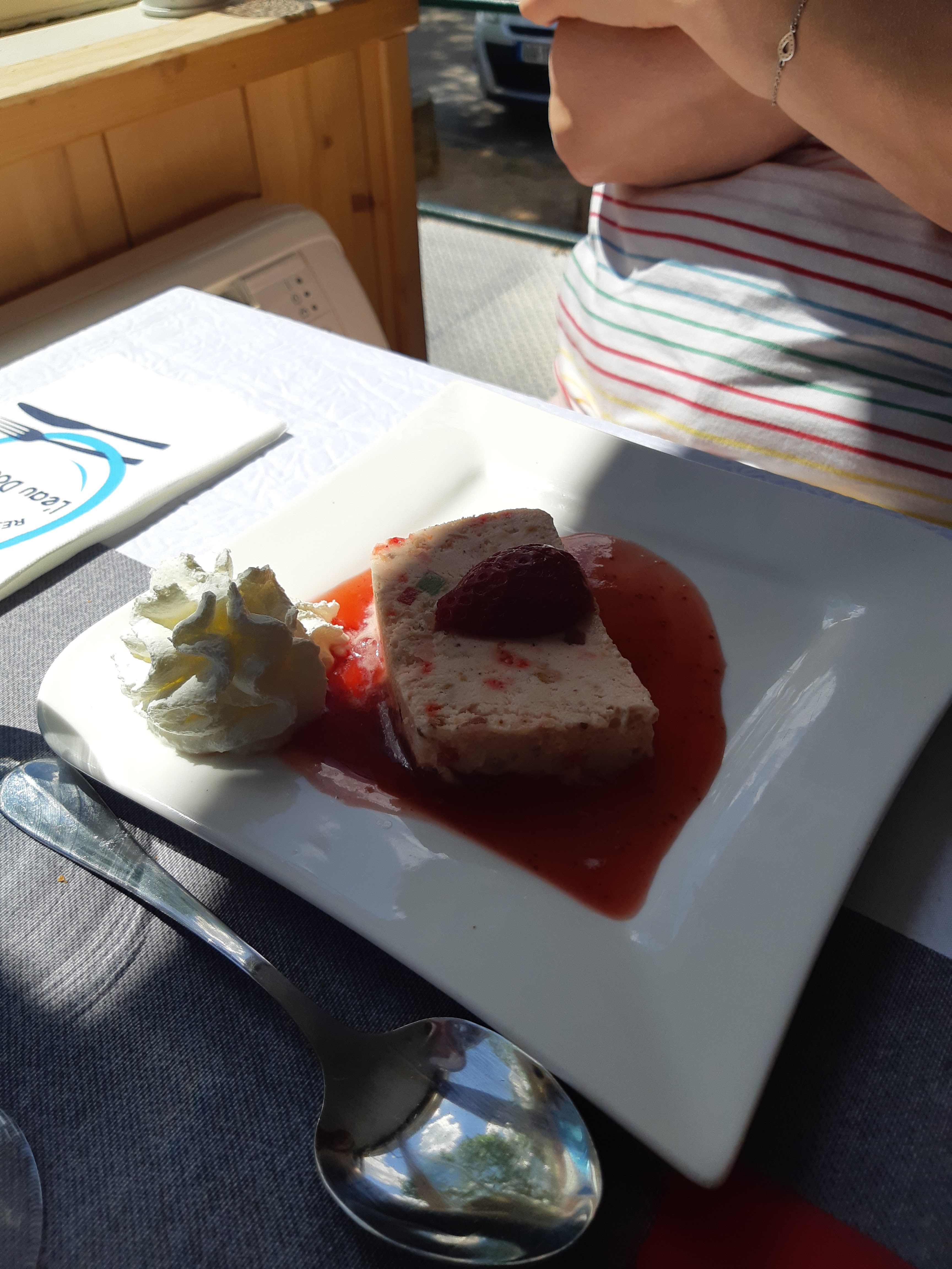 Repas super entre amis , une belle découverte avec une superbe terrasse couverte et de très belles et gourmandes assiettes. Il avait juste oublié de nous apporter du pain, pour se faire pardonner, super geste, la patronne nous à offert le fromage. Au moment de payer encore un joli geste, comme je payais les boissons pour mes amis, une note très discrète pour ma part. J'y retournerai un très bon moment.
