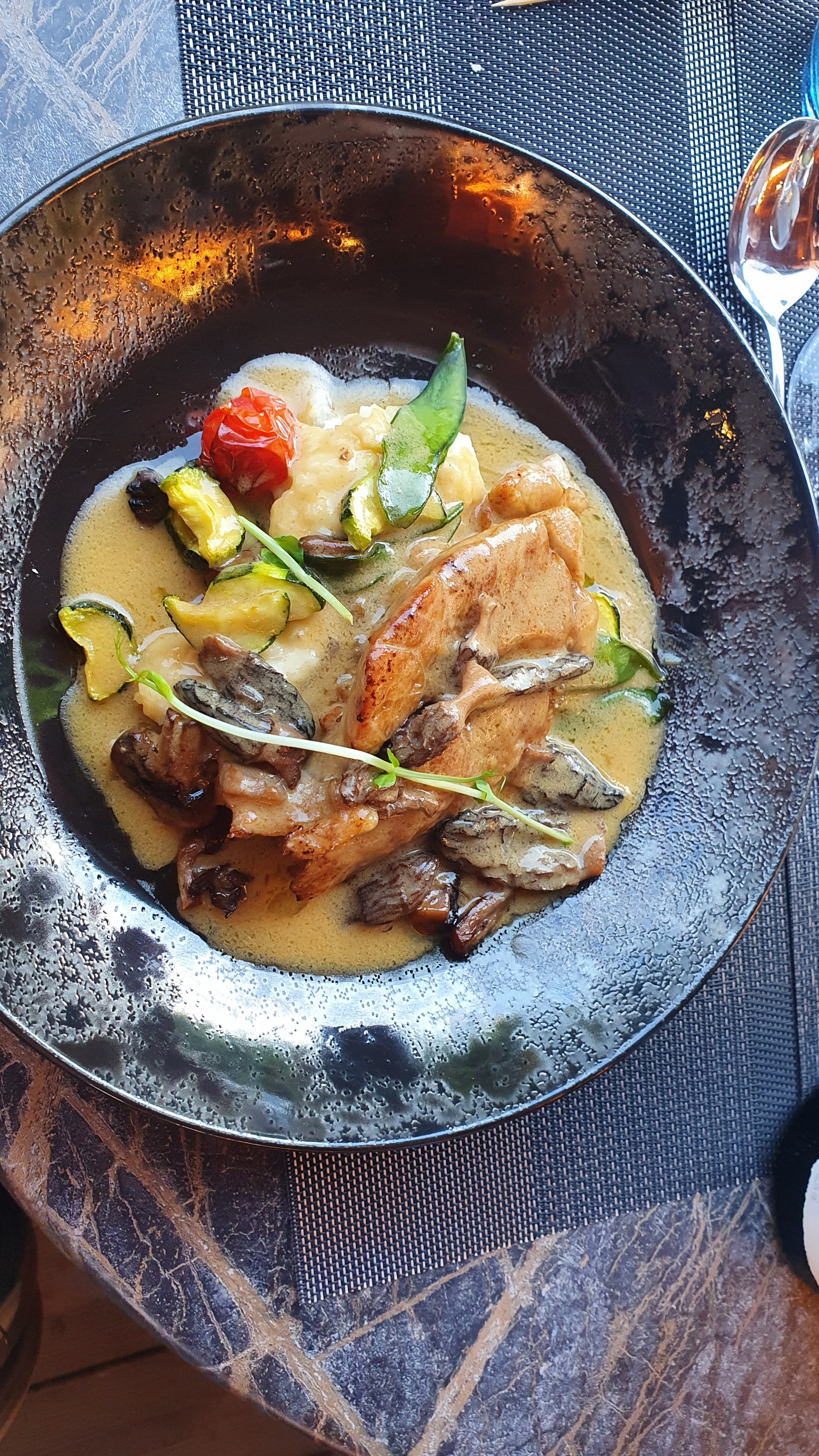 Un régal. Je me suis laissée tentée par le menu « partage et découverte » dans lequel vous retrouvez une sélection de 3 entrées et 3 plats et un dessert au choix. En termes de quantités c’est parfait et j’ai mangé des plats que je n’aurai pas choisi de moi même. Spéciale dédicace pour le mignon de cerf qui est à tomber par terre ! Et le Paris Brest en dessert c’est rare et il est plus que réussi. Le service a été rapide malgré le monde dans le restaurant, je reviendrai en été pour découvrir la grande terrasse