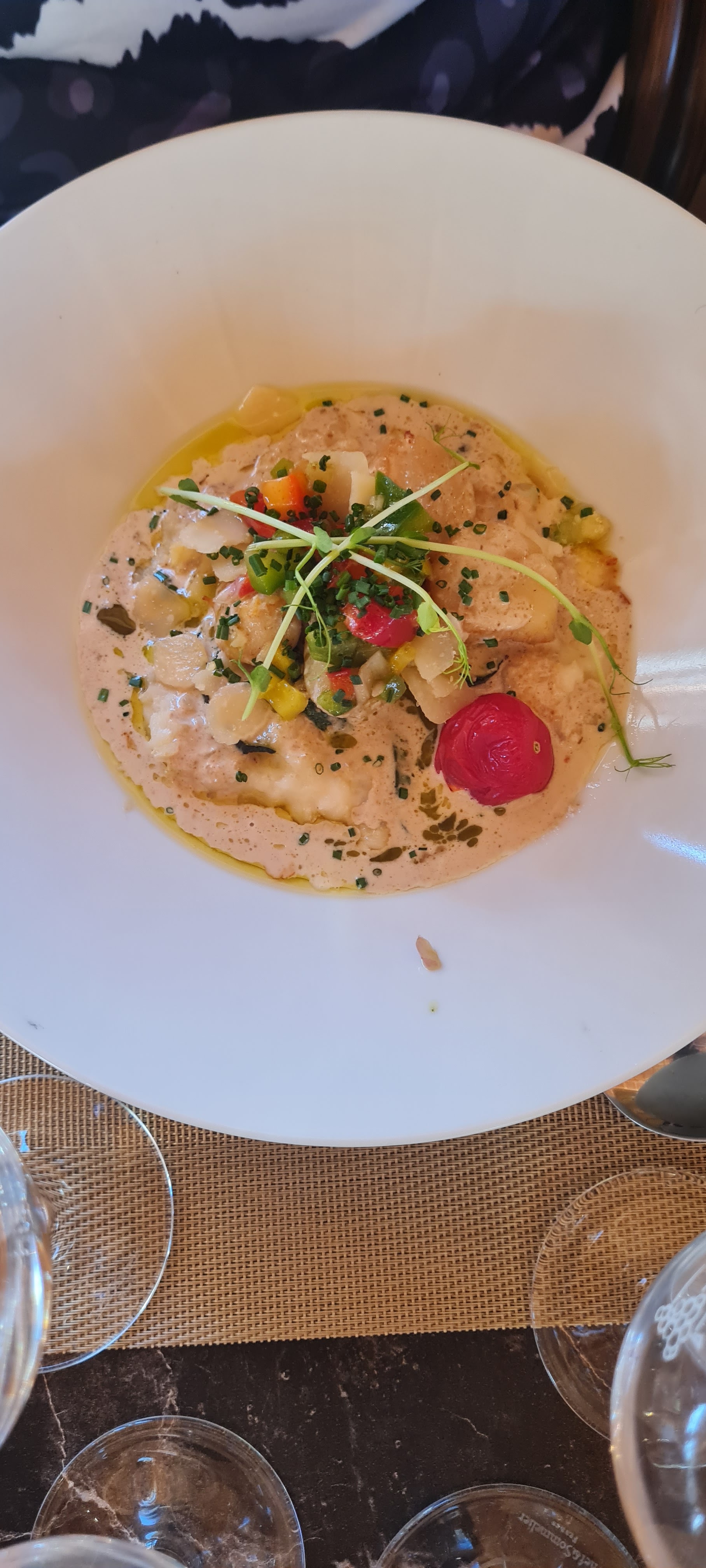 Excellente cuisine. Peut-être pourrait-on déplorer des portions un peu justes au moins ece qui concerne le risotto de Saint Jacques. Bel établissement néanmoins. A recommander.
