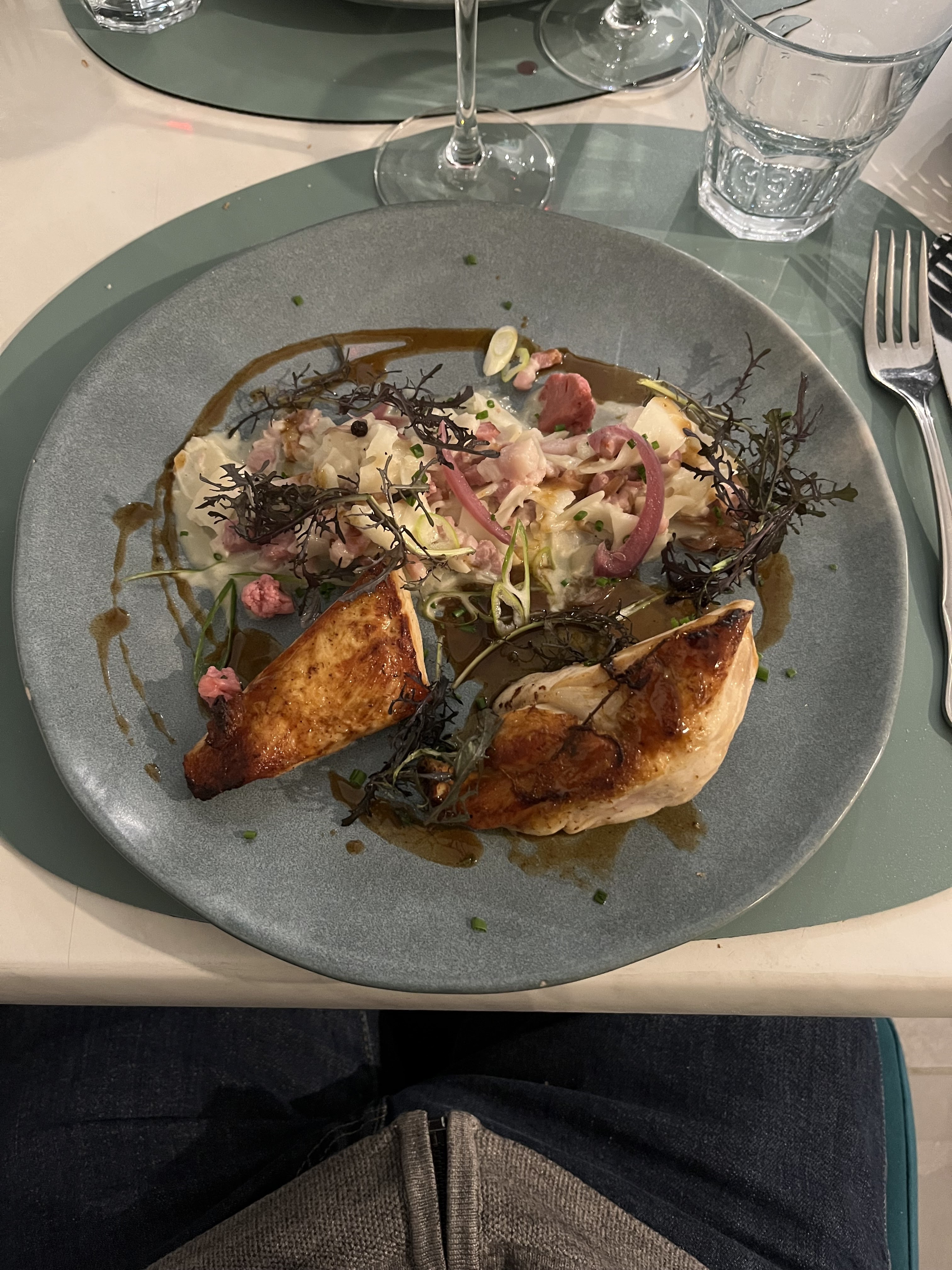 Très bonne cuisine fine, cuisson parfaite, le vin est excellent. Mes respects, Bravo !
