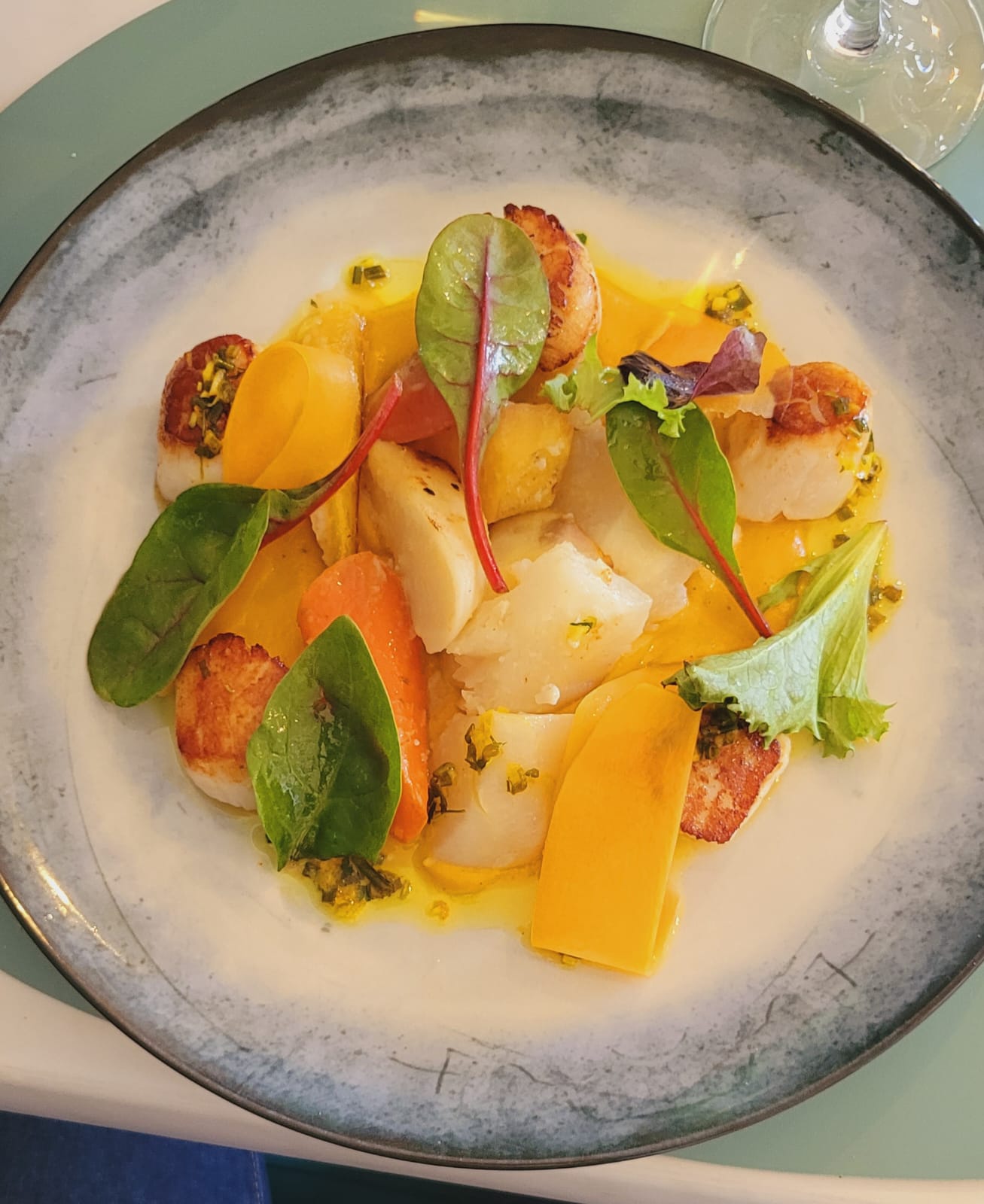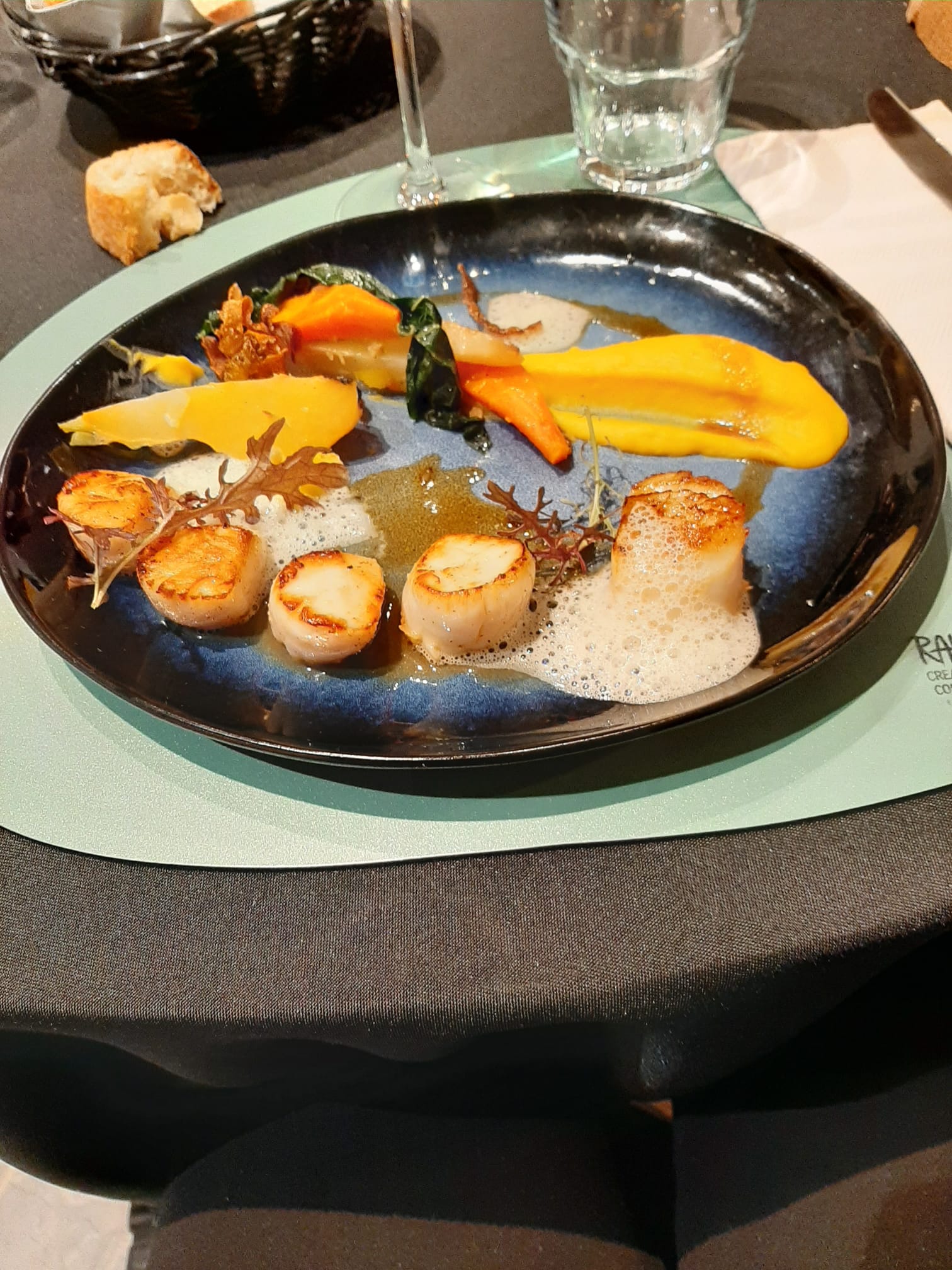Exceptionnel, ici pas besoin d'avoir une vue sur la Baie puisque le voyage se passe dans l'assiette. Un sourire chaleureux, une salle accueillante et confortable. Un velouté de champignons divin, un gravlax de saumon accompagné d'une émulsion à l'ail noir et chou-fleur wasabi : une explosion de fraîcheur, l'assiette de Saint-Jacques était généreuse, gourmande. Nous avons apprécié la maîtrise des cuissons, de l'assaisonnement et la présentation. Beaucoup de douceur et de légèreté dans un chou à la crème où le Baileys enchante les papilles. Pour 37€ c'est on ne peut plus mérité. Merci et bravo