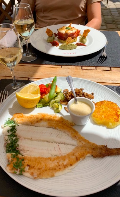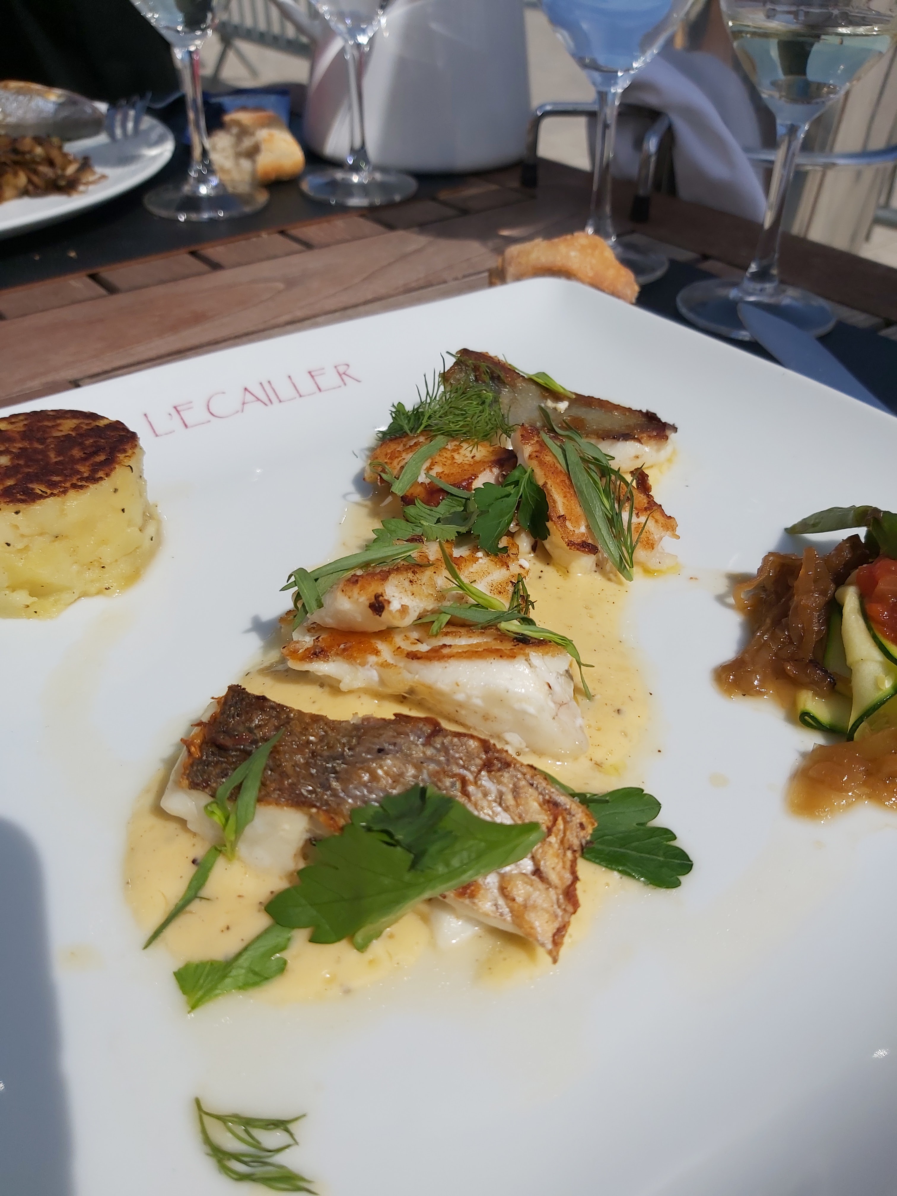Excellent très fin le poisson est là dans toute sa splendeur cuisiné merveilleusement bien la classe terrasse au soleil un 4 novembre le rêve je me suis régalée