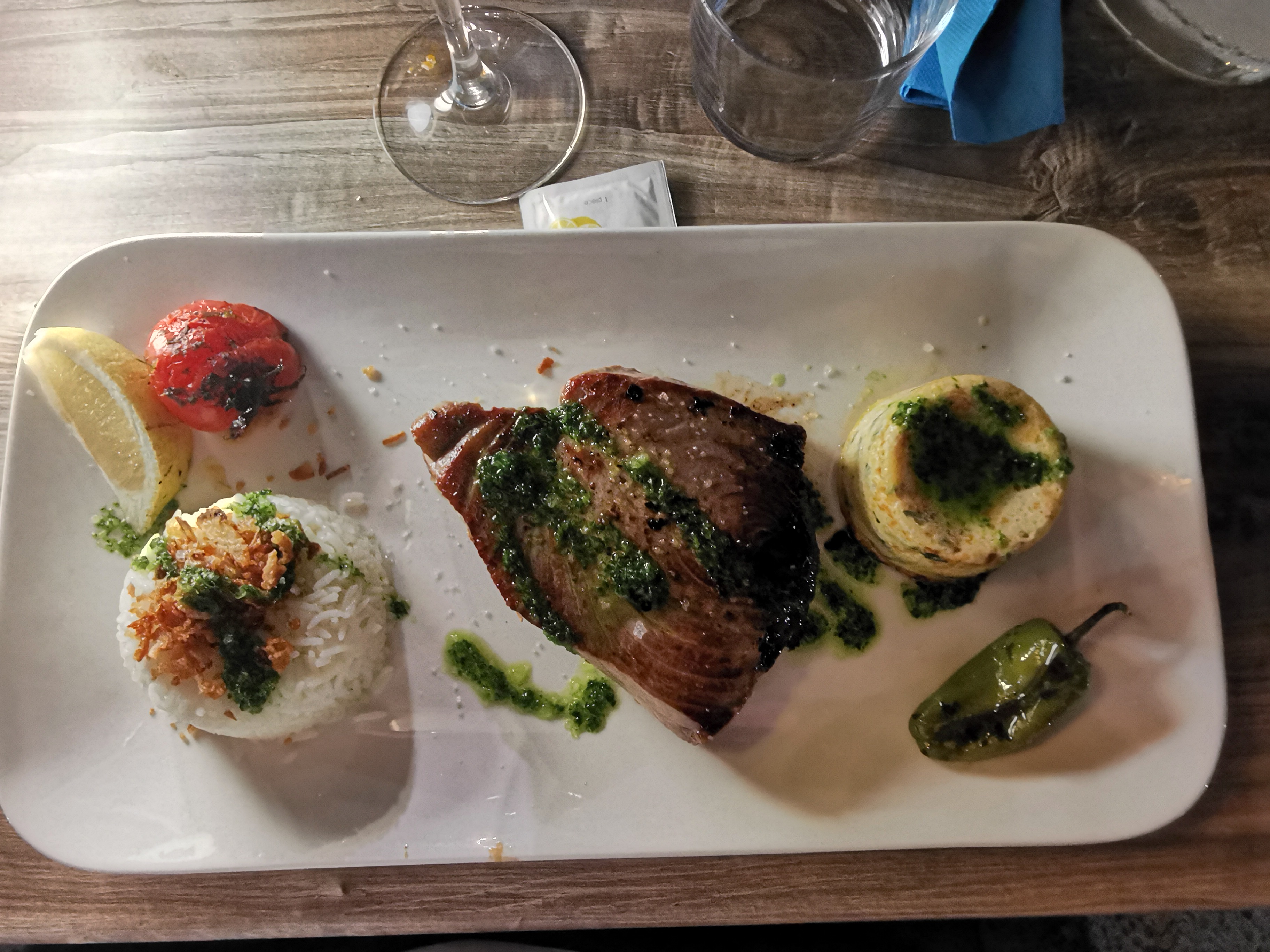 Excellent steak de thon cuisson parfaite . Prix correct . Service avec ke sourire et pro.