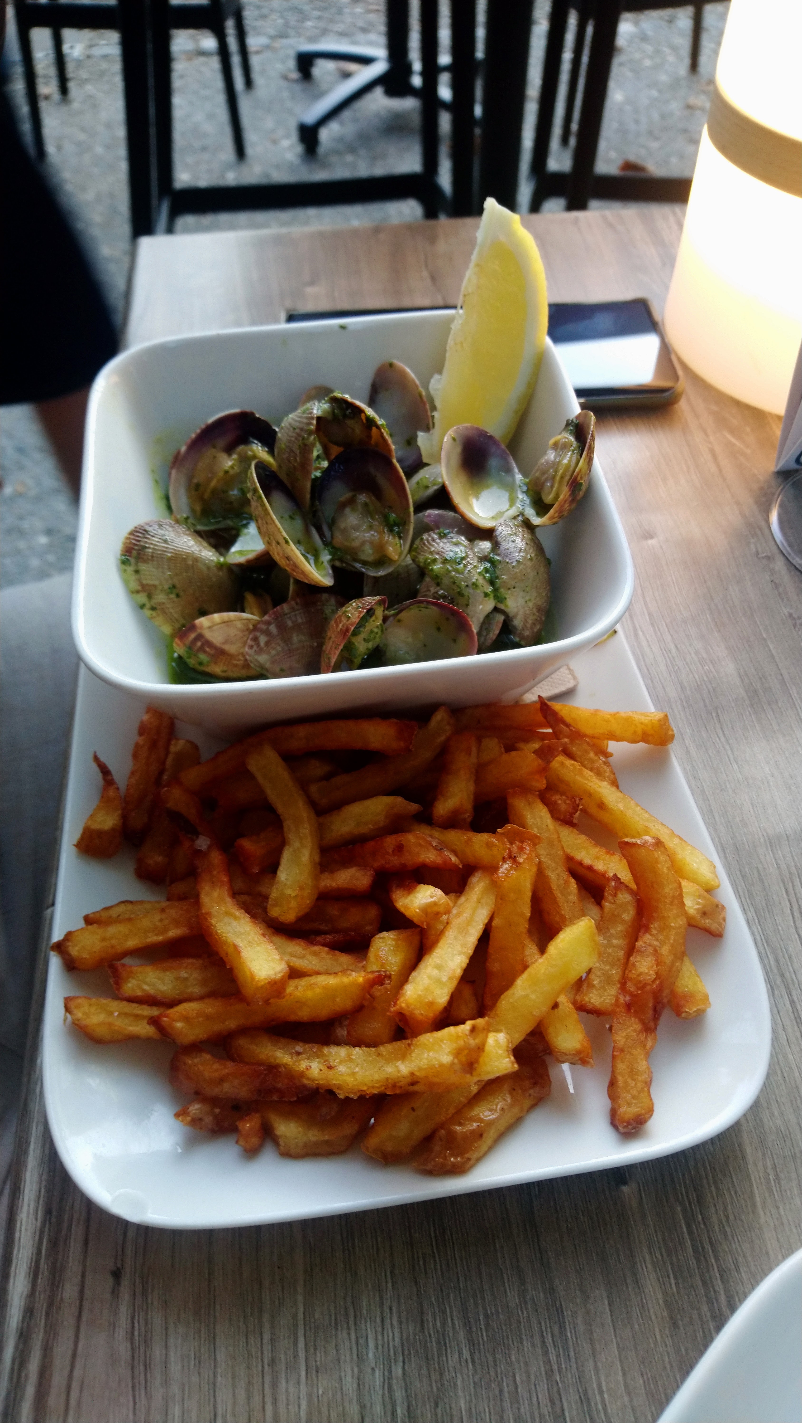 Étions venus quelques semaines plus tôt et avions été agréablement surpris et très bien accueillis par le patron. Ce soir, ce ne fut pas la même chanson, un samedi soir, week-end de pentecôte, on commence par plusieurs tapas accompagnés d'une bouteille de vin blanc, en précisant qu'on mangera ensuite, pour s'entendre dire une fois l'entrée terminée à 21h 30 que la cuisine est fermée, qu'il n'est plus possible de manger. Mme, à minima, lorsque qu'on s'occupe de ses clients, on vient les prévenir que la cuisine va fermer puisqu'en plus vous nous avez apporté un deuxième plateau d'huîtres... Bref une serveuse qui ne prévient pas ses clients que la cuisine va fermer et une cuisine qui ferme à 21h30 week-end de pentecôte c'est pas vraiment ce qu'il se fait de mieux. Heureusement, les huîtres Gillardeau étaient excellentes.
