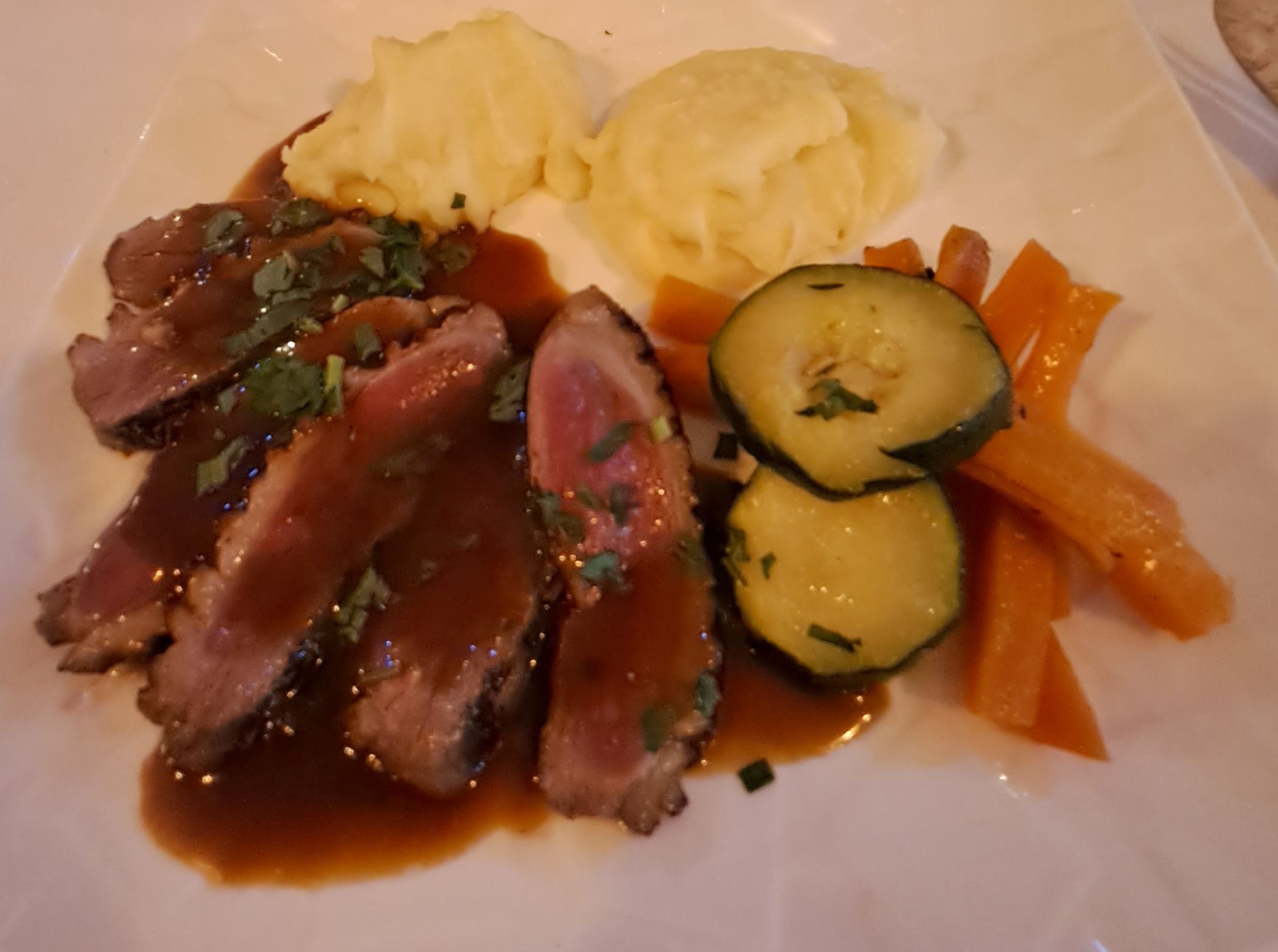 Excellent accueil. Entrée ; Crevettes à l'ail sublime et le plat ; pièce de boucher très juteuse. C'est la deuxième fois qu'on mange dans ce restaurant et pour la deuxième fois : Tout est bon et en plus la patronne est toujours aussi sympathique! A recommander !