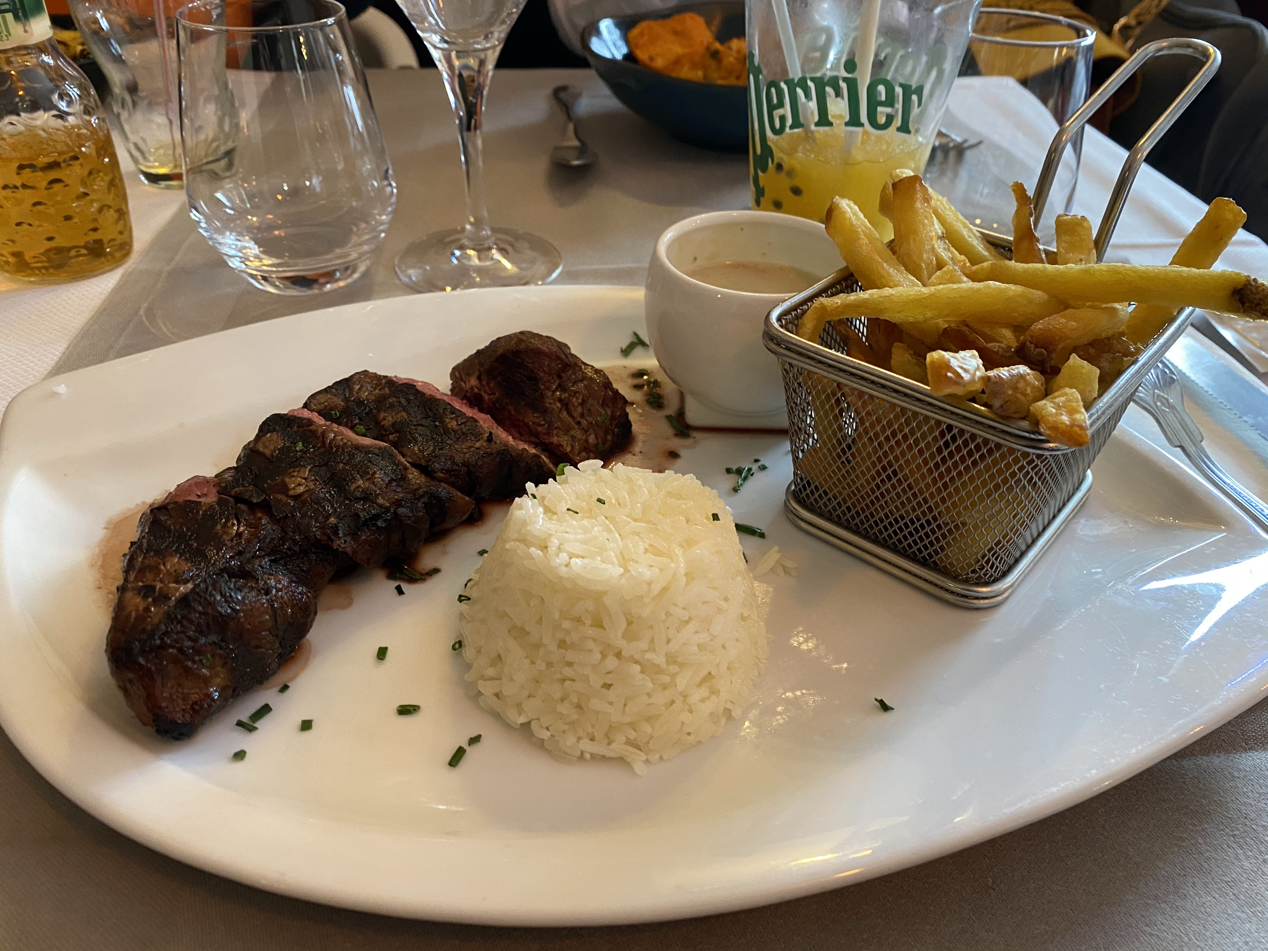 Bof pour les plats proposés … viande et frites peu appétissantes, poisson fade, une réelle déception par rapport à nos venues passées….