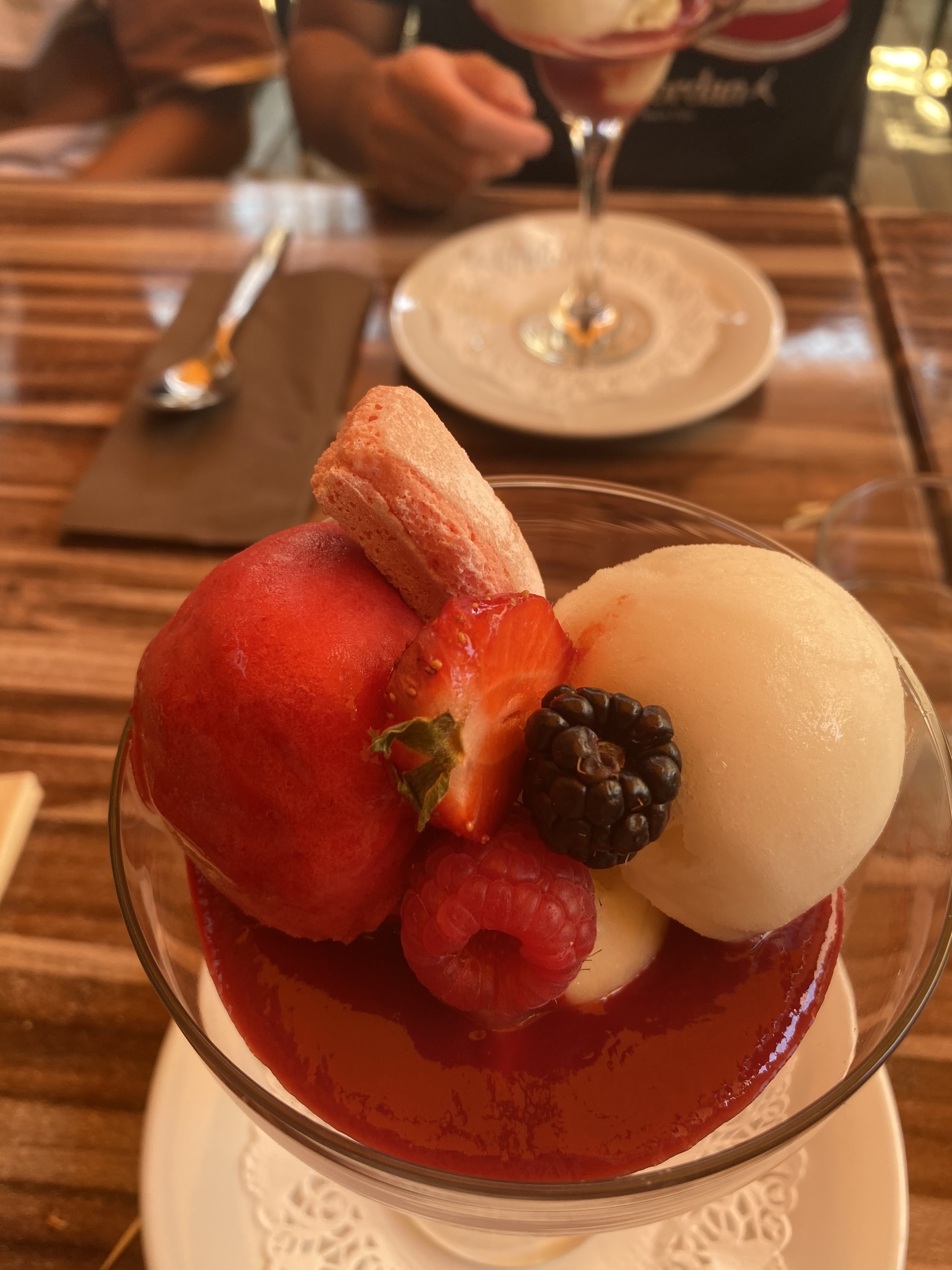 C'est une délicieuse découverte !!!! Tout est frais et délicieusement fait maison . Les desserts, aussi ,sont recherchés et très équilibrés : le sucre est bien dosé et laisse le goût des fruits prendre le dessus . Accueil très agréable, le personnel est souriant et aimable .