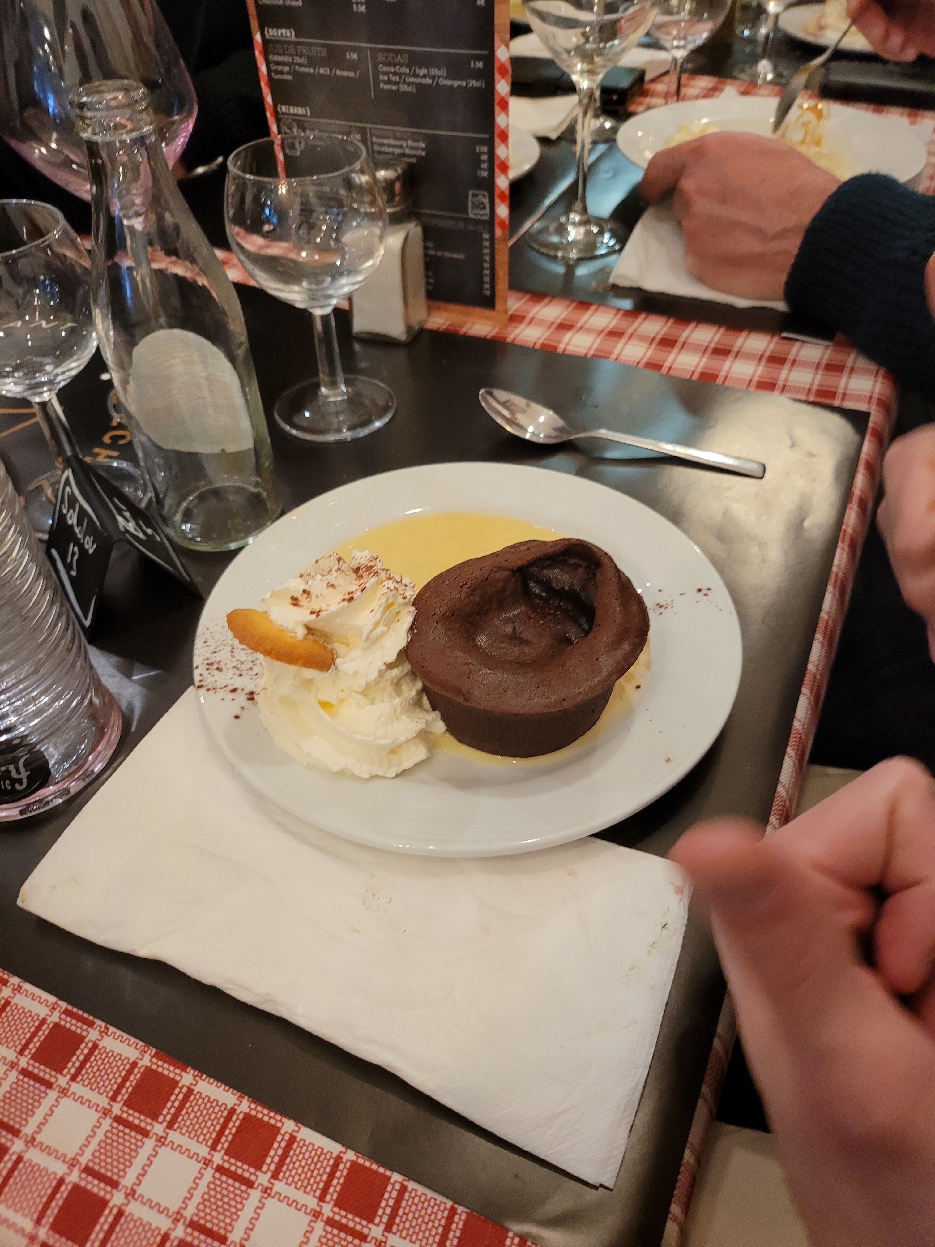 service souriant et agréable ça fait du bien ! des plats de qualité et généreux, du monde, du monde... quand c est bon ça se sait ! bravo à l équipe. juste une petite chose je ne mettrais pas les griottes en confiture sur la mousse au chocolat car ça fait disparaître le goût du chocolat , mais peut être ds une petite ramequin à côté....a discrétion.