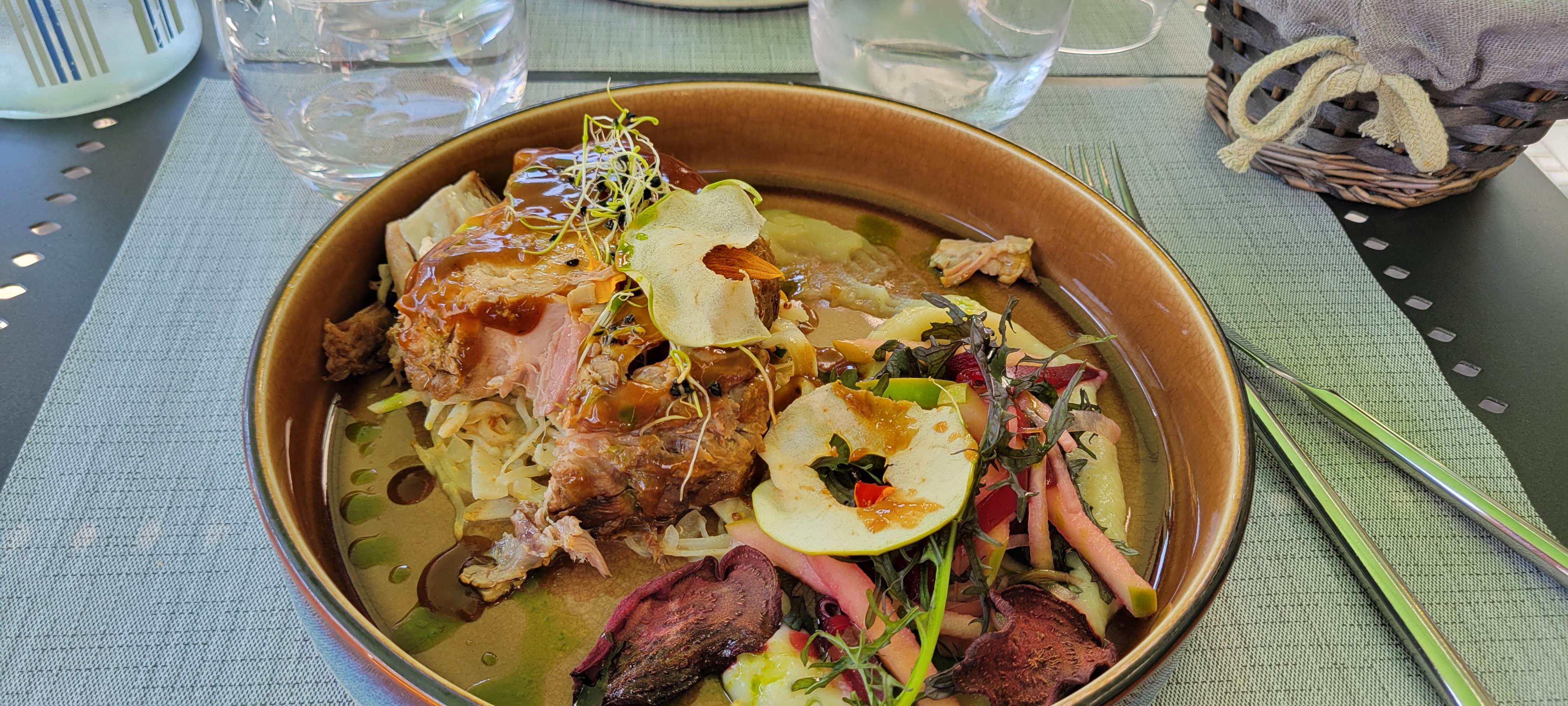 Expérience fantastique, nous nous sommes fait plaisir en allant d’une entrée de la mer savoureuse à une viande locale d’une qualité sans-nom pour terminer par des douceurs au chocolat et au fruit. Tel tout accompagné d’une sélection de vin exquise et des bières de la région ! Le chef ainsi que sa compagne nous on fait vivre un moment incroyable. Tant par leurs plats succulents que par leur gentillesse et leur convivialité. Nous y retournerons avec grand plaisir et nous vous conseillons de vous arrêter ici si vous passez dans la région !