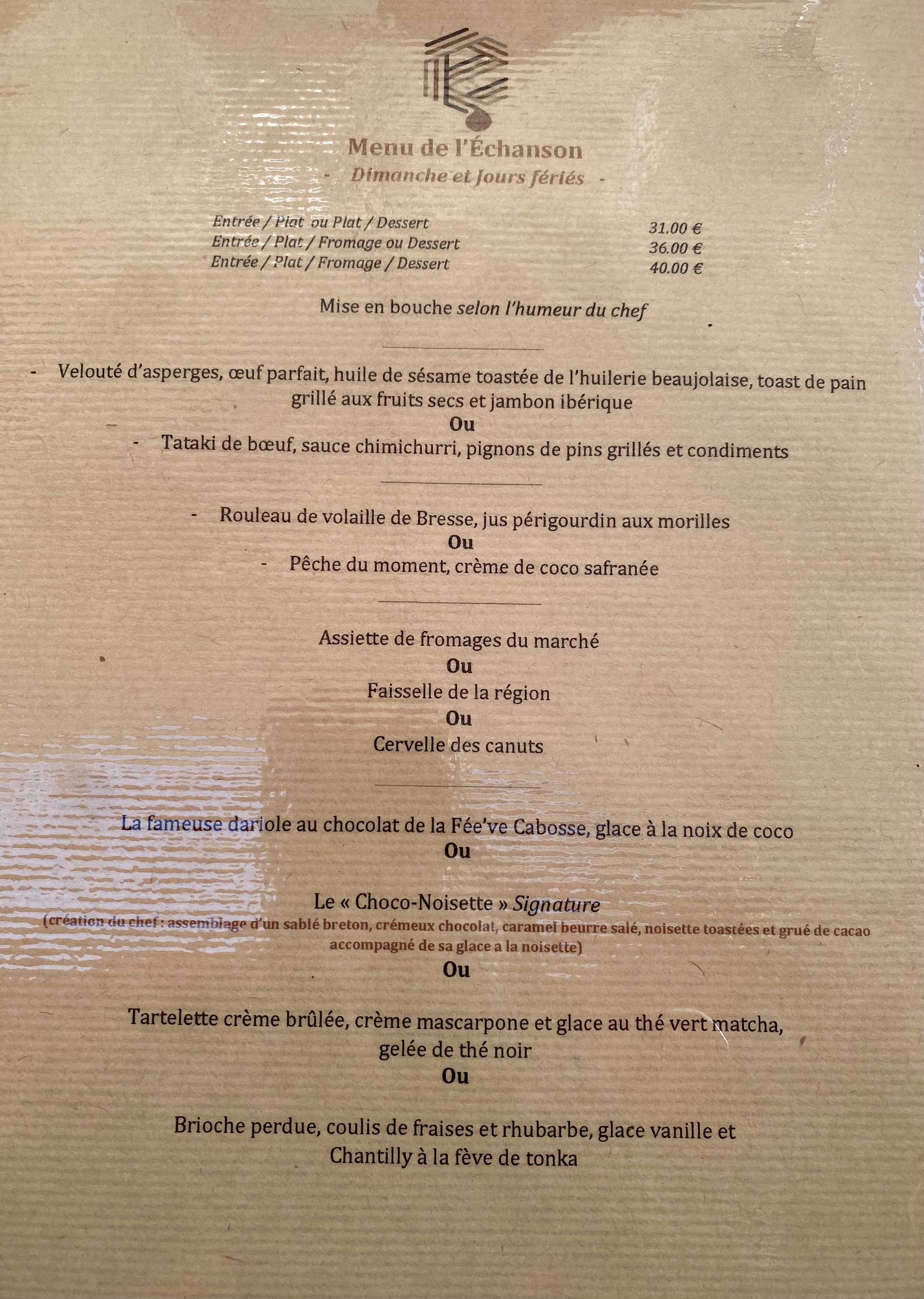 Dans une ambiance agréable et chaleureuse, nous avons passé une superbe soirée en famille. L’accueil et le service sont parfait et la cuisine excellente et savoureuse. Je recommande sans hésiter et retournerais dans cet établissement avec plaisir ! Merci encore @l’echanson !