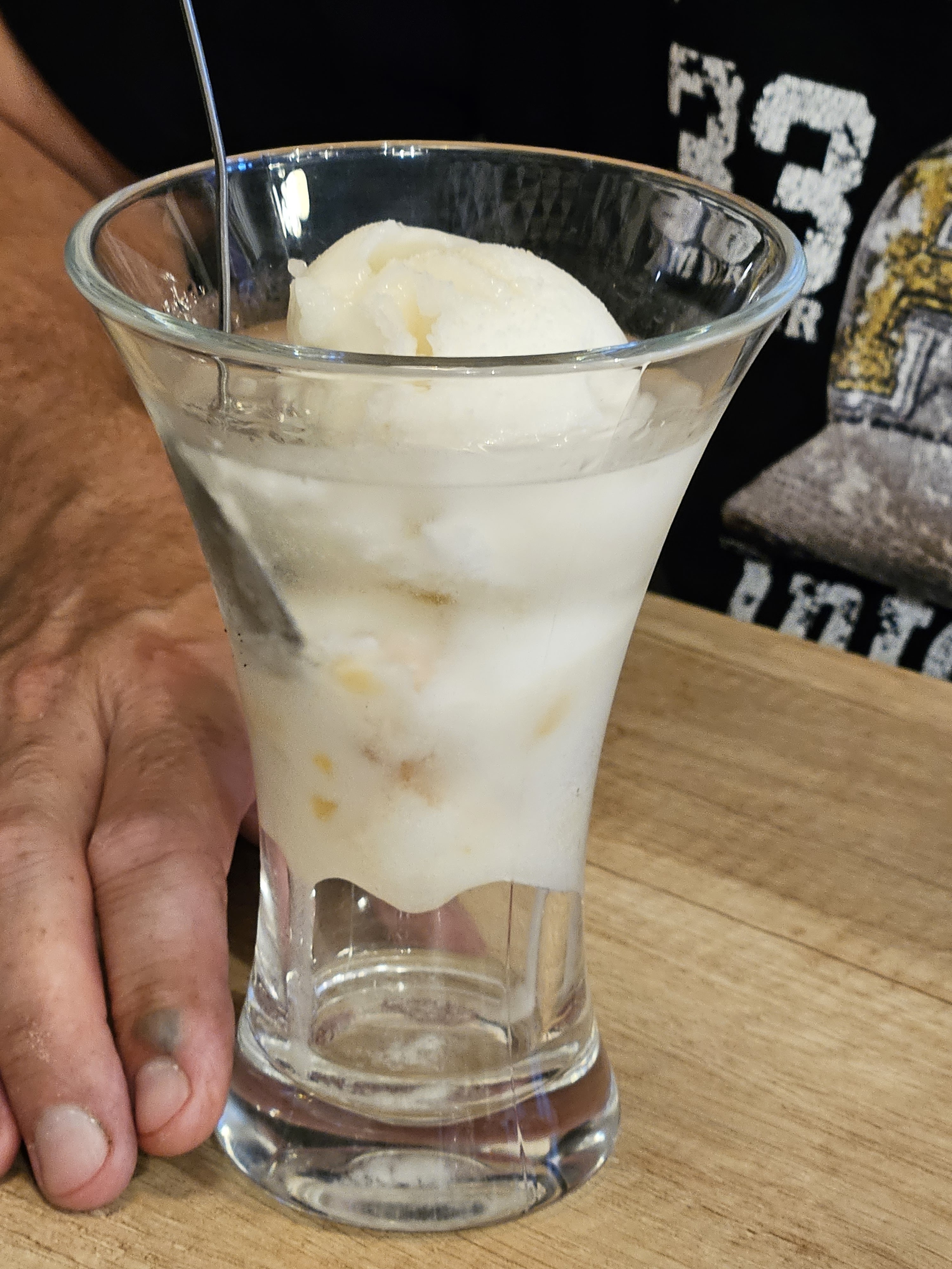 Bonjour Pare quoi commencer... On a pris une planche apéro une tuerie...🤤 on a enchainé avec des pizzas 2 aux quatre fromages et une vezuve chorizo, merguez, poivrons, oeuf eeexxeeellleeennnteee..... On c est dit allez un pti dessert, madame une glace After eight et ma fille un bandana Split ( énorme j ai du l aider a finir avec madame)et moi un colonel citron vodka waaaaa heureusement c est pas moi qui conduit 🤣🤣🤣. Le service et l accueil exemplaire (sympa, accueillant, souriant, Ils prennent même le temps de plaisanté avec nous malgré le plein boum....et c est rien de le dire. On reviendra sûr et certain et surtout ne changez rien. Un grand merci aux patrons et tous le personnel et surtout ne changez rien vous êtes magnifiques.