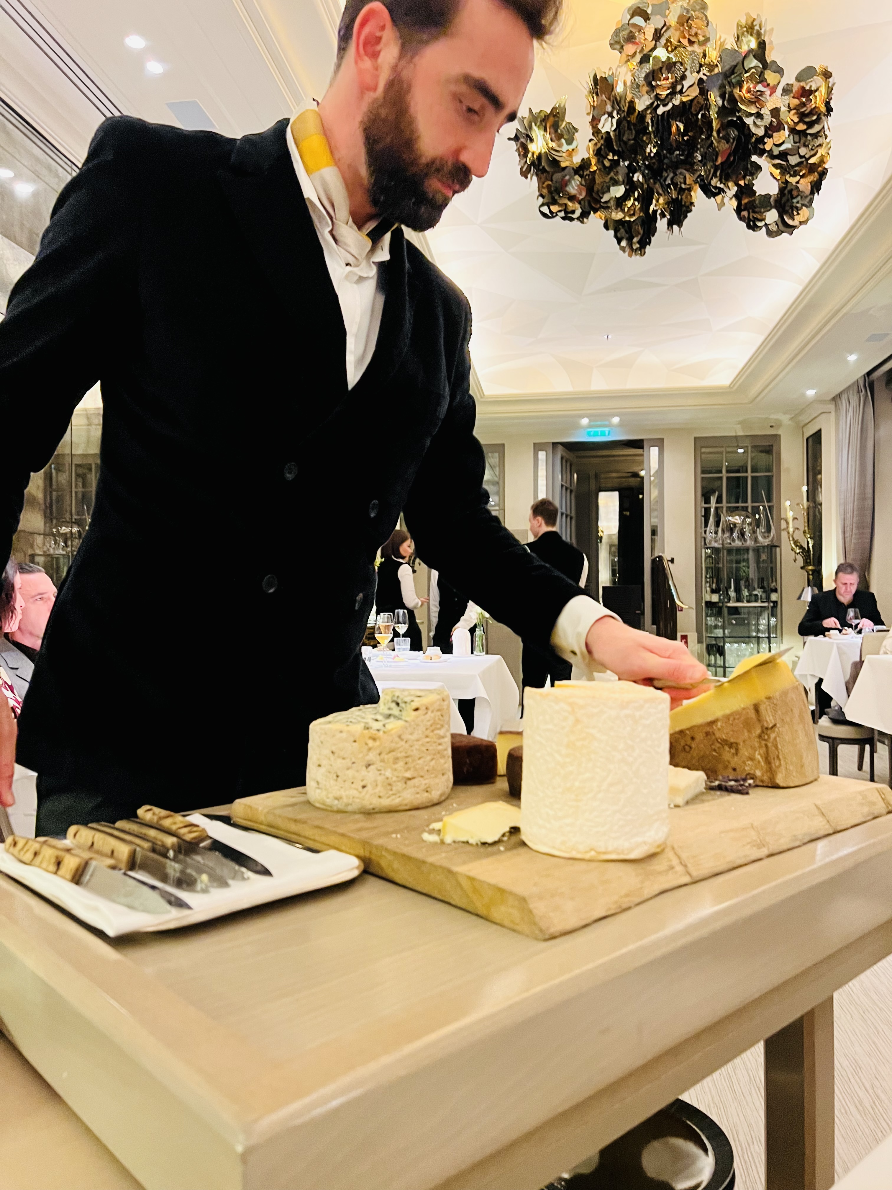 nous avons passé un merveilleux moment dans cet endroit calme, moderne, raffiné, les plats sont très élaborés, sauces légères, truffe blanche sur chaque plat , fromages excellents, personnel chaleureux , souriant, du sommelier au chef, équipe au top, avec unjoli petit canapé pour mon chien ! nous avons commencé par une coupe de champagne au jardin d hiver ( accompagnée de mon fils) un décor chic et moderne, un sapin somptueux était installé au centre, puis après notre excellent diner, nous avons pris un dernier coktail au bar ,servis par Ollivier, absolument charmant ansi que très professionnel , l endroit est superbe ! expérience inoubliable dans ce magnifique palace parisien ! nous reviendrons !