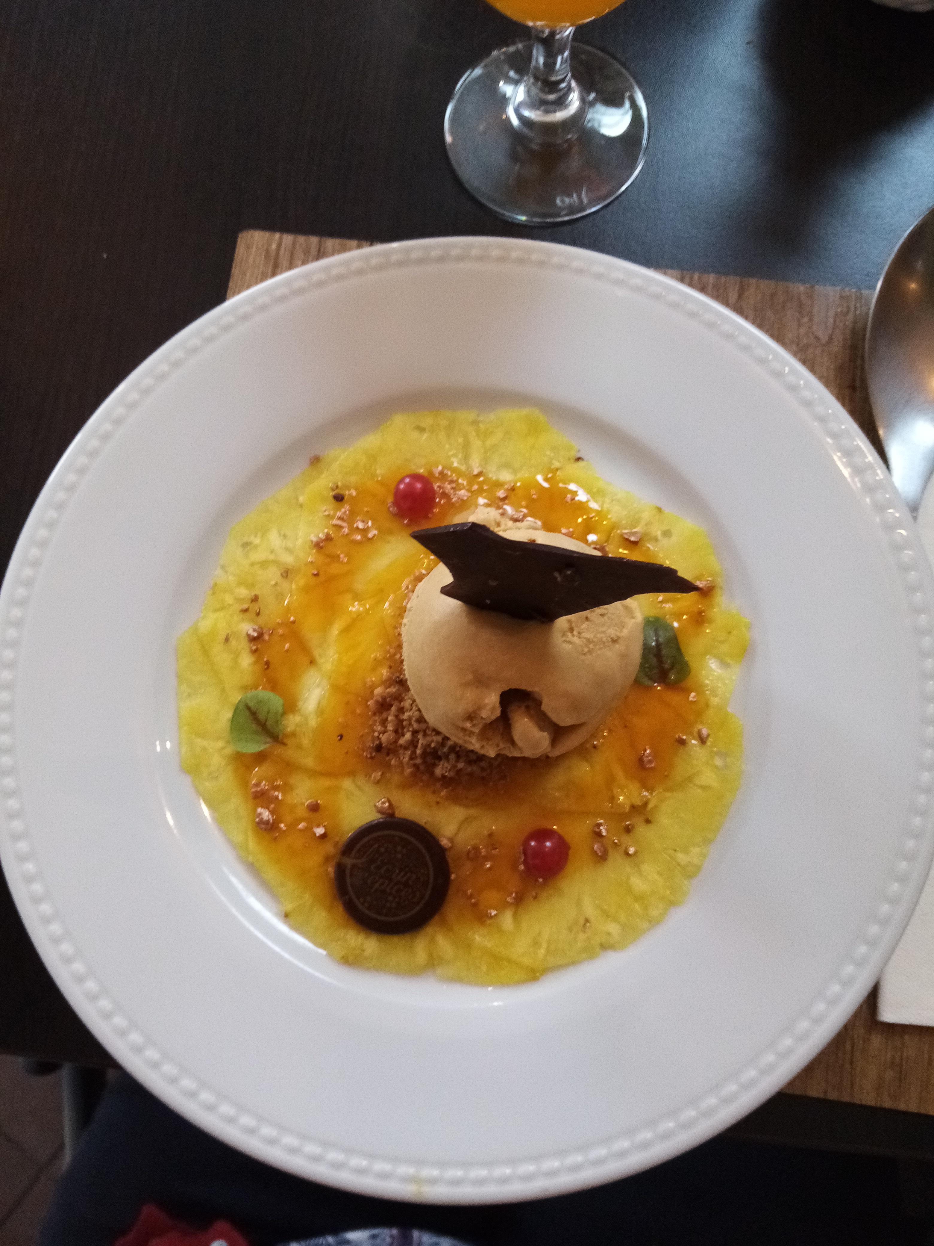 Quand nous sommes rentrés dans le restaurant on nous a tout de suite mis bien l’entrée était très bonne le plat est très original et le dessert dignes d’un 3 étoiles. Merci pour votre accueil