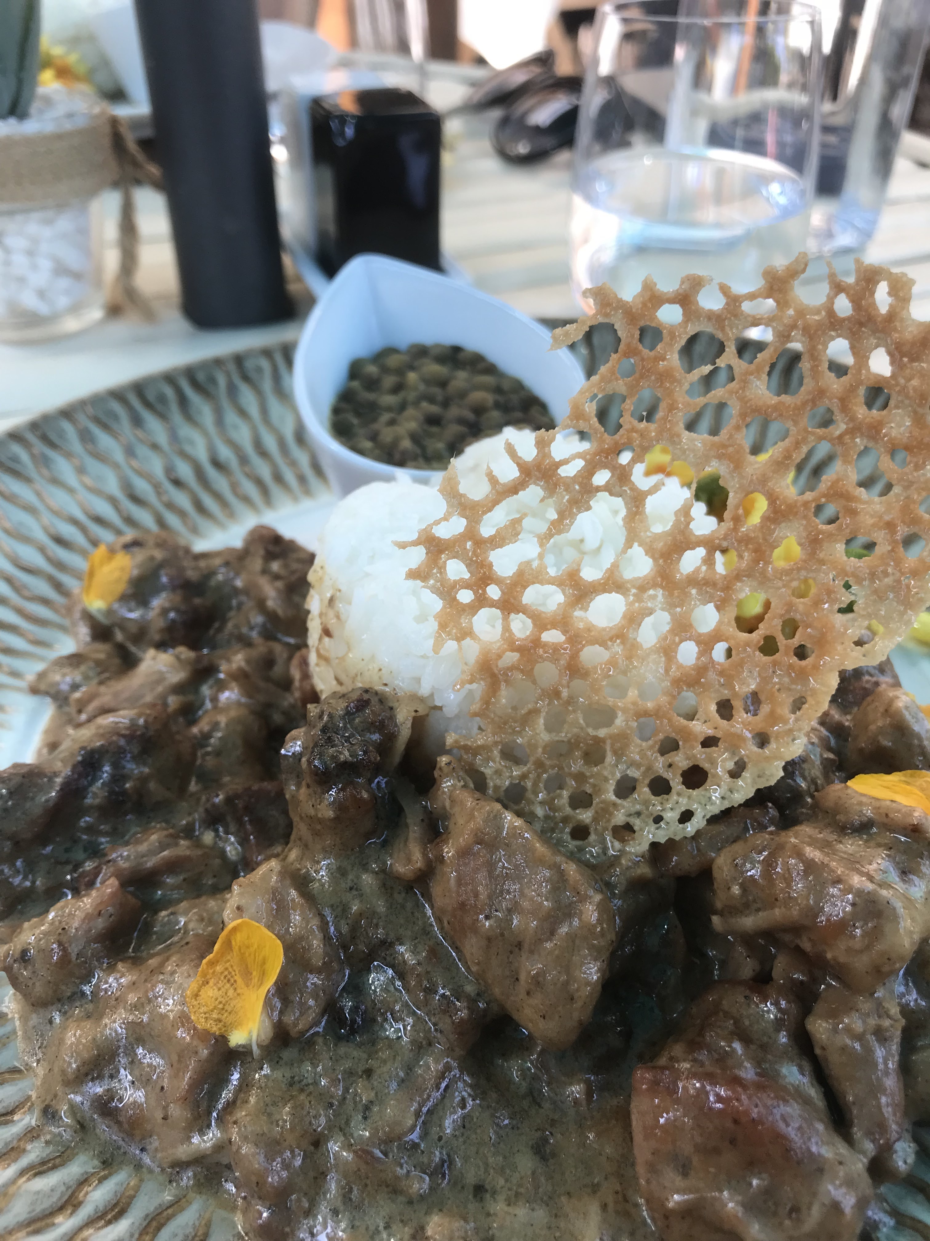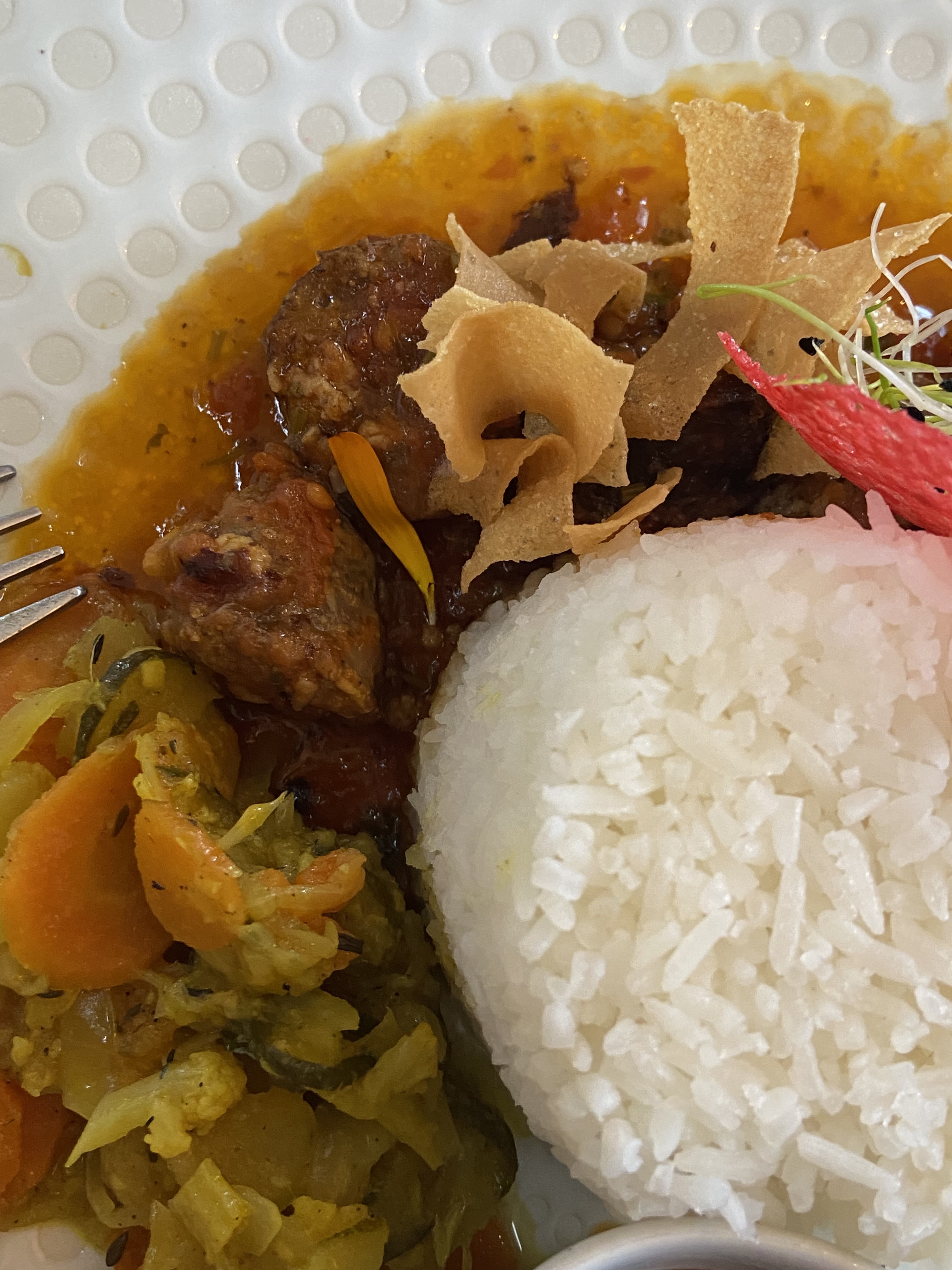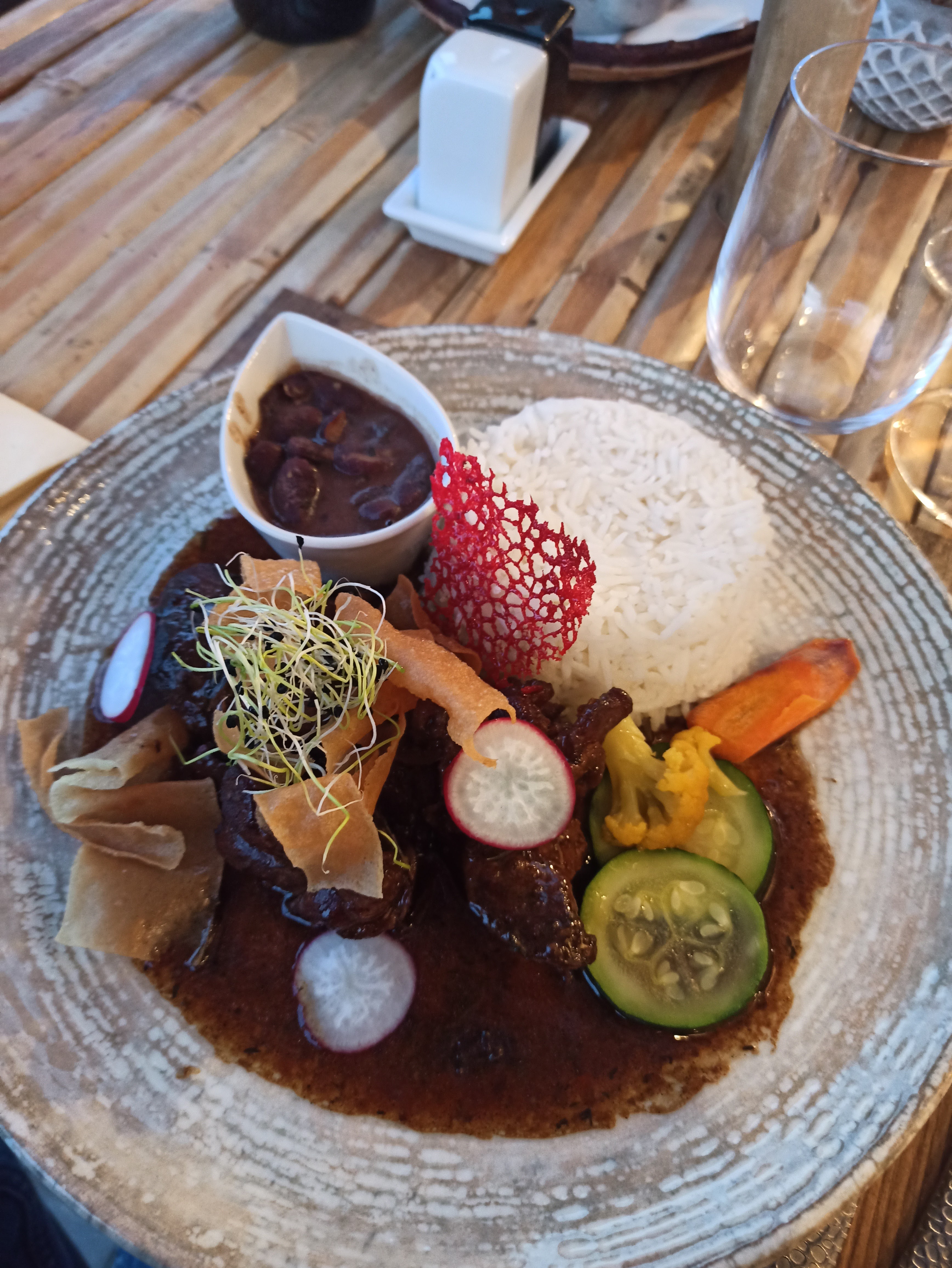 Excellente découverte, les plats sont pleins de saveurs et le piment à part pour ceux qui n'en veulent pas . La présentation est superbe.