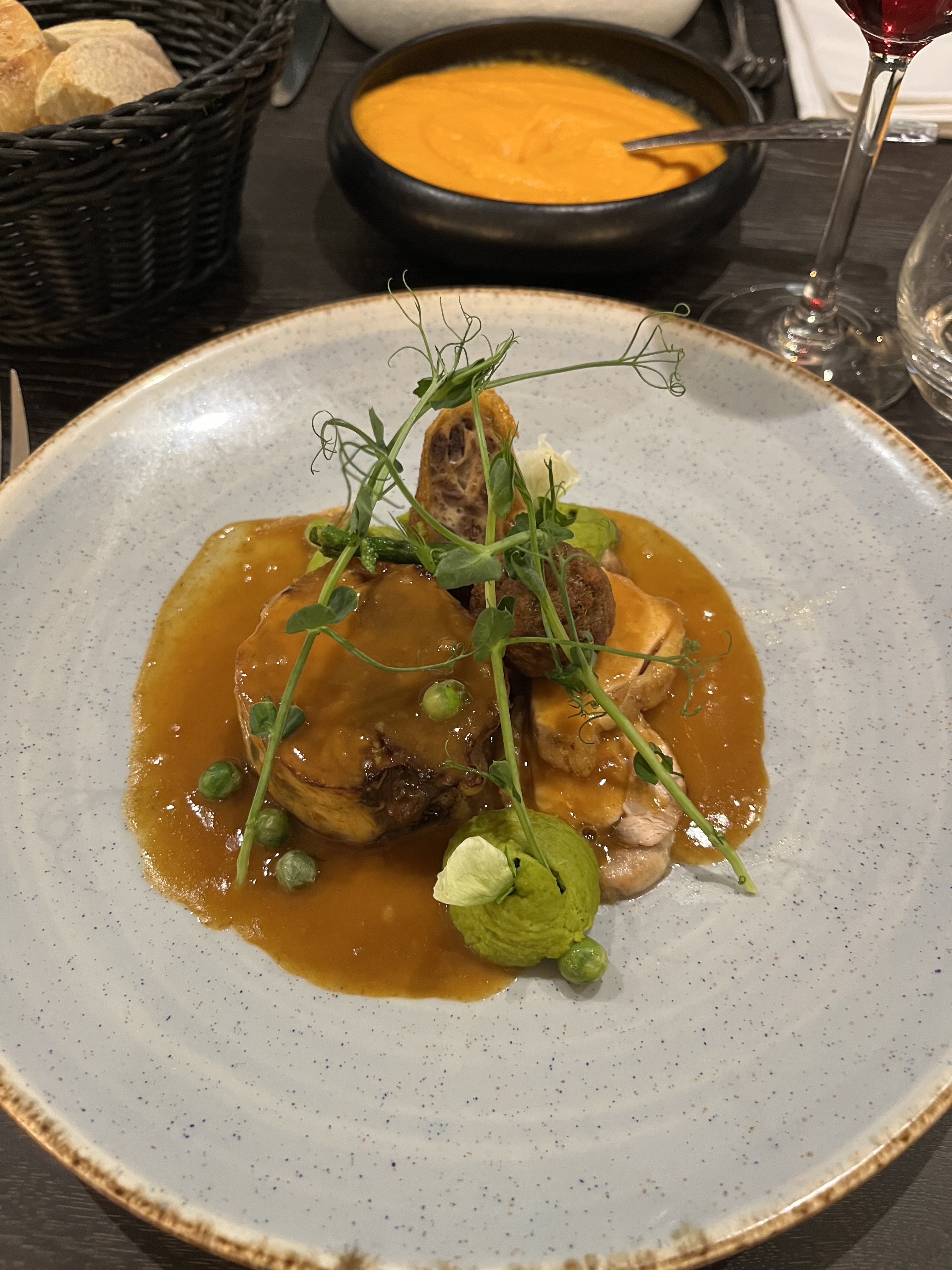 Cuisine raffinée; accueil toujours aussi agréable . Chaque plat du menu de saison est une nouvelle découverte. le foie gras au chorizo est extraordinaire et le filet mignon de veau cuisson lente une merveille pour les papilles gustatives. Tout donne envie de revenir pour déguster l’ensemble des autres plats proposés !!!