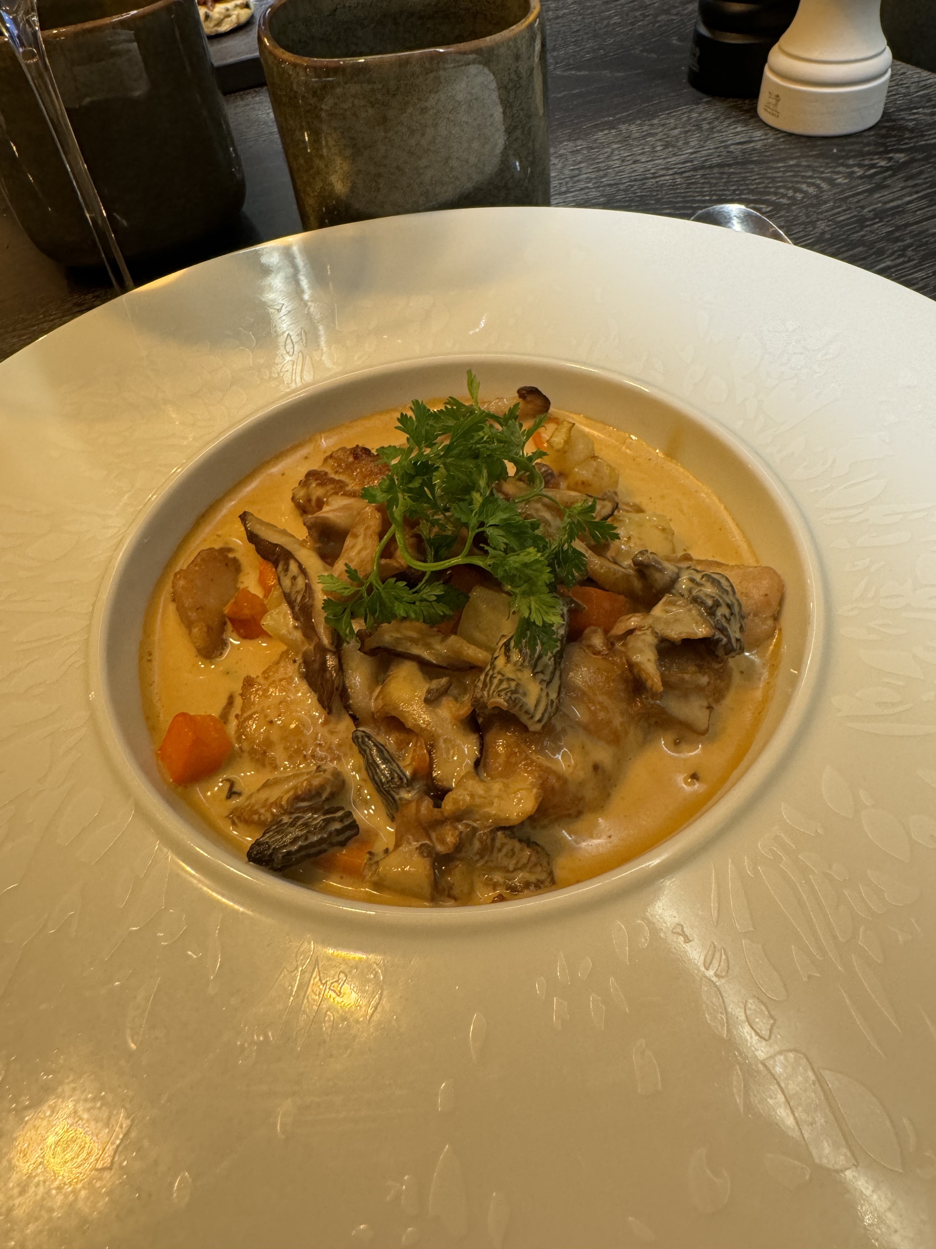 Lieu très agréable. Sobre mais chic et une cuisine exceptionnelle. Les asperges et les langoustines cuisinées de 2 façons, un régal quant aux ris de chevreau aux morilles,une tuerie. L accord mets et vins parfait. Tout est vraiment top au niveau visuel et gustatif. Très agréable soirée. Bravo au chef et à tte l équipe très professionnelle.