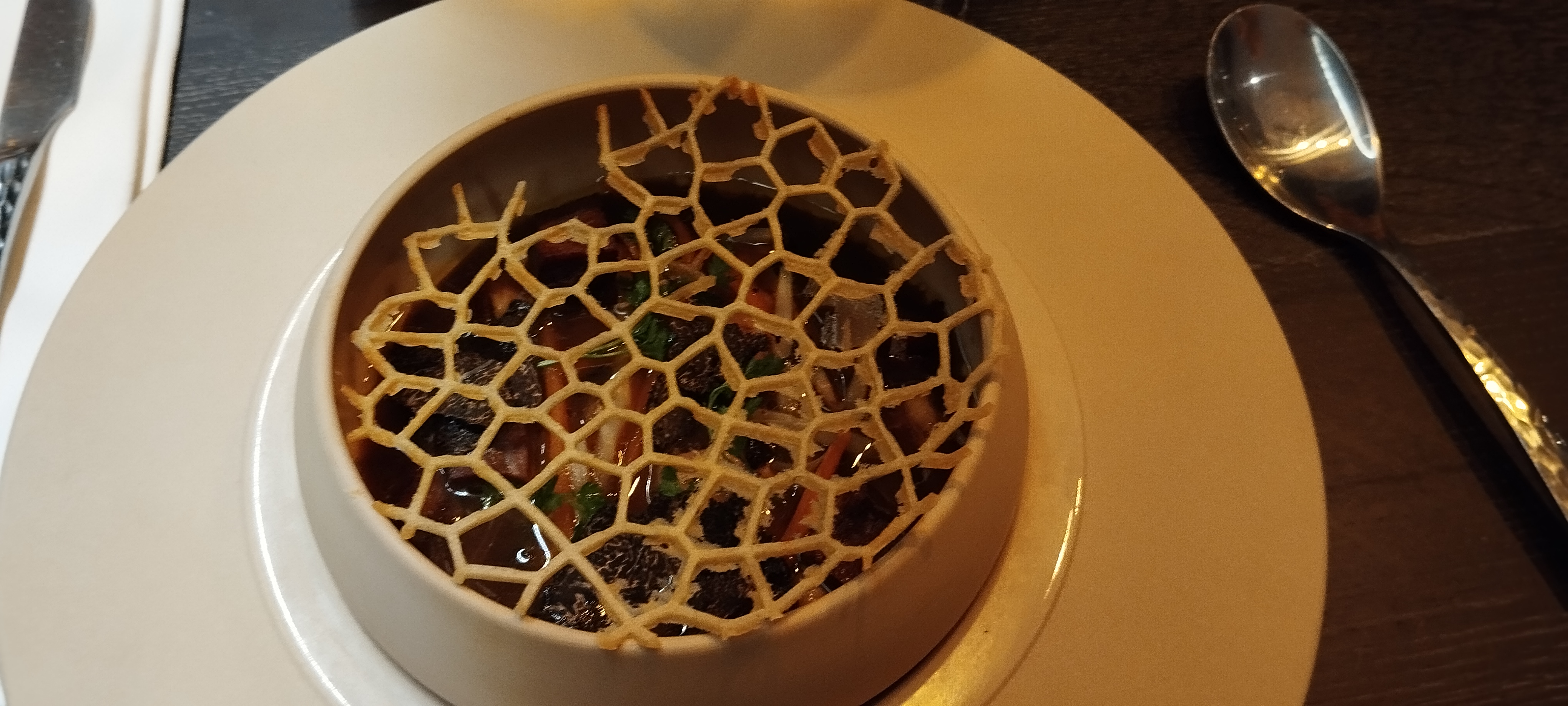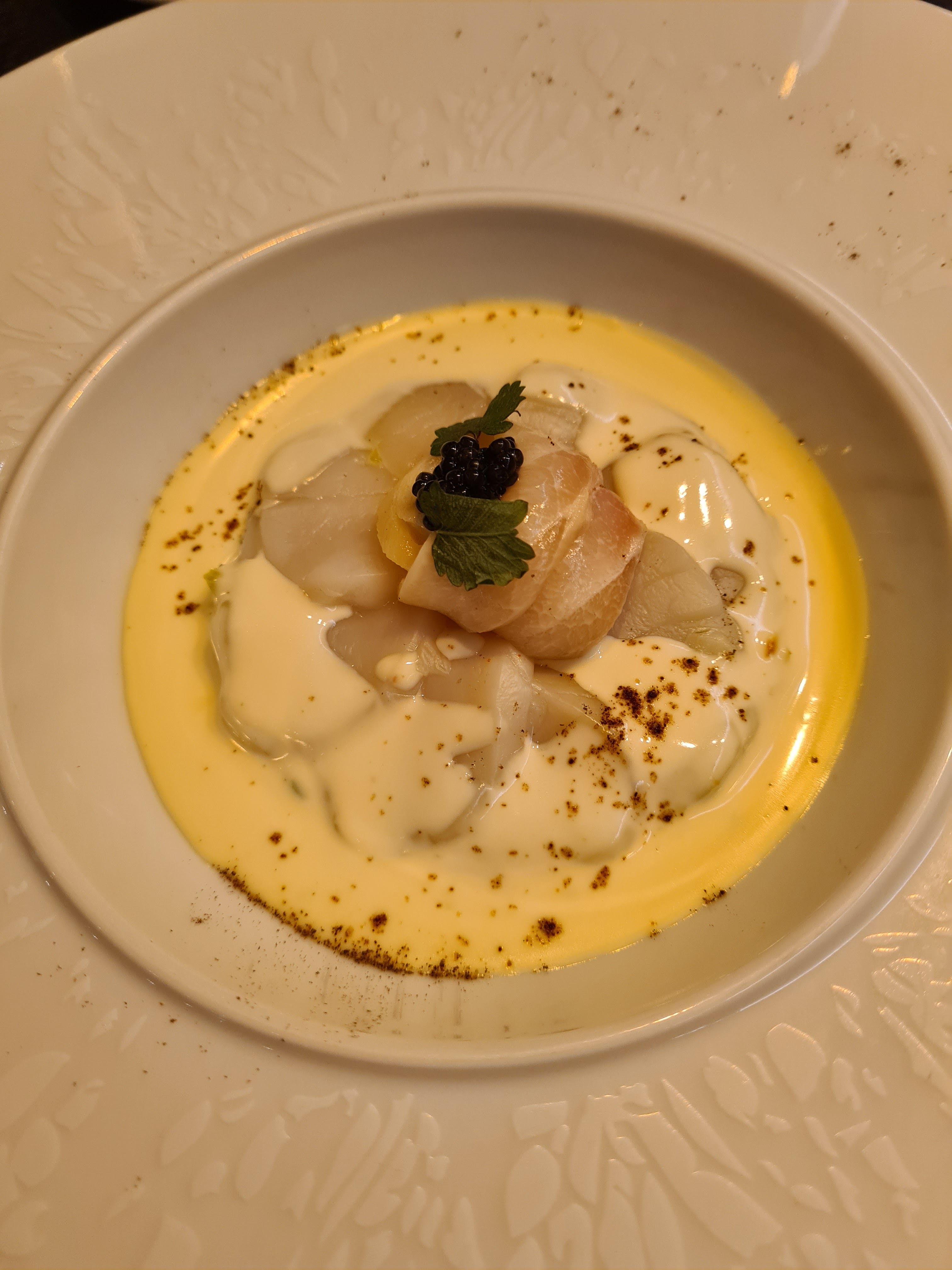 Excellentes explications des serveurs, ils sont à l'écoute et prévenants ! Les plats sont fins, équilibrés et non exubérants ! Seuls bémols, salle un peu bruyante et les plats à base de truffes qui pourraient être un peu plus fournis afin d'exhausser le goût. Adresse à partager sans modération !