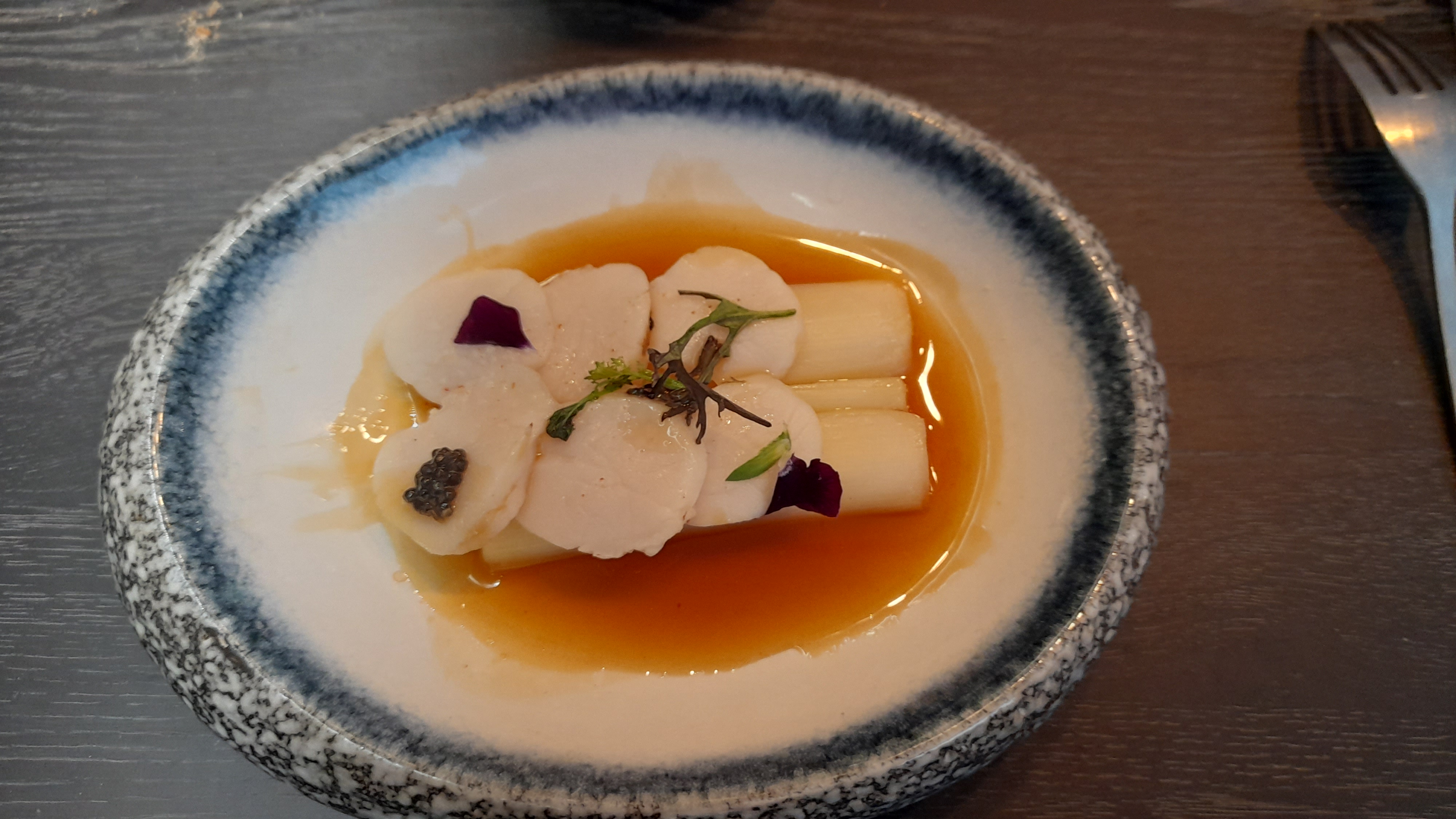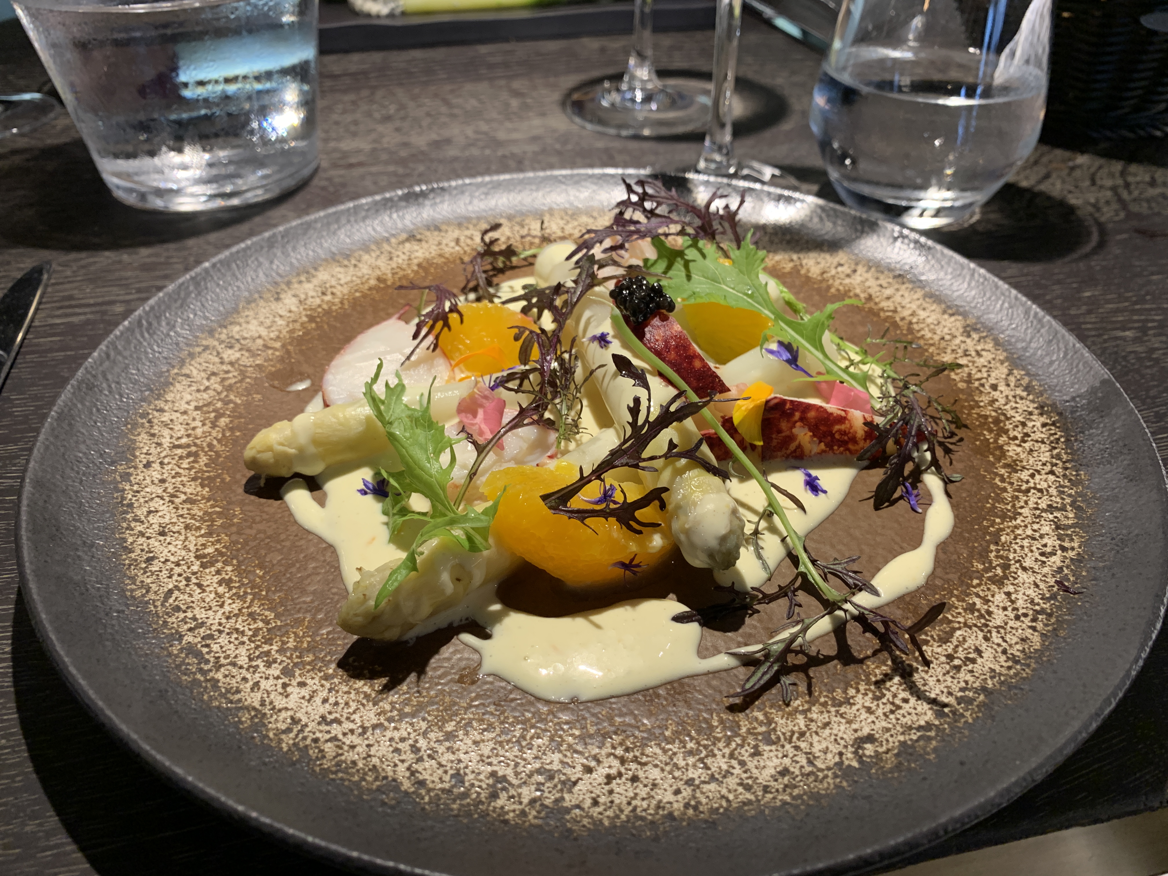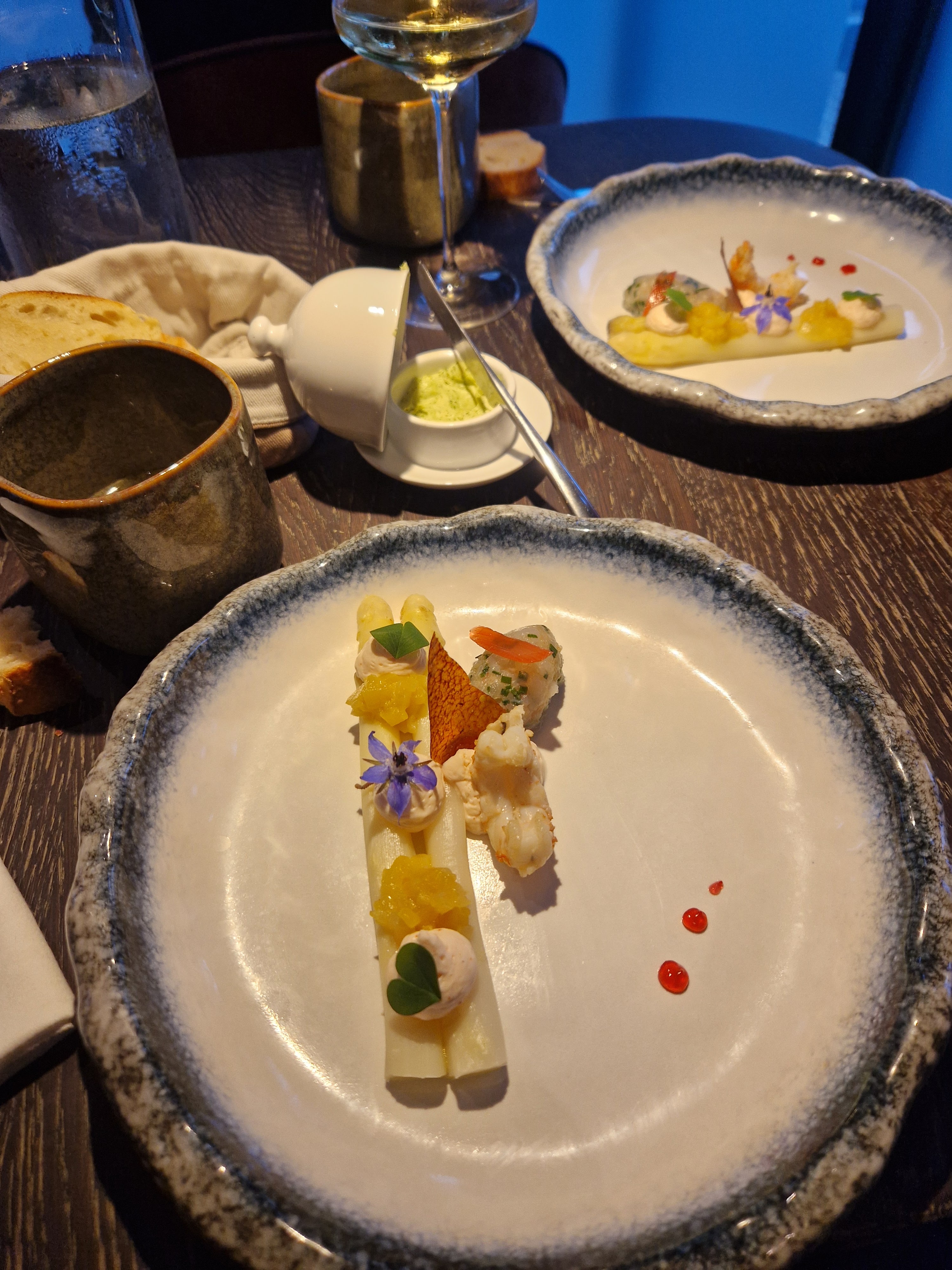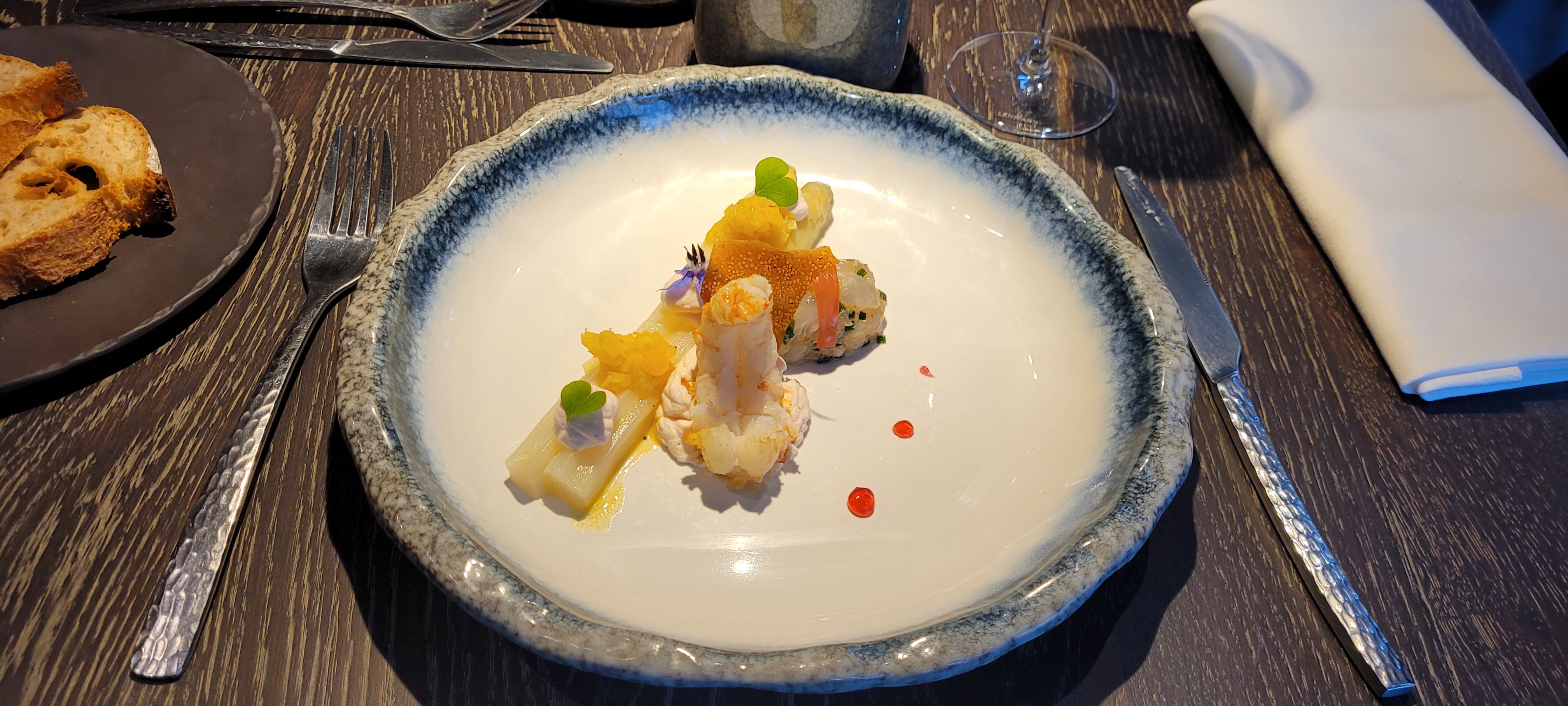 Le tartare de langoustines gelée de citron avec les asperges blanches 😋😋😋😋, je ne m'en remets pas : magnifique. Vivement la carte d'été !