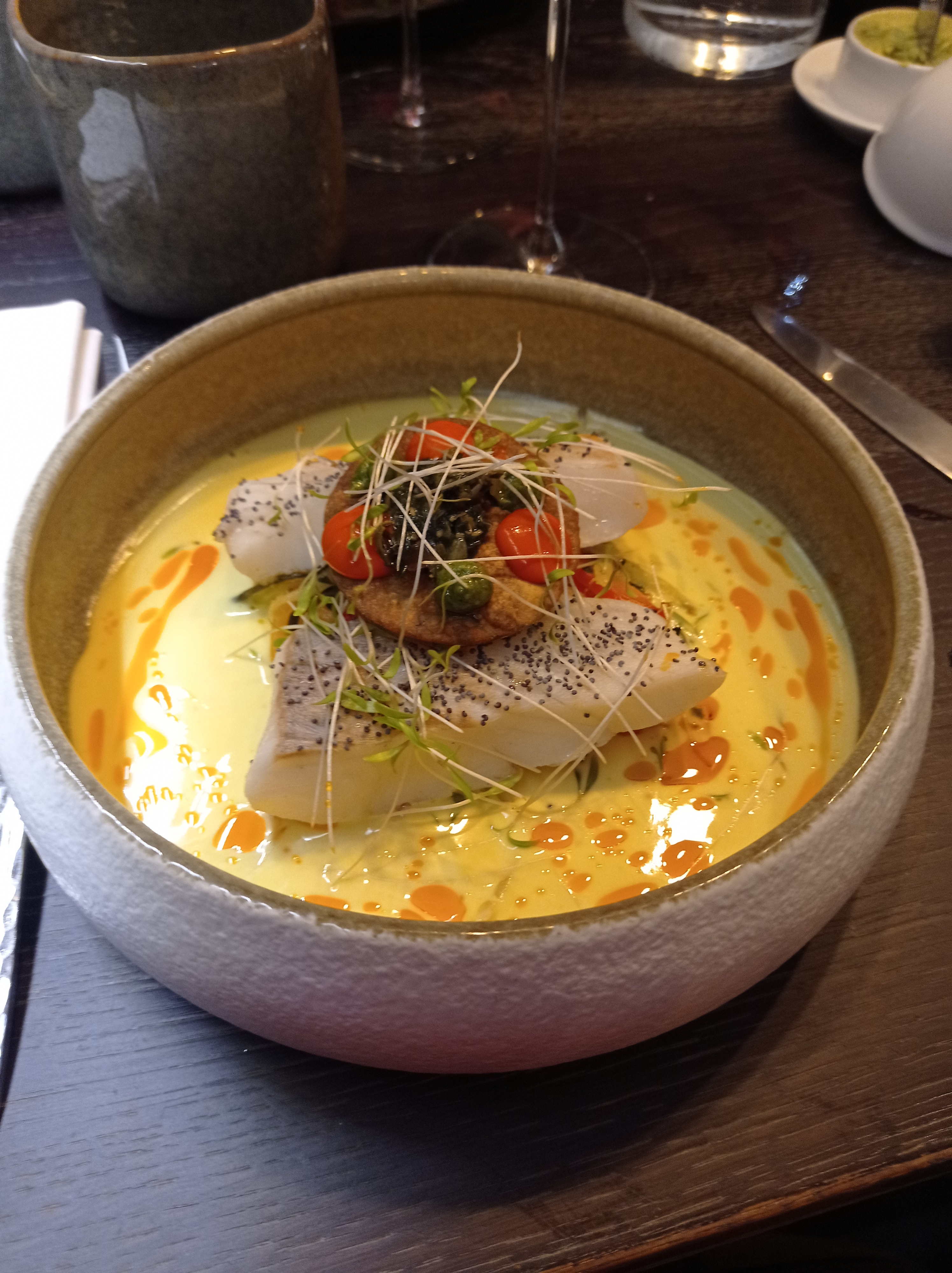 Le restaurant est très joli, la cuisine y est raffinée, la présentation des plats est réussie, l’explication de chaque mets est claire. Les plats sont très biens exécutés et c’est très bon.