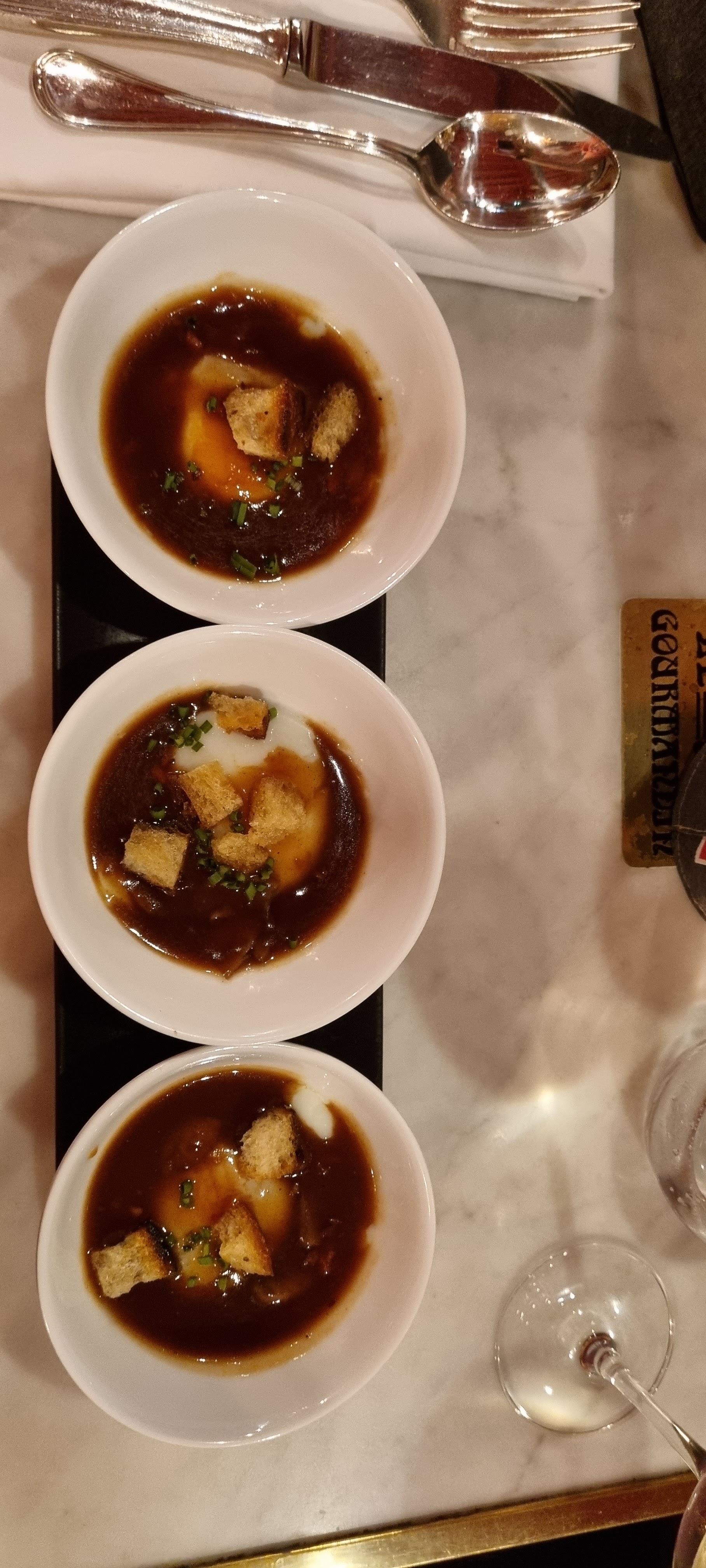 Avis mitigé côté vin excellent mais bon oeufs meurette bof sauce bcp trop liquide et plat tiède par contre le plat suprême de volaille bon et redeçu par le dessert crème caramel avec un caramel qui semble être de la flotte . Le serveur était incapable de nous dire ce qu il y avait en accompagnement du café gourmand. J ai l impression que l établissement est blasé et crois que leur notoriété est acquise et du coup ils en oublié l essentiel .donc bof bof