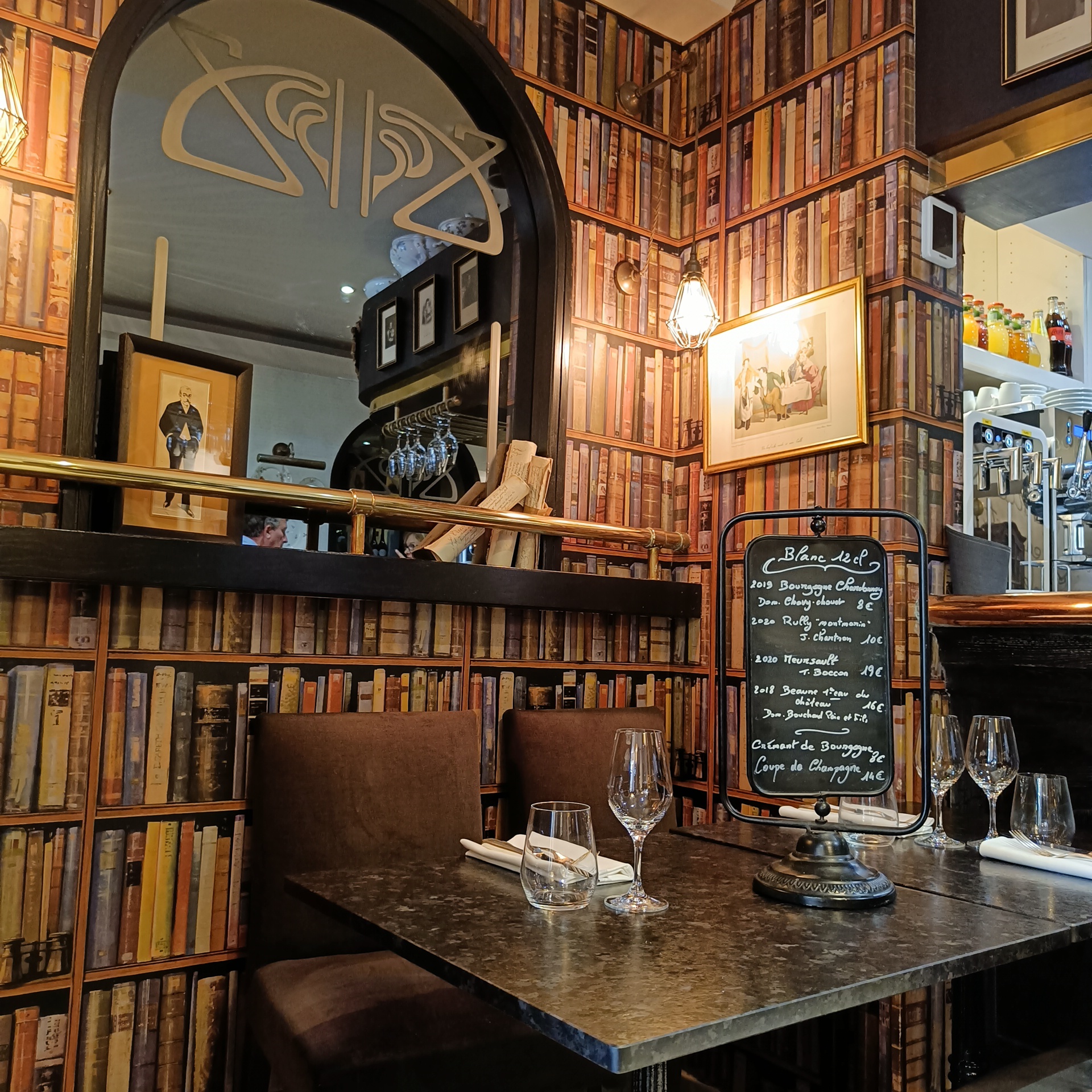 Prix un peu élevés ( compter 10 à 15 euros pour une entrée et 20 e pour un plat). Qualité des produits excellente. Grand choix de vins et bons conseils pour les marier à la nourriture. Service rapide et impeccable. Personnel aimable. Cadre très beau en rapport avec les livres.