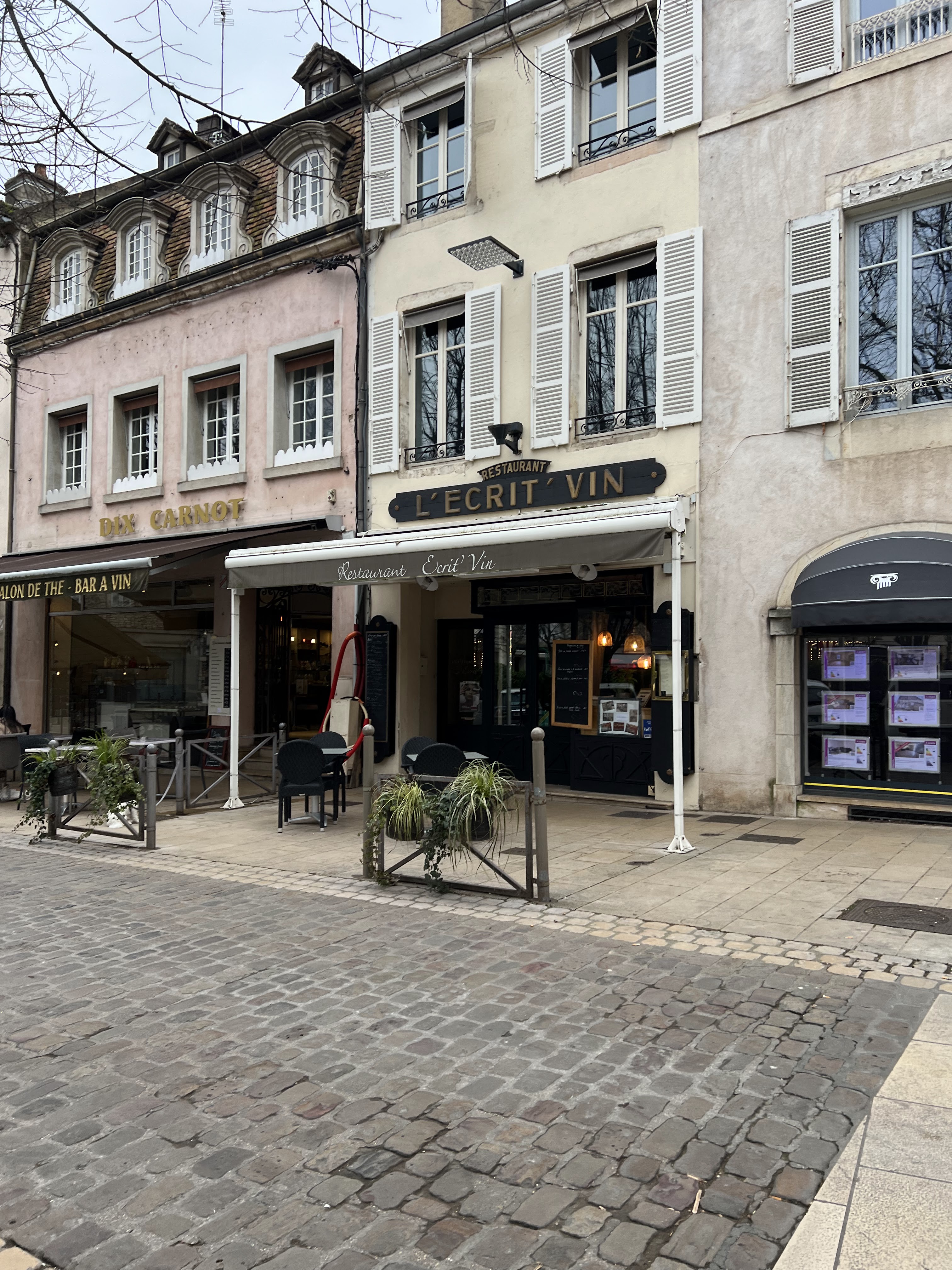 C’était une retrouvaille, 16 après, ce restaurant s’appelait alors le Gourmandin. L’Ecrit’vin propose dans un cadre raffiné et confiné une cuisine de qualité, bourguignonne, savoureuse. La longue carte des vins est une torture pour choisir car chaque nom de viticulteur, chaque appellation est un appel à la dégustation. Cuisine et vins de ce restaurant en font une étape incontournable si vous passez à Beaune