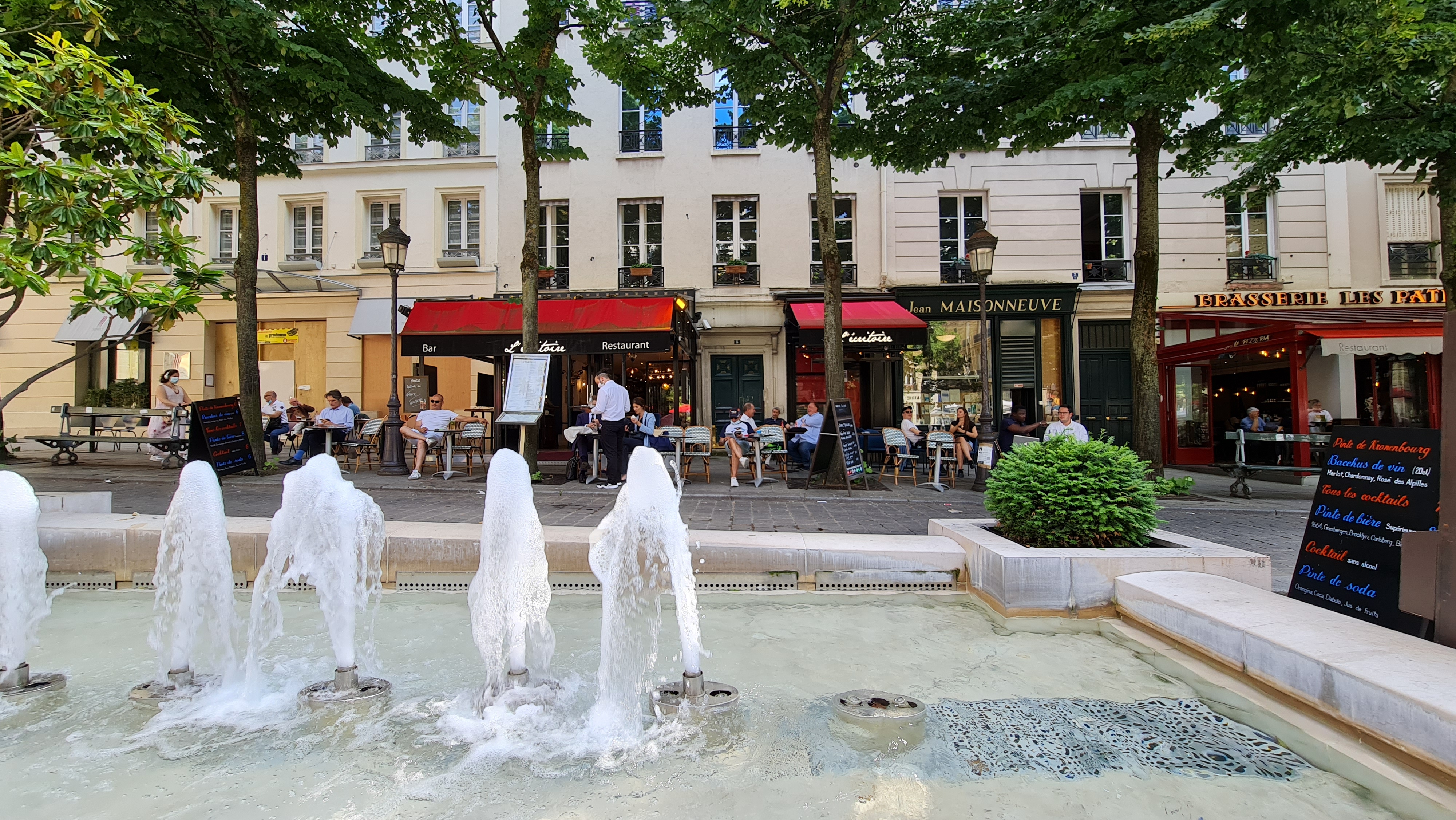 Très très belle terrasse au calme sur la place située devant la Sorbonne. A l'ombre et avec une fontaine rafraîchissante. Un peu à l'écart de la grande foule c'est un endroit relativement paisible. Le service est rapide, souriant, aimable et cordiale. Les tarifs sont corrects et la restauration est bonne. Lieu à vraiment apprécier.