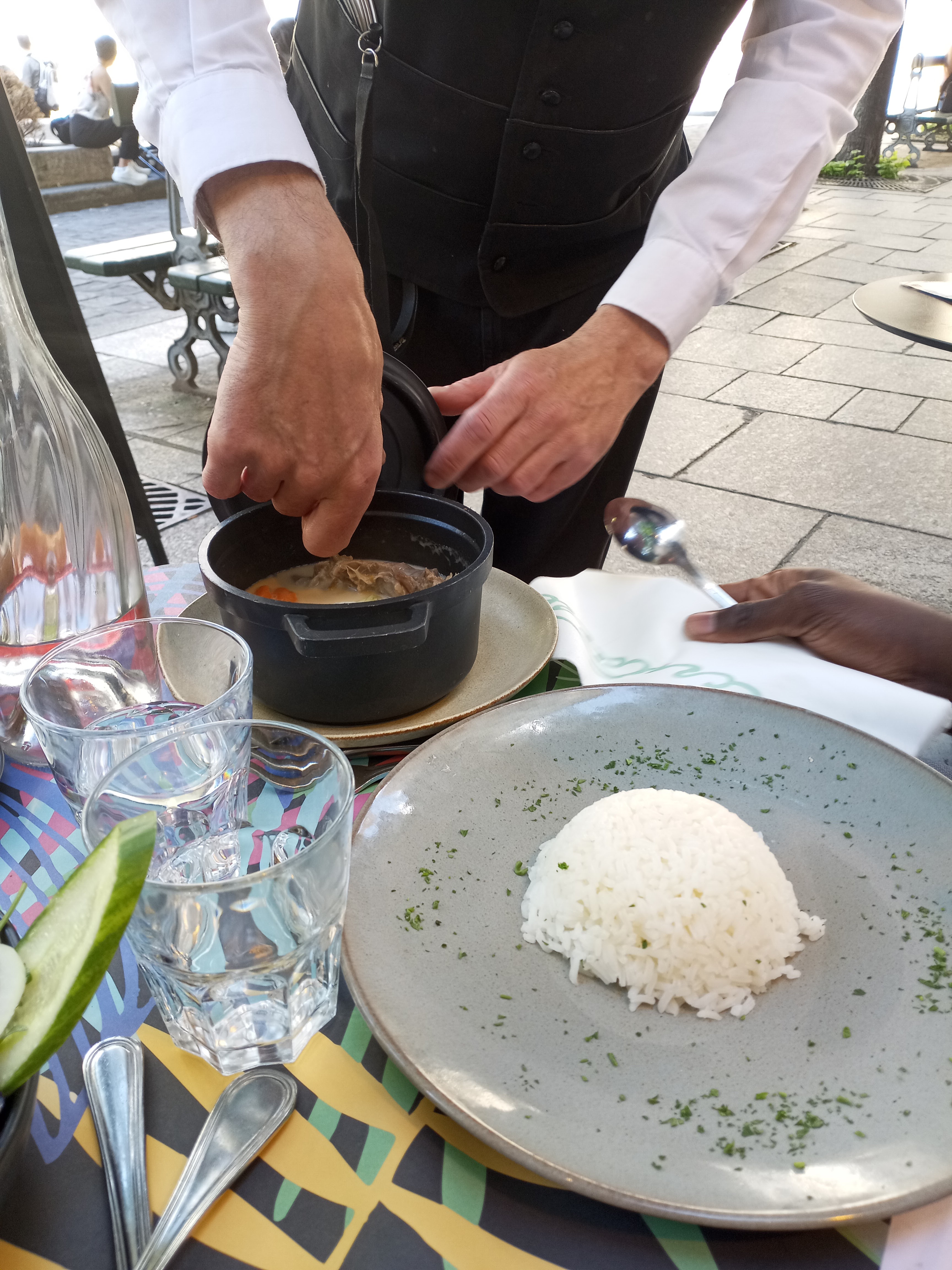 Serveur mal poli, les clients étaient gênés de son comportement, le cliché du serveur parisien ! Boissons hors de prix ! Fuyez…