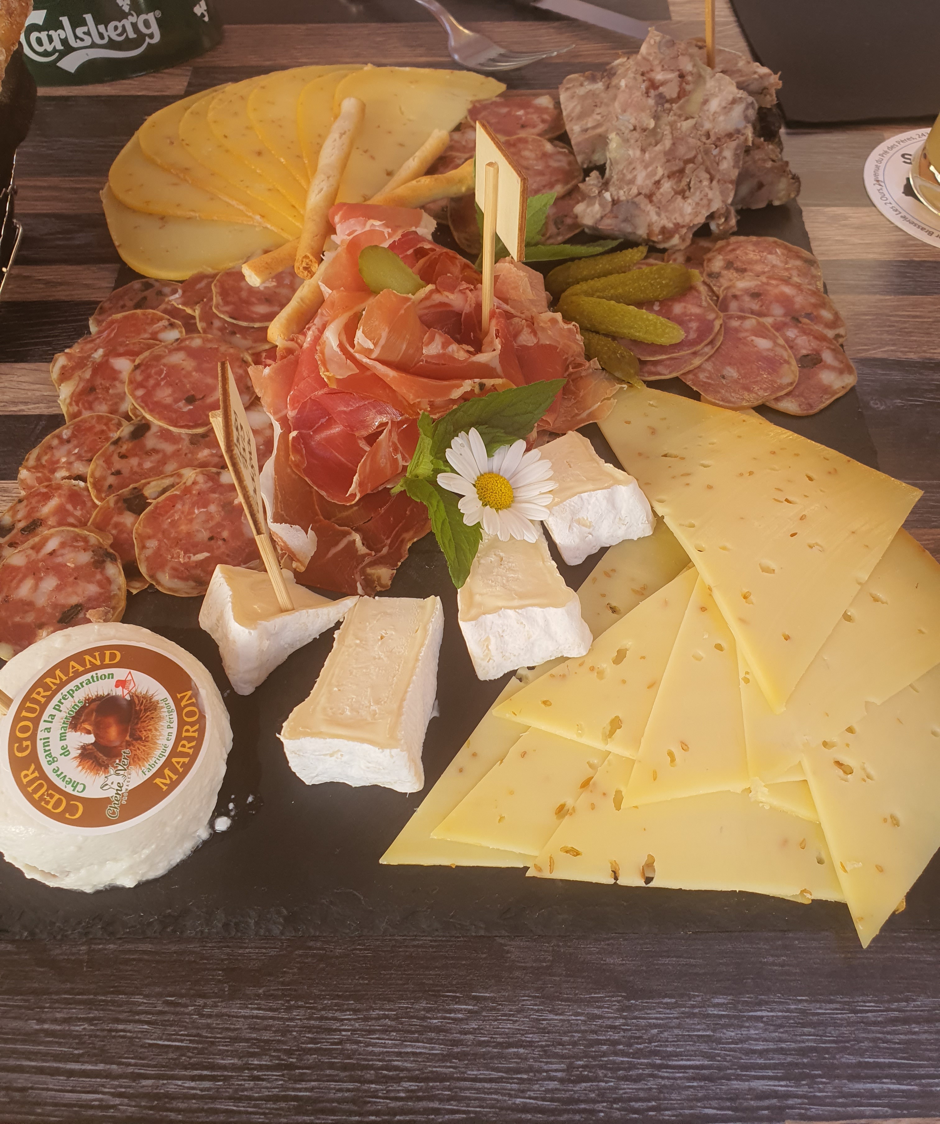 Planche de charcuterie et fromage au top. Produits de qualité et local. Très bon rapport qualité prix. A refaire
