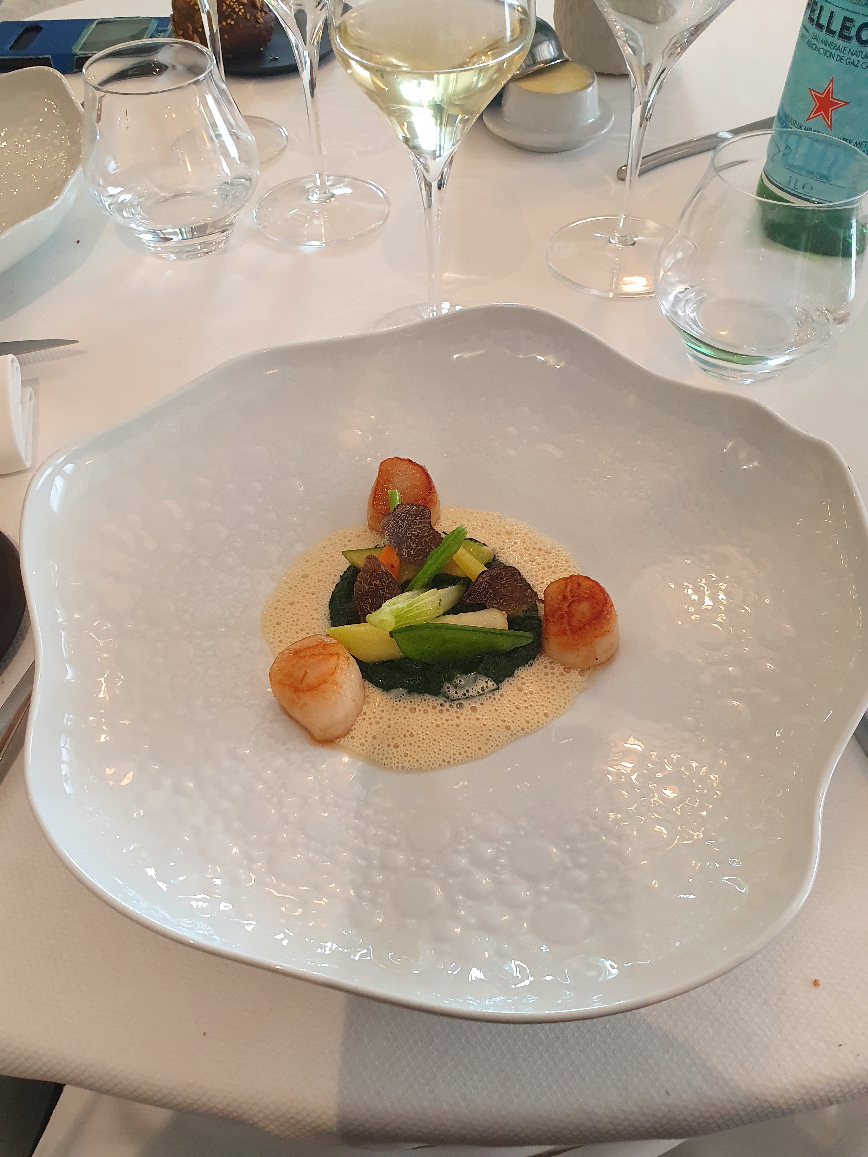 Presque 2 ans que nous n'étions pas venus à l'écume gourmande et force est de constater que la cuisine de Ghislain Varillon a franchie un nouveau cap ! Le travail autour du foie gras avec sa galette de sarrasin, la justesse de la cuisson du bar, tout cela mérite une première étoile !