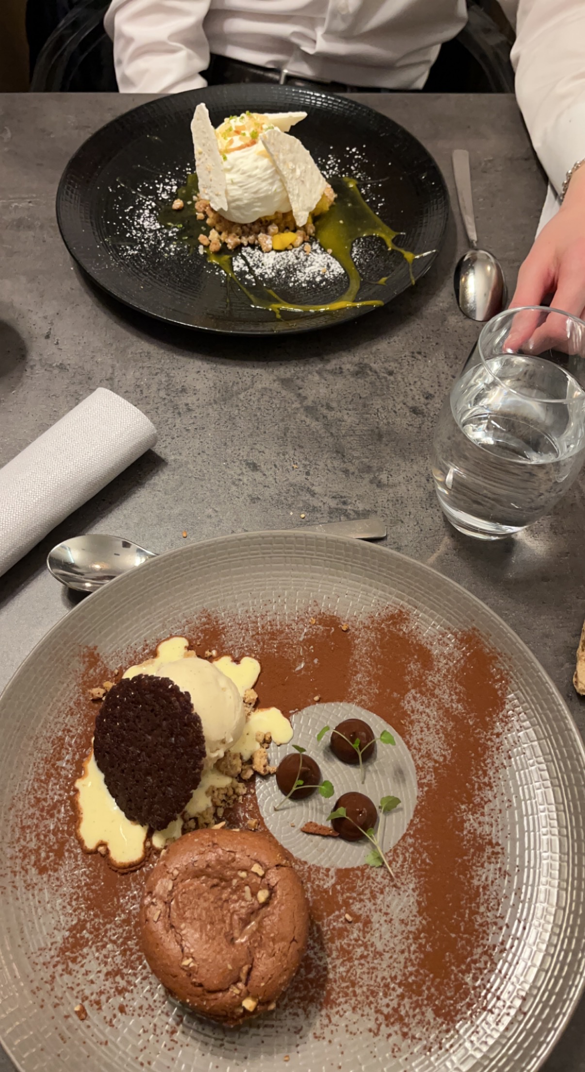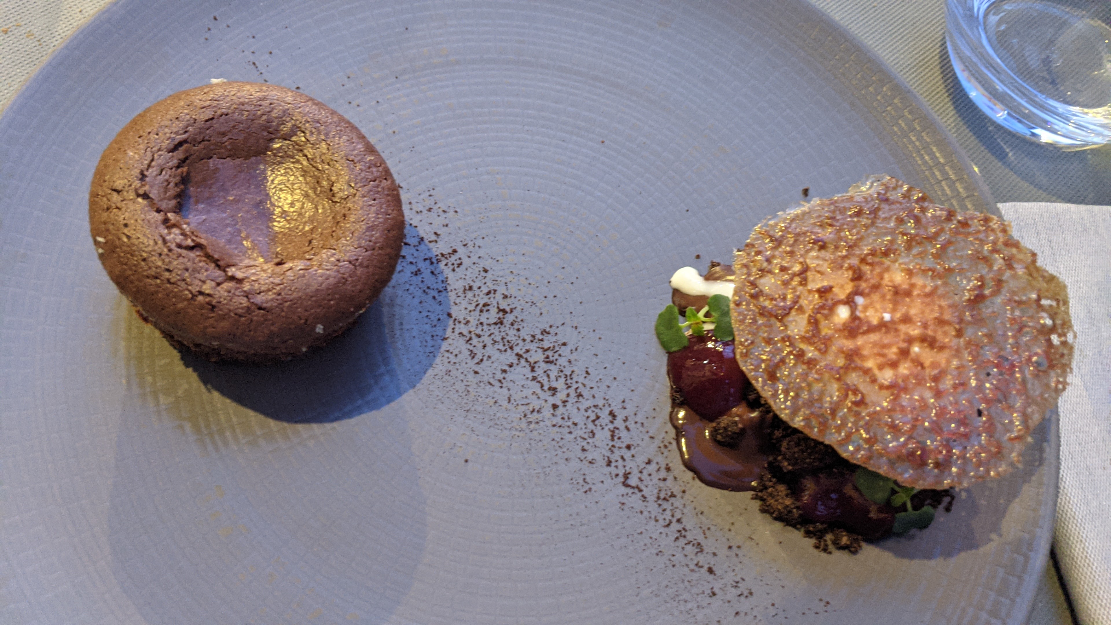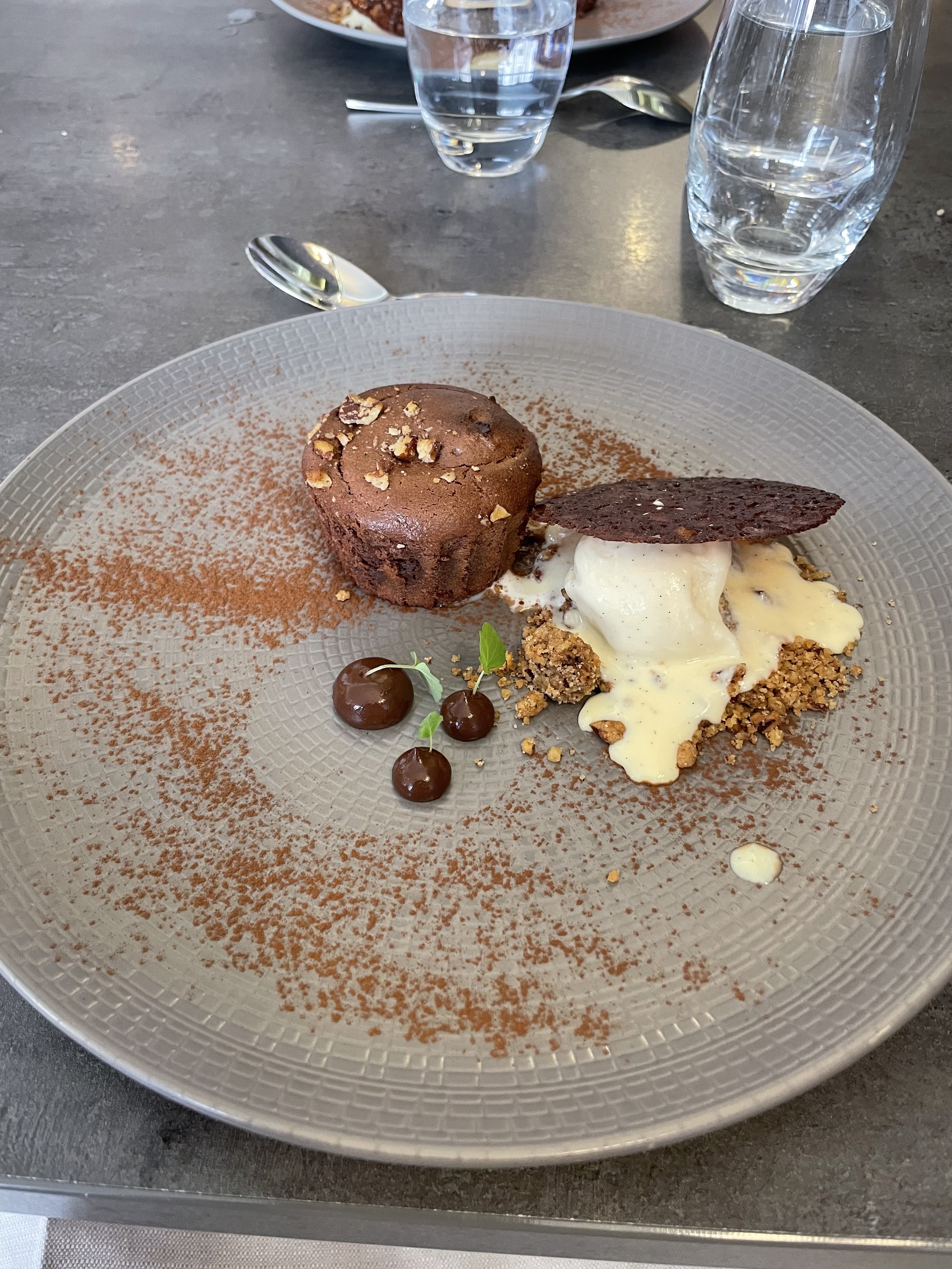 Décadent et tellement délicieux ! Les ris de veau étaient magnifiquement tendres et succulents, le bœuf Wellington absolument délicieux et le gâteau à la lave était gluant et incroyablement bon. Le serveur offrit gracieusement quelques verres de Pinot noir et de Bordeaux qui se mariaient parfaitement. Merci boucoup !!!