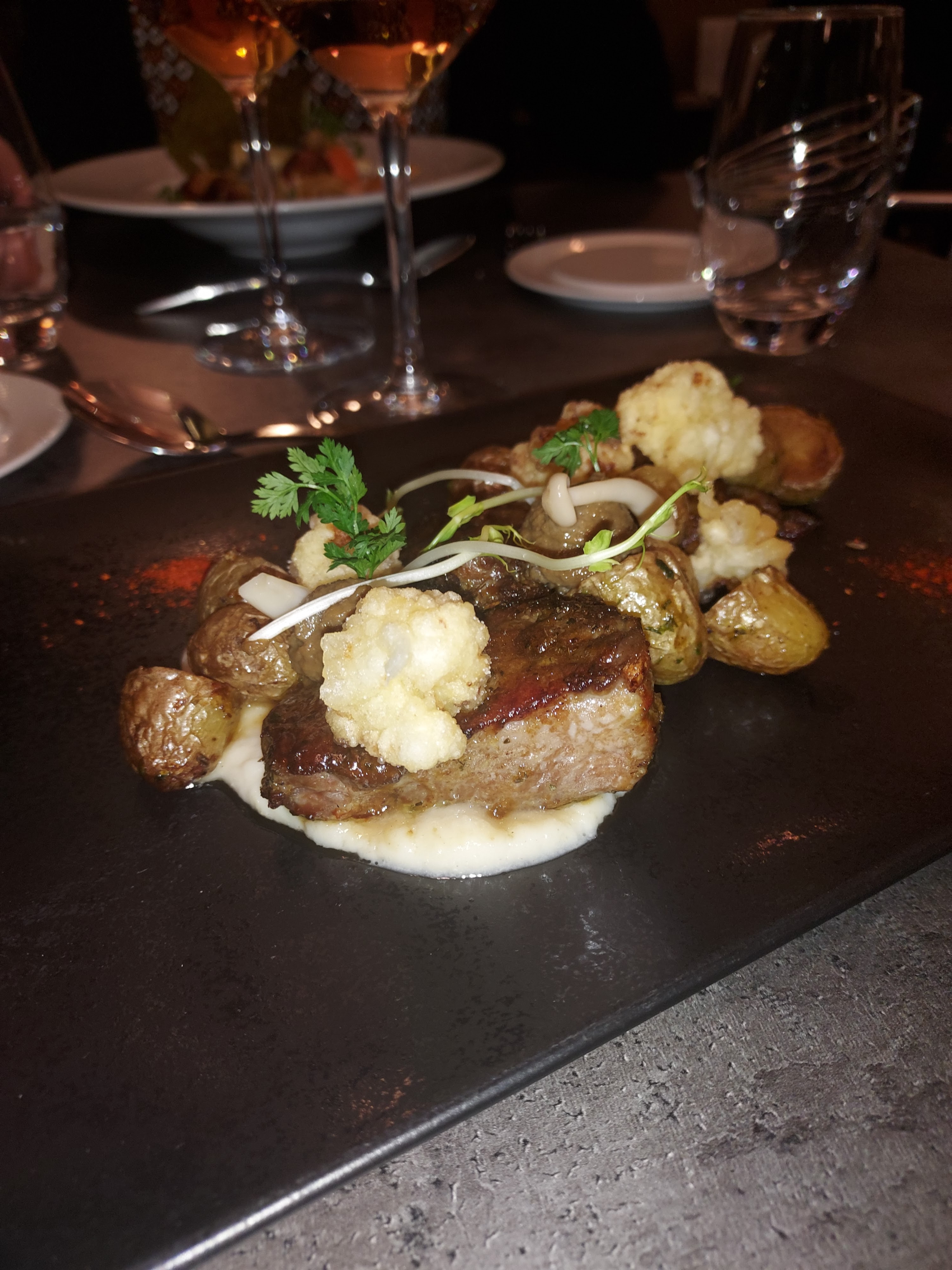 Excellent restaurant J'ai opté pour la onglet de boeuf angus, très bonne qualité et cuisson maîtrisée. Le menu est très abordable par rapport au niveau de cuisine proposé. Je recommande grandement.