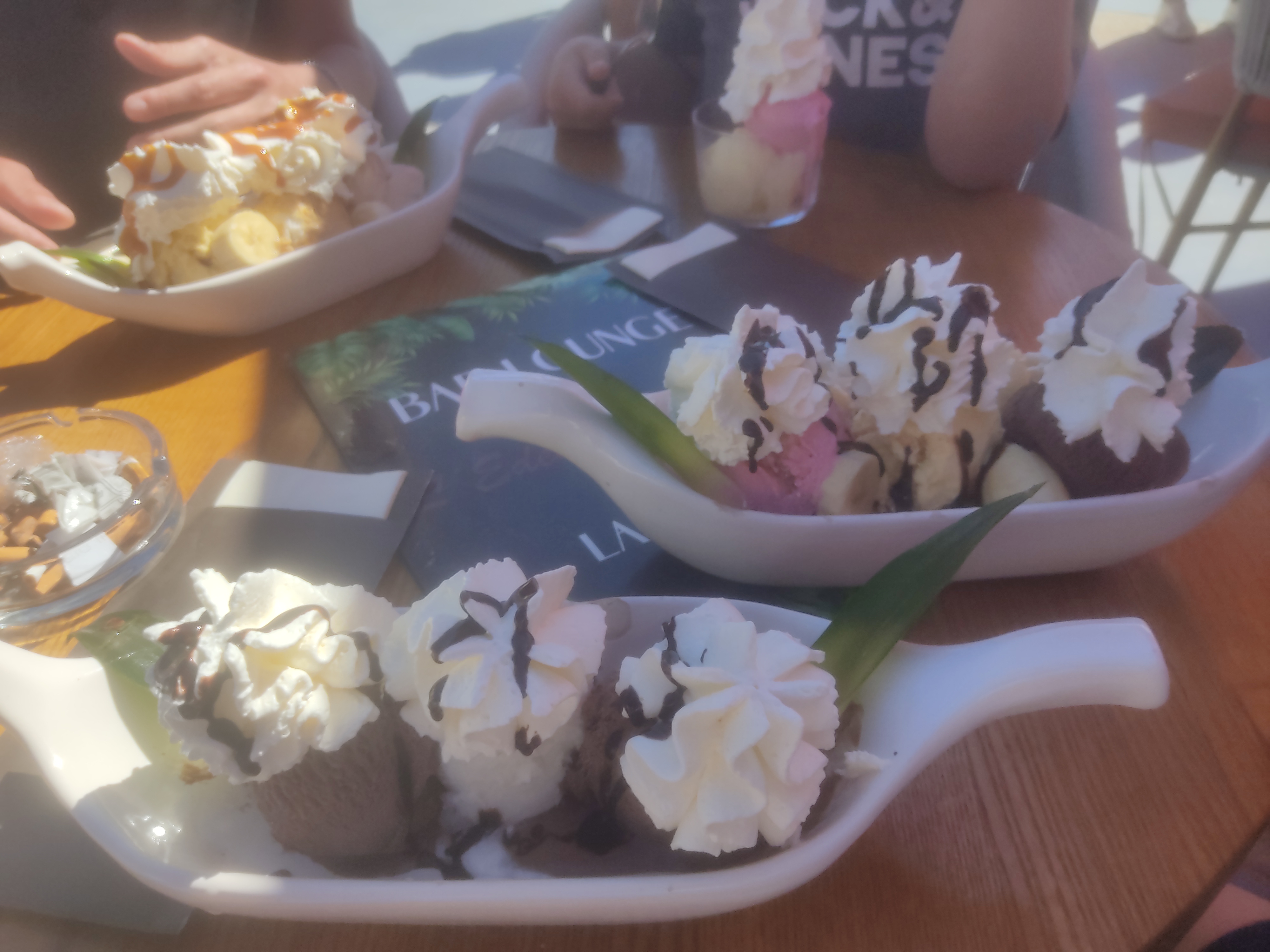 Arrivés à 19h avec mon conjoint et notre fils pour dîner au début le personnel était sympathique comme chaque restaurant attrape touristes mon fils a pris le menu enfant il a était servi en premier ce qui est bien ensuite c’était à nous on a pris des moules frites à volonté et des cocktails le cocktail pour ma part était sans goût car trop de glaçon je ne sentais rien et concernant les moules frites c’était mangeable sans plus peut être parce que ce n’est pas la saison et aussi y avait trop d’attente surtout pour la glace de mon fils et quand la glace est enfin arrivé aucune excuse