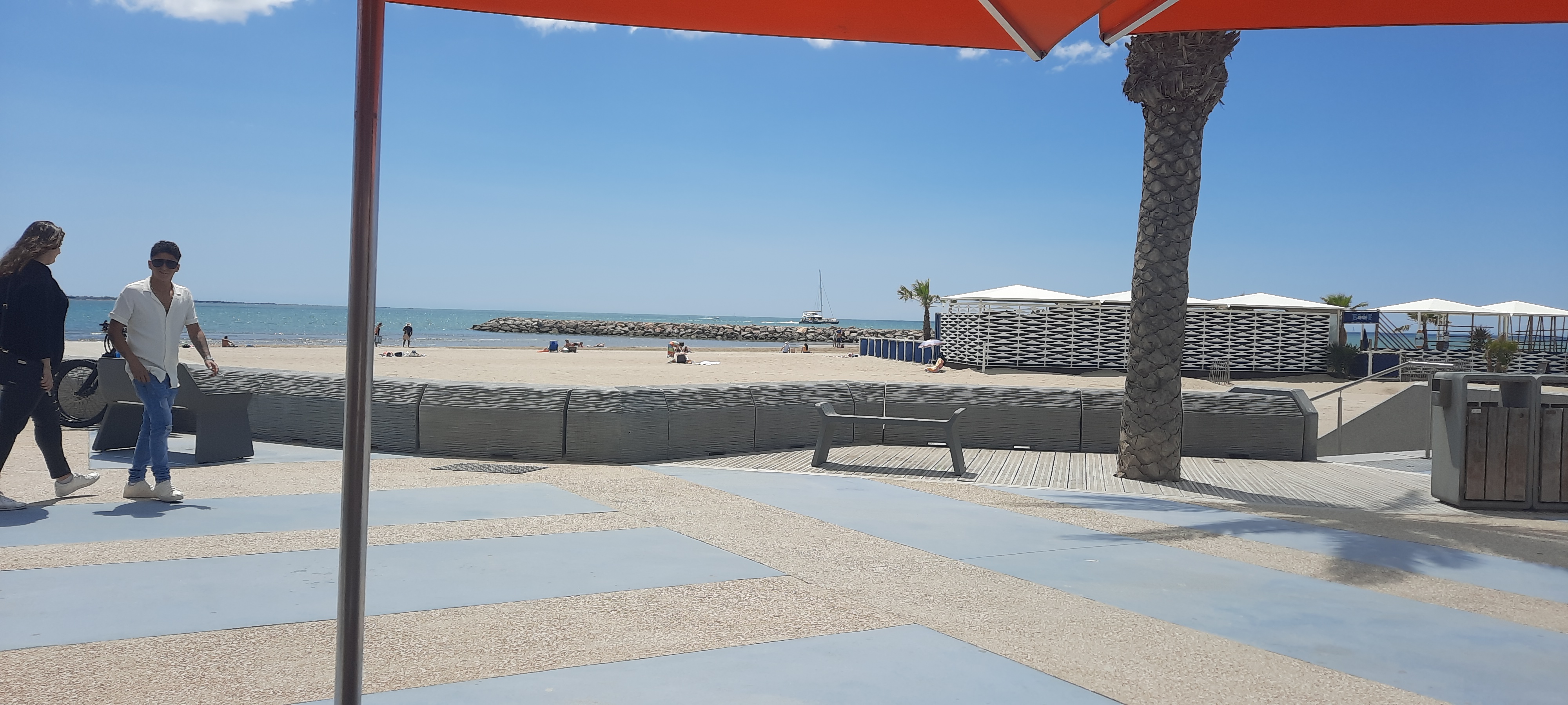 Bar face à la mer , confortablement assis sur des petites banquettes .Personnels sympathiques Mon lieu préféré pour un petit apéritif pendant mes vacances à la Grande Motte .