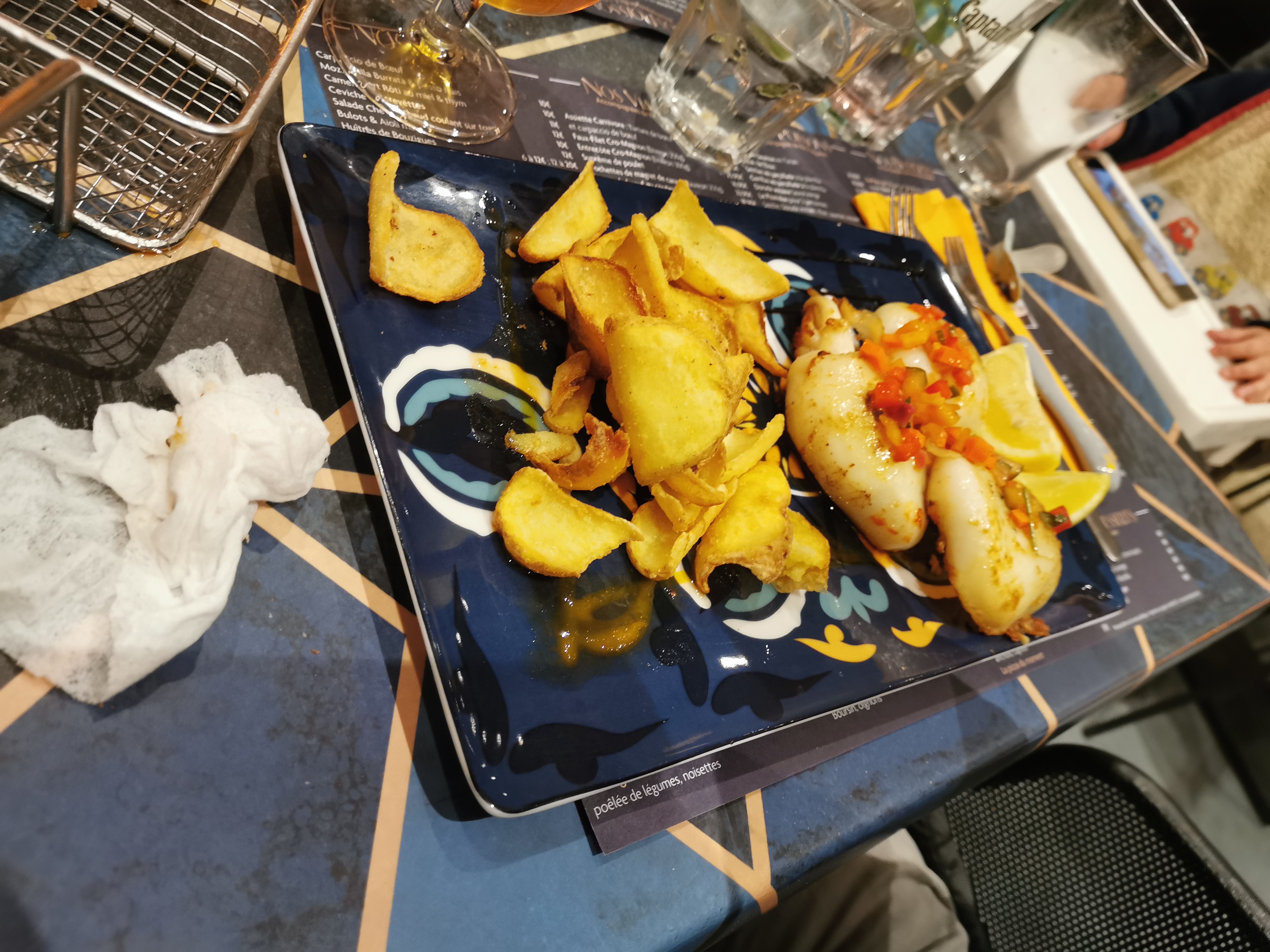 Beaucoup d'avis récent font références aux moules ... Nous n'en avons pas pris, ... En revanche 2 salades très copieuses et 2 menu enfants. Personne n'a été déçues, les gouts et les saveurs étaient bien présentes, un peu d'attentes pour la prise de commandes mais rien de rédhibitoires, on était en vacances :)