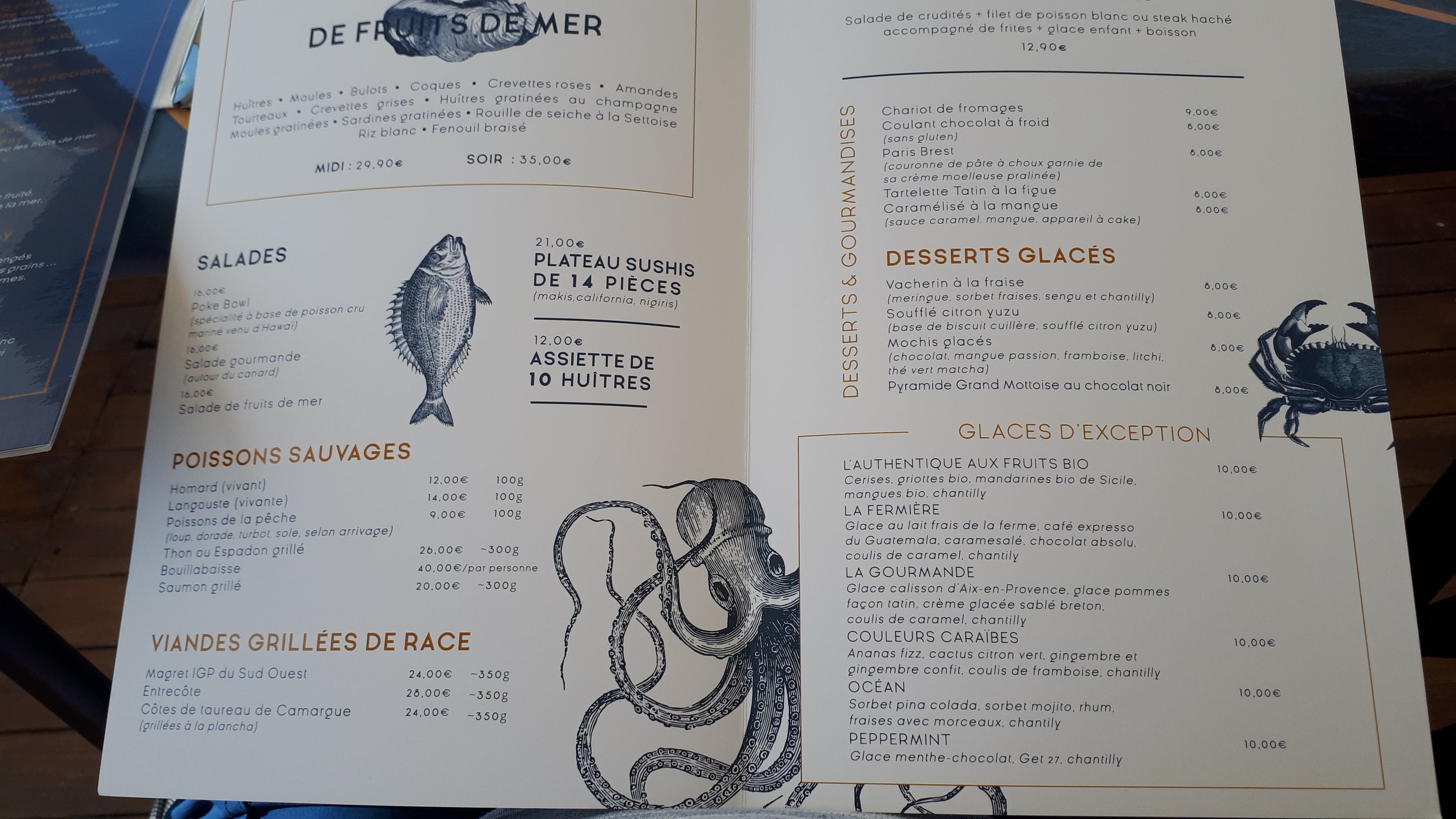 Bon rapport qualité prix en face de la mer . Seulement 14,90€ le menu avec entrée/plat/dessert. Super bien servi je recommande !