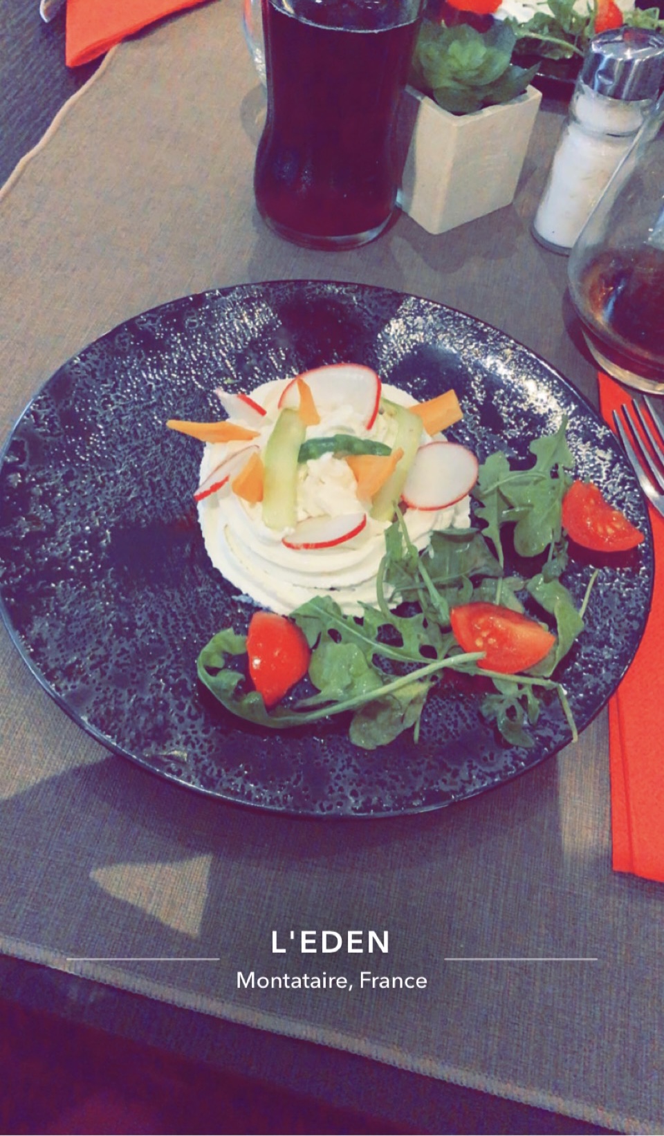 L’endroit est sympathique et la terrasse agréable. Derrière des efforts de dressage, ça reste la cuisine à maman qui fait ses courses au supermarché discount du coin. Quant au service, qu’on pourrait qualifier d’énergique au début, il bascule vite dans le familier par la suite. A se demander si derrière ce nom prometteur d’Eden, se cache pas un resto routier.